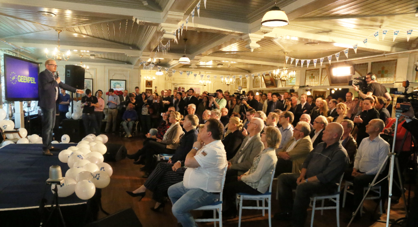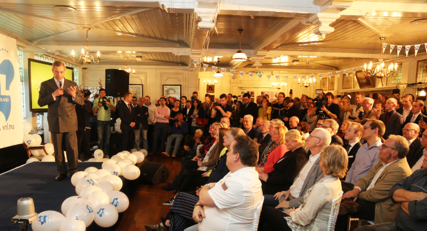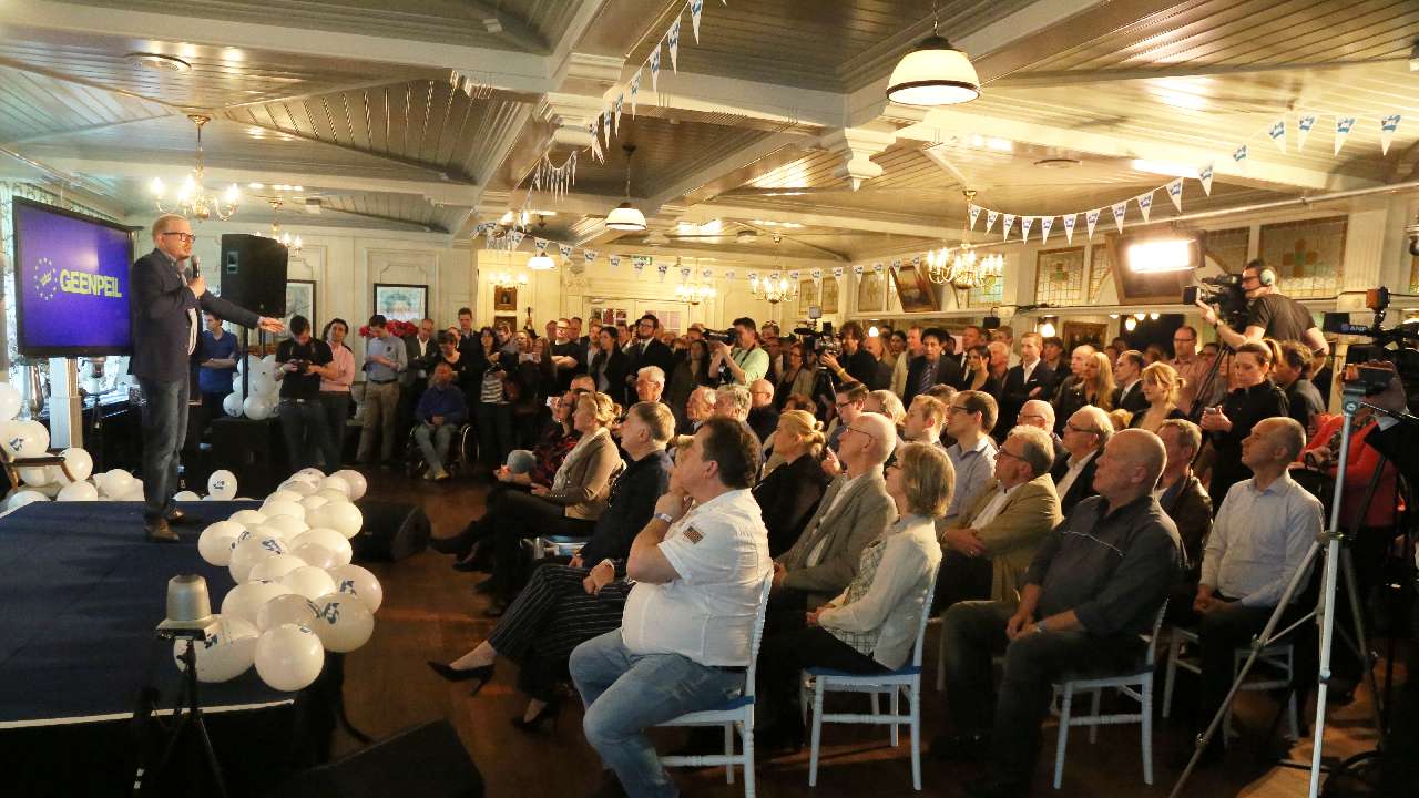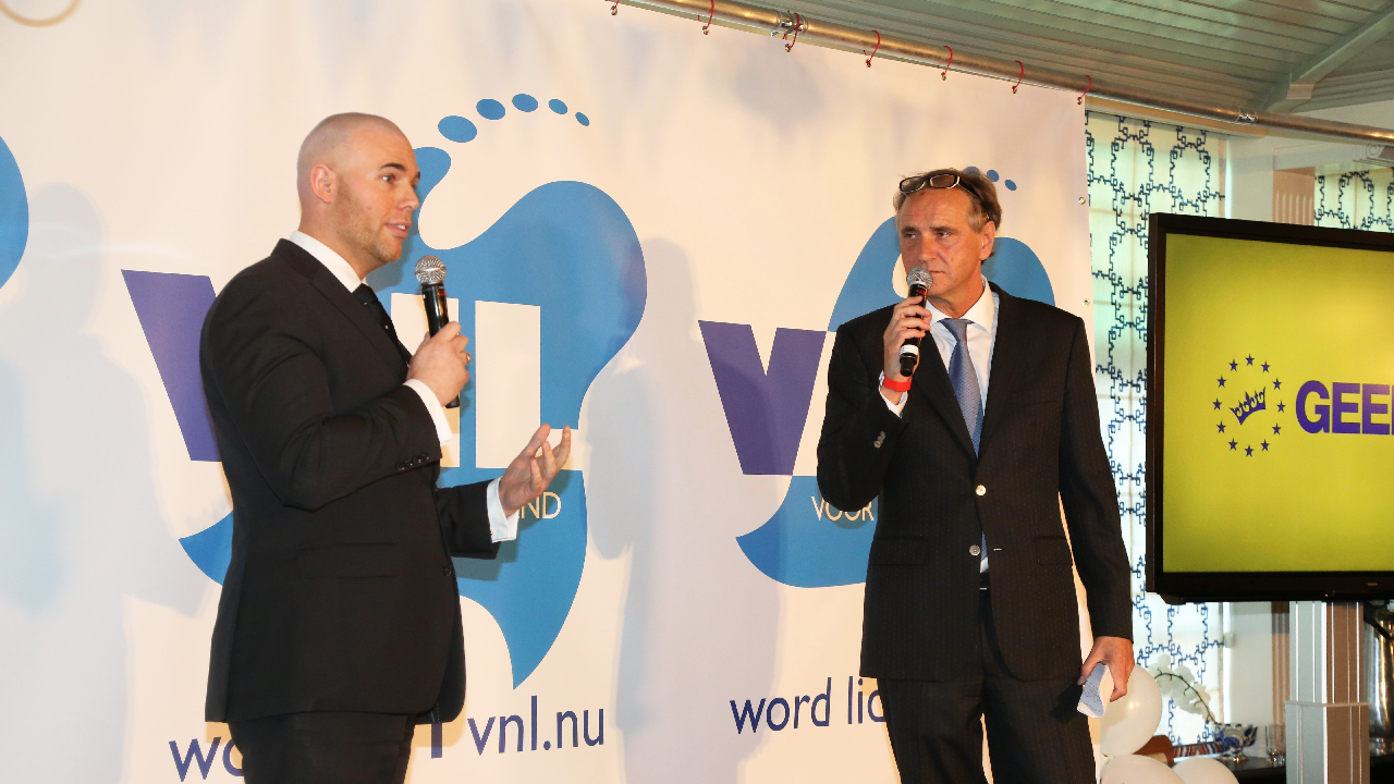 De hoofdgast was de Europarlementariër Nigel Farrage. Met de UK Independency Party zit deze Engelsman in het Europees Parlement. Hij wil dat Engeland uit de E.U. stapt. De spraakmakende politicus werd luid bejubeld door de aanwezigen van GEENPEIL en VNL.