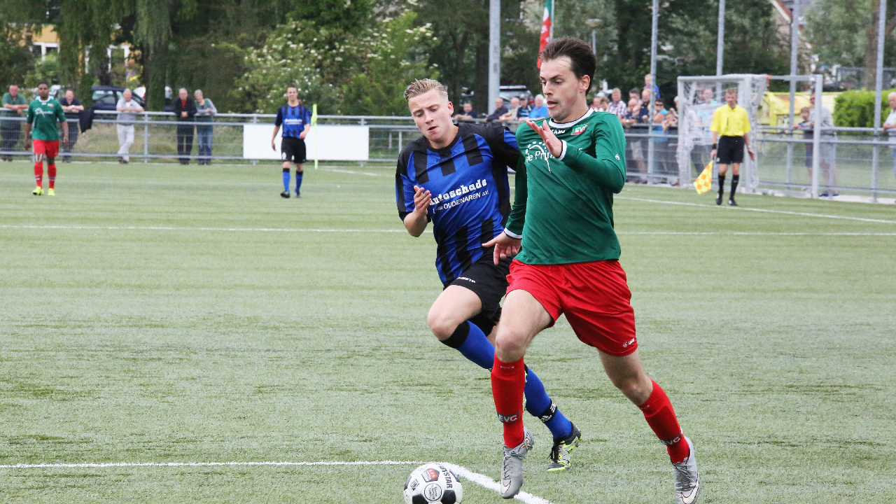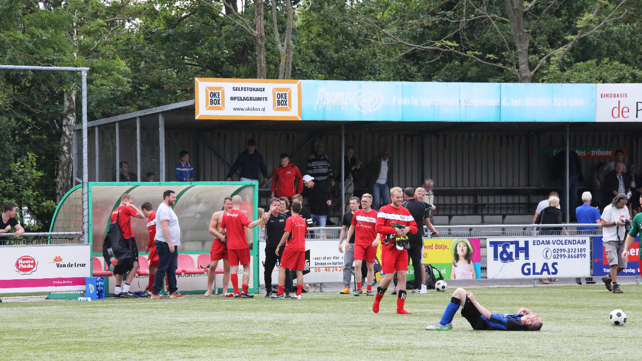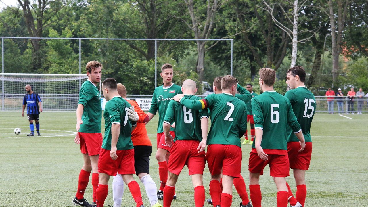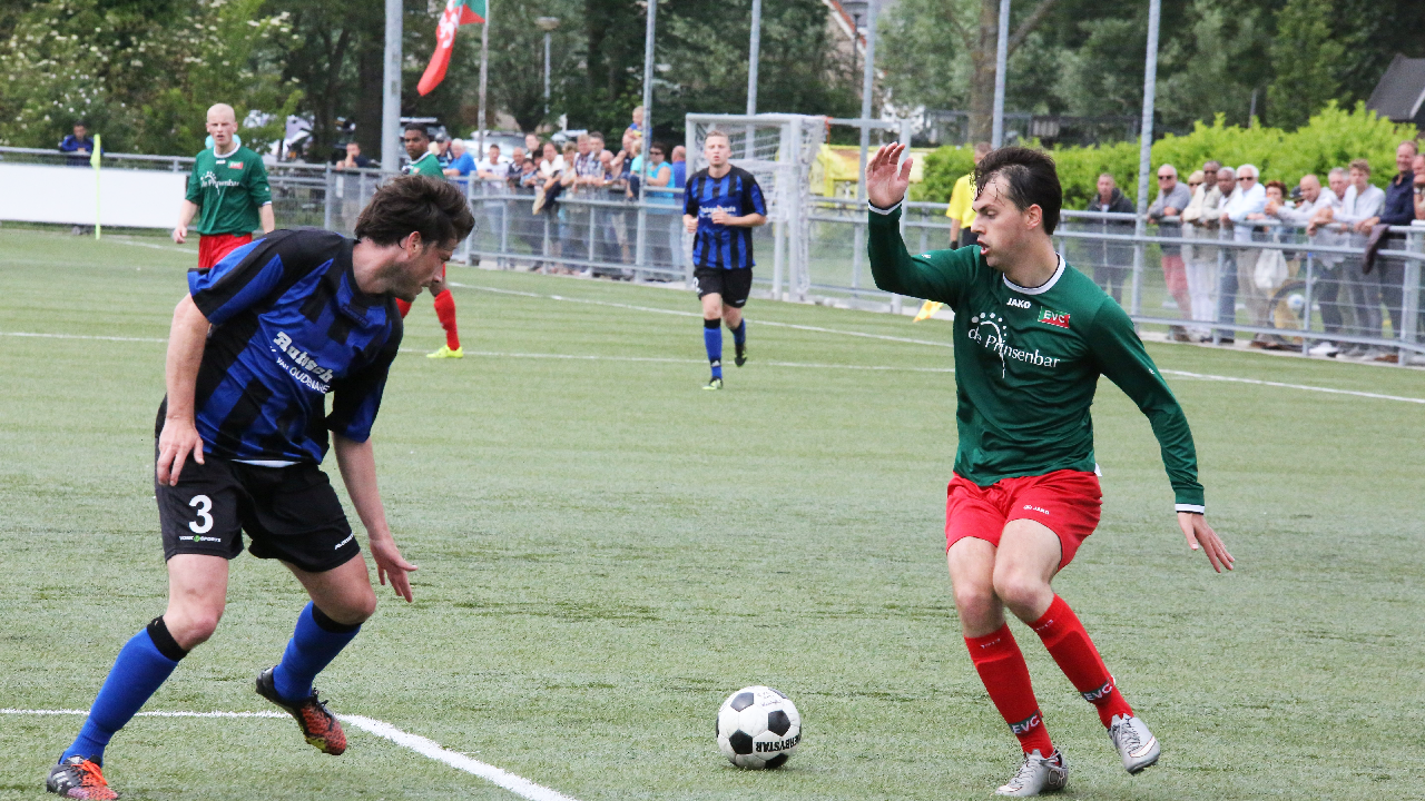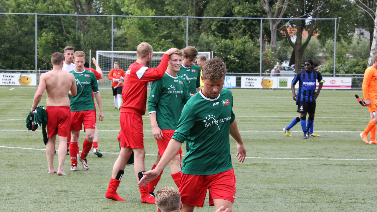 In de 80-ste minuut schoot Jeffrey Veerman de bevrijdende gelijkmaker in de touwen voor EVC. Hoewel Hellas Sport nog volop druk zette, bleef het 1-1. Het is nu eindelijk vakantie voor EVC na een spannende reeks wedstrijden. In de kantine was er na afloop groot feest.