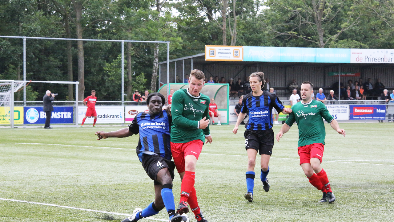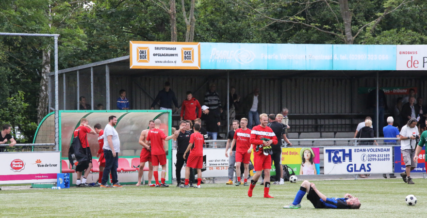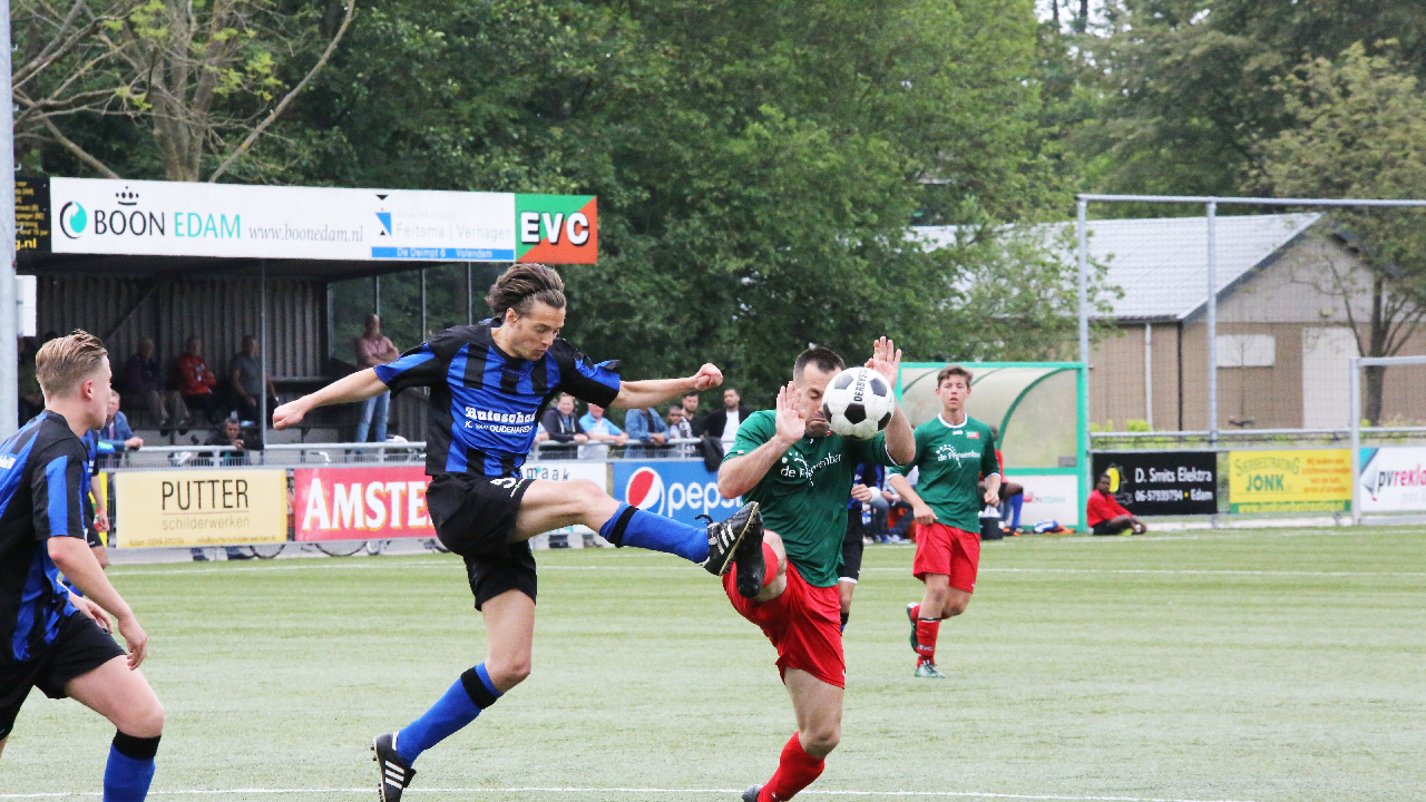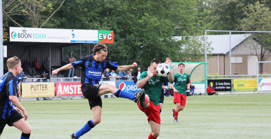 Zaterdagmiddag speelde EVC thuis tegen Hellas Sport. De uitwedstrijd was door de Edammers al met 0-2 gewonnen. Aan een gelijkspel of 0-1 nederlaag had EVC voldoende om lijfsbehoud te be-werkstelligen om in de Tweede Klasse te blijven.