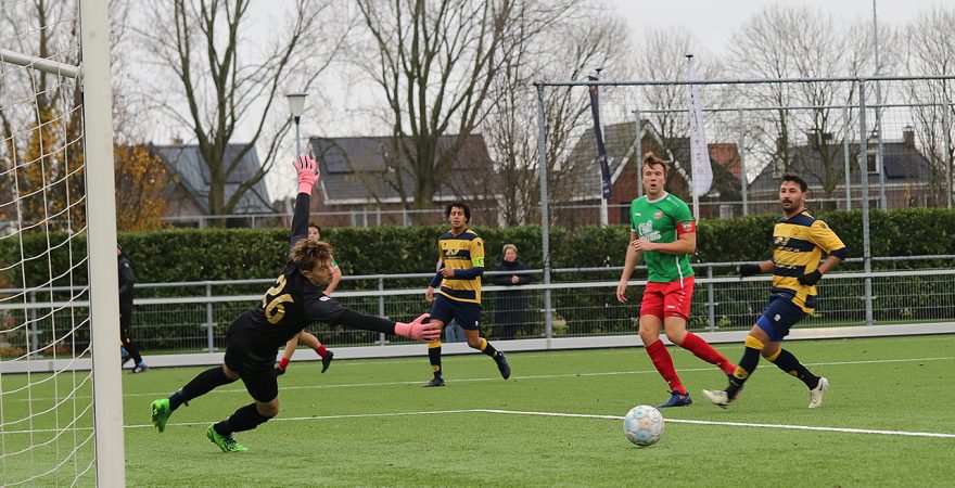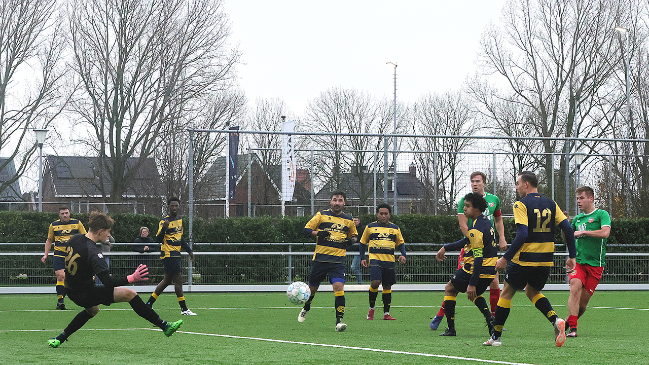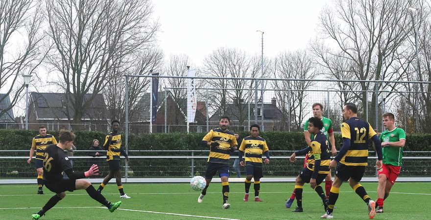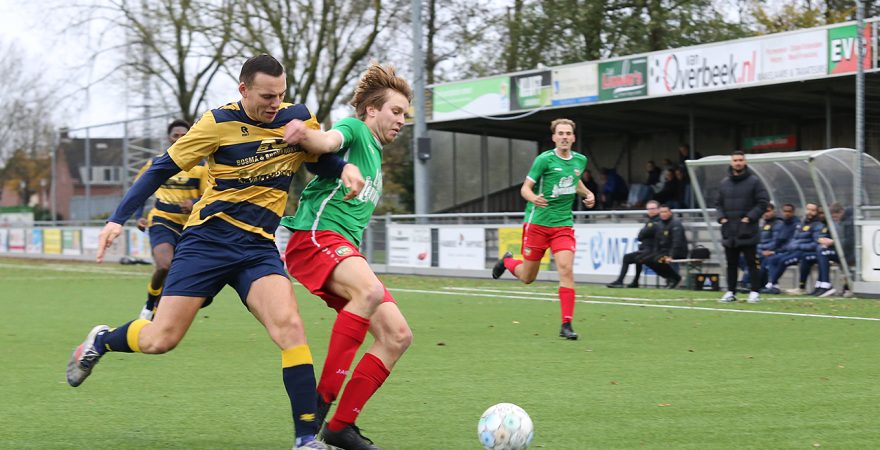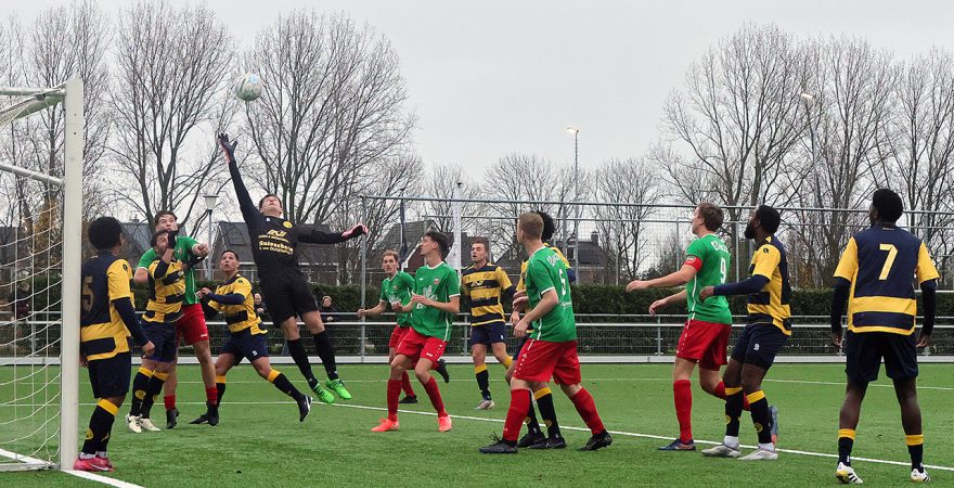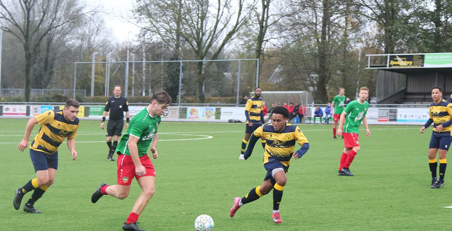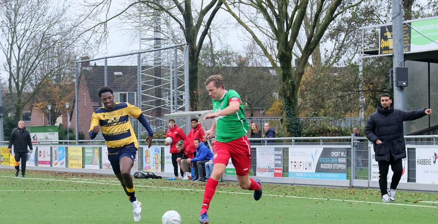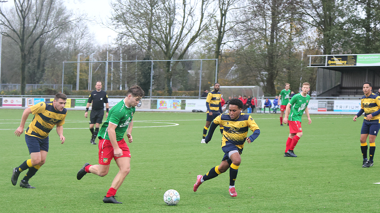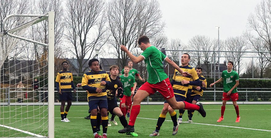 Na rust stuitten de EVC-aanvallers herhaaldelijk op de uitblinkende doelman van ZVC’22, die tevens de aanval opzette waaruit de 1-3 ontstond. De wedstrijd leek beslist, maar Mark Uijlenhoed bracht de spanning terug met een rake kopbal op aangeven van Vince Mens.