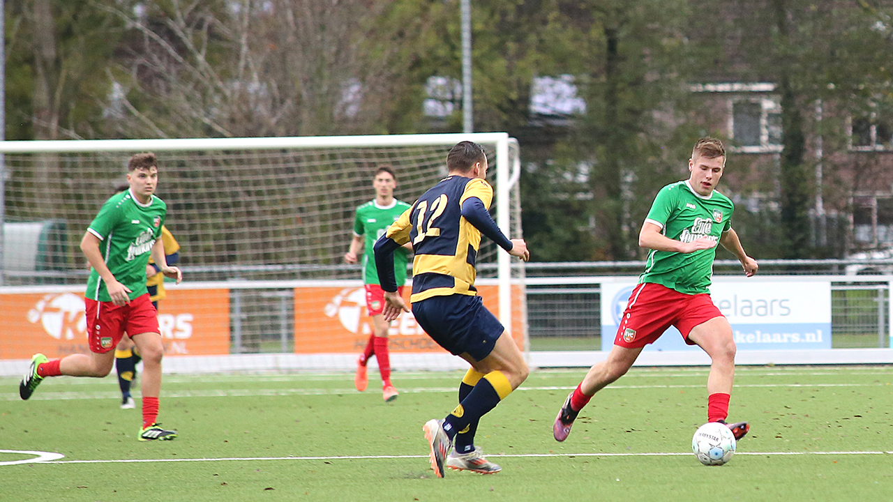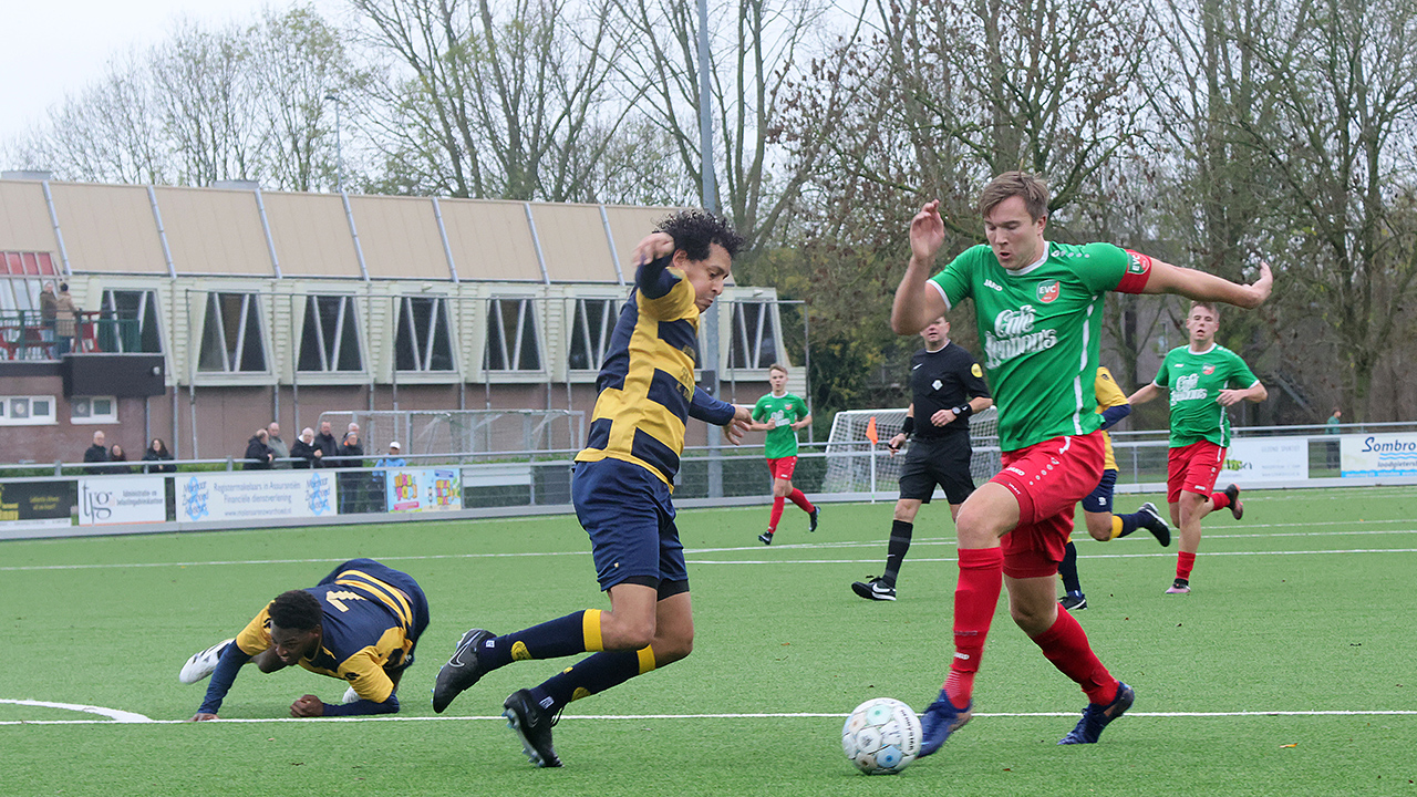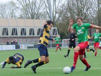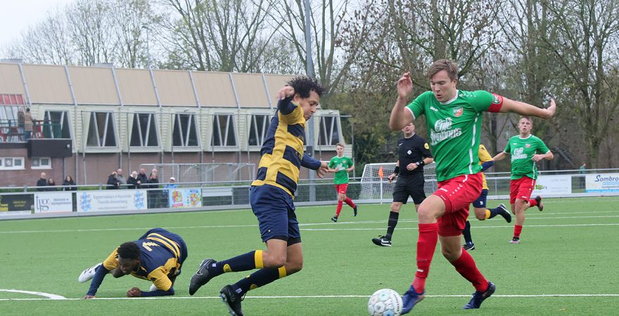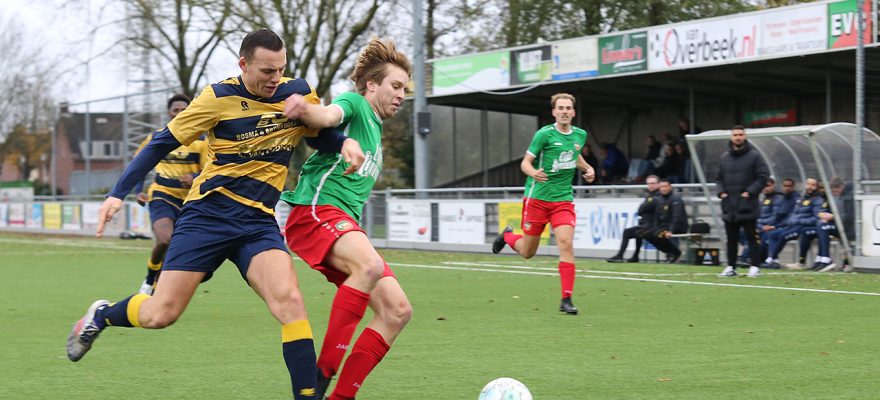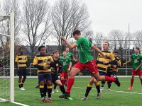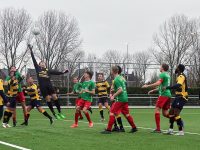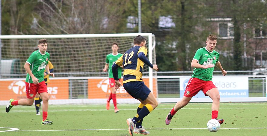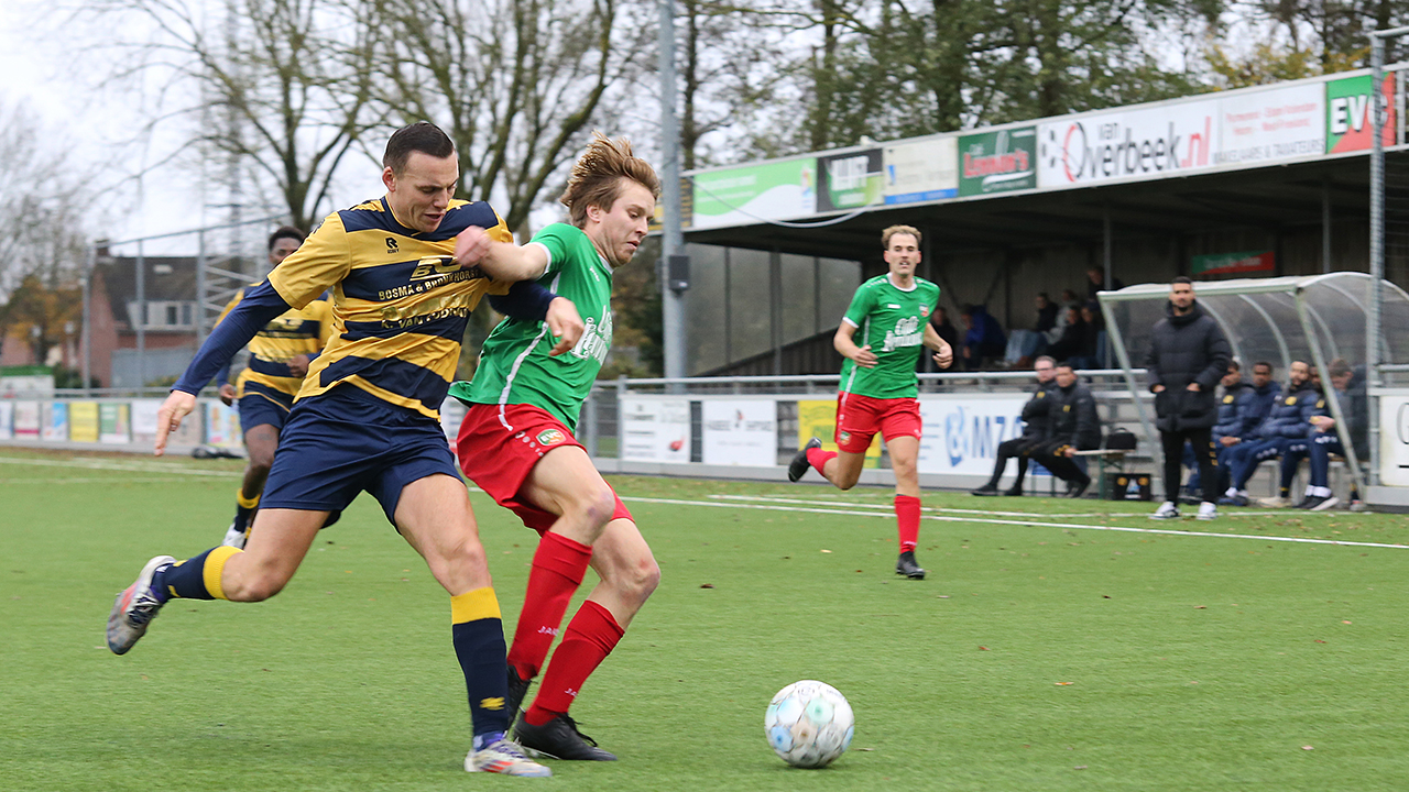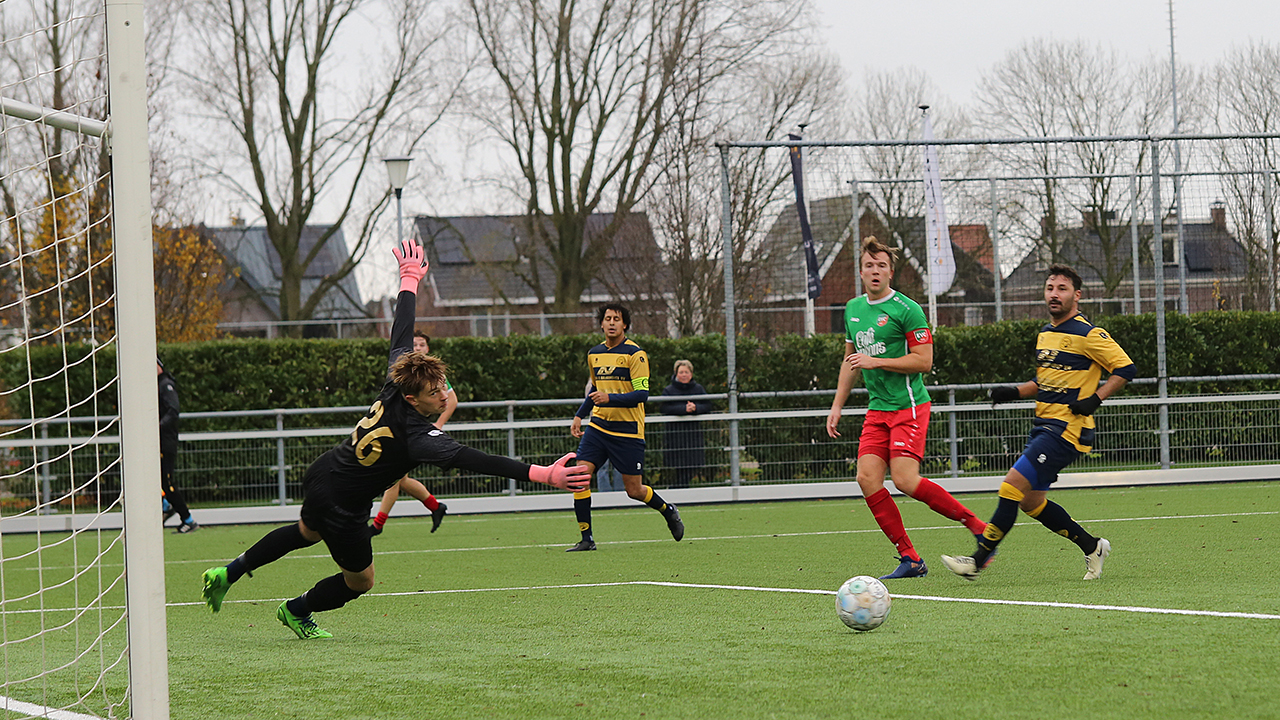 Na rust stuitten de EVC-aanvallers herhaaldelijk op de uitblinkende doelman van ZVC’22, die tevens de aanval opzette waaruit de 1-3 ontstond. De wedstrijd leek beslist, maar Mark Uijlenhoed bracht de spanning terug met een rake kopbal op aangeven van Vince Mens.