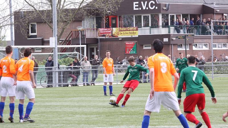 Door een vrije trap kwam EVC op achterstand maar topscorer Jeffrey Veerman brengt de stand weer gelijk. Na rust is het opnieuw Jeffrey die EVC op voorsprong brengt.