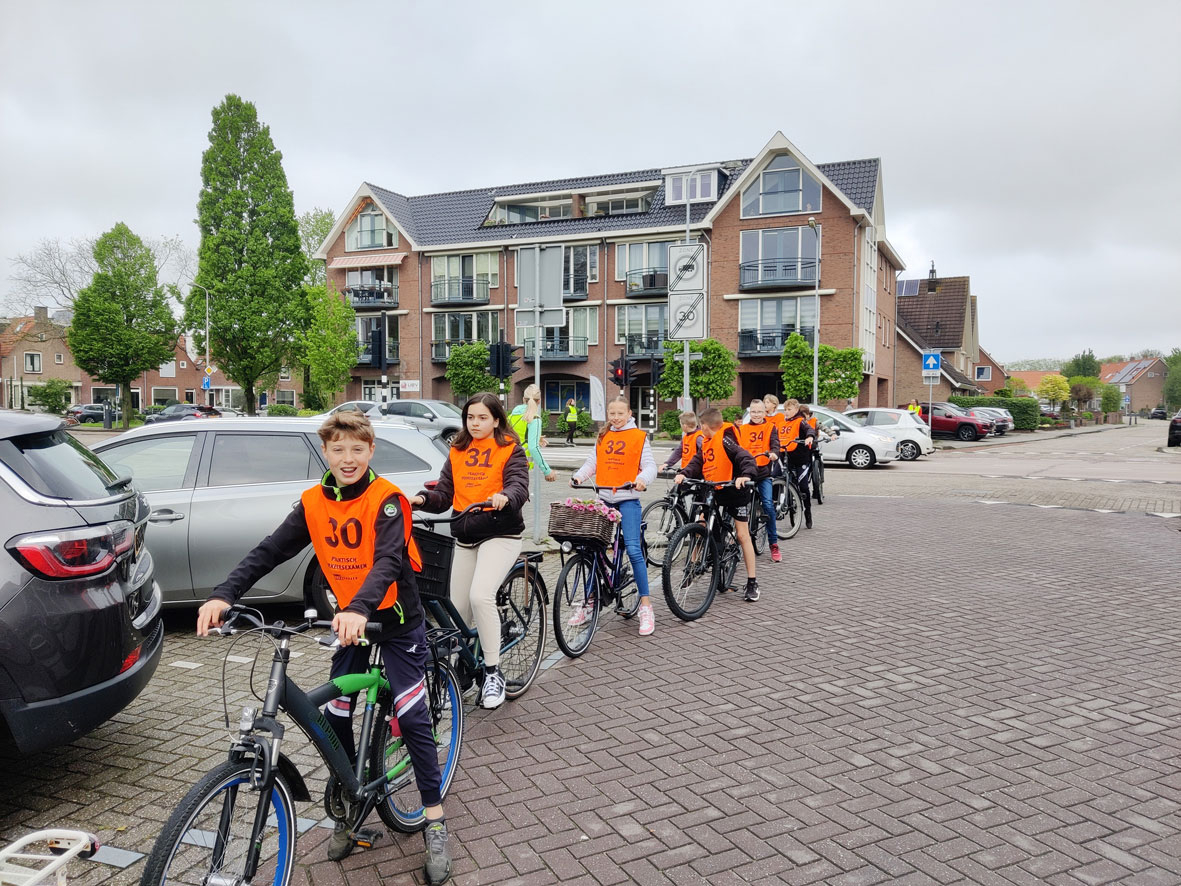 Vrijdag namen ruim 250 leerlingen van de Volendammer basisscholen deel aan het praktijk fietsexamen. Een spannende dag, maar ook een bijzondere leuke dag. De afgelopen tijd is in de klas veel aandacht besteed aan welke gevaren kinderen in het verkeer tegenkomen. Verkeersregels, andere weggebruikers, lossende vrachtwagens, maar ook hun eigen plek in het verkeer. Nu mochten ze laten zien dat ze het onder controle hebben. Het startschot werd dit jaar gegeven door Robert Mühren. Daarna reden de kinderen een mooie, nieuwe route door Volendam. Tijdens de route kwamen de kinderen een veertiental controlepunten tegen. Daar controleerden de hulpouders of ze de vaardigheden goed beheersten.
