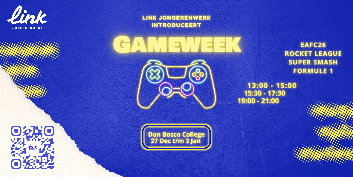 In de kerstvakantie hoeven jongeren zich opnieuw niet te vervelen, want Gameweek keert terug naar het Don Bosco College. Link Jongerenwerk verandert de aula ook dit jaar weer in een grote game- en arcadehal voor jongeren van 11 tot en met 23 jaar. De vorige editie trok ruim zevenhonderd deelnemers, en daarom staat er opnieuw een volle week op de agenda. Van zaterdag 27 december 2025 tot en met zaterdag 3 januari 2026 zijn er dagelijks activiteiten, toernooien en speelmogelijkheden.