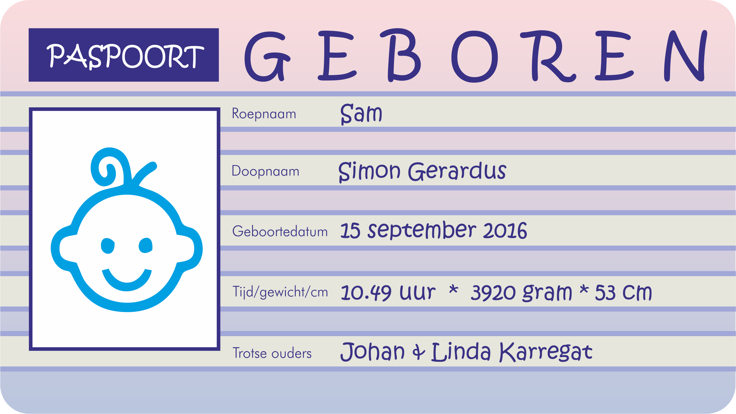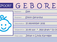 René Schilder Edam-Volendam | 15-9-2016 | 30 sec. leestijd Geboren: Sam Karregat 15 september 201610.49 uur3920 gram53 cm Trotse ouders zijn: Johan & Linda Karregat Fotogalerij Tip de redactie! Gemakkelijk via mail! Deel dit artikel
