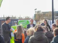 De wethouders Tuijp (,,hopelijk volgen er meer voedselbosjes”) en Dirkshorn plantten daarna ook nog iets en openden het Voedselbosje officieel. Leerlingen zetten ondertussen – met wormen – de eerste bewoners uit.