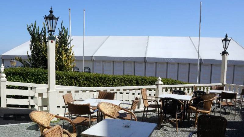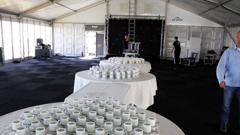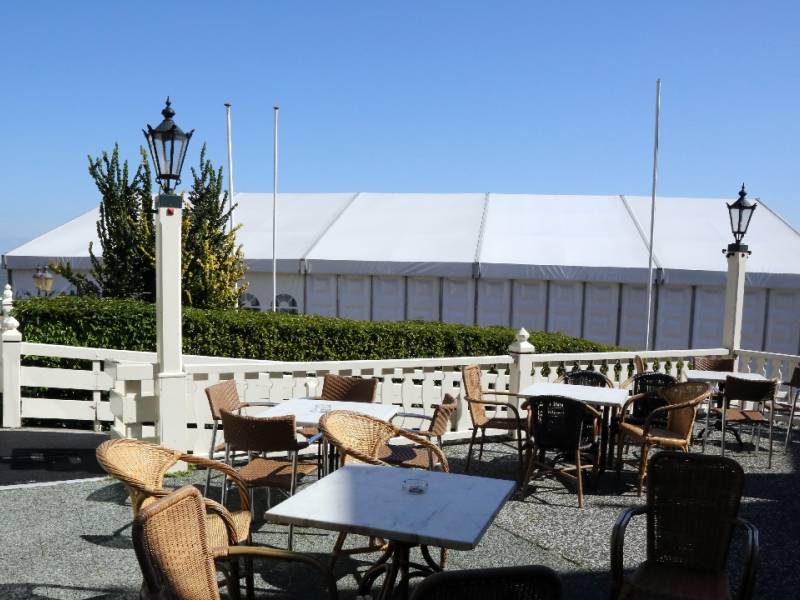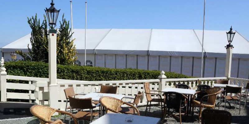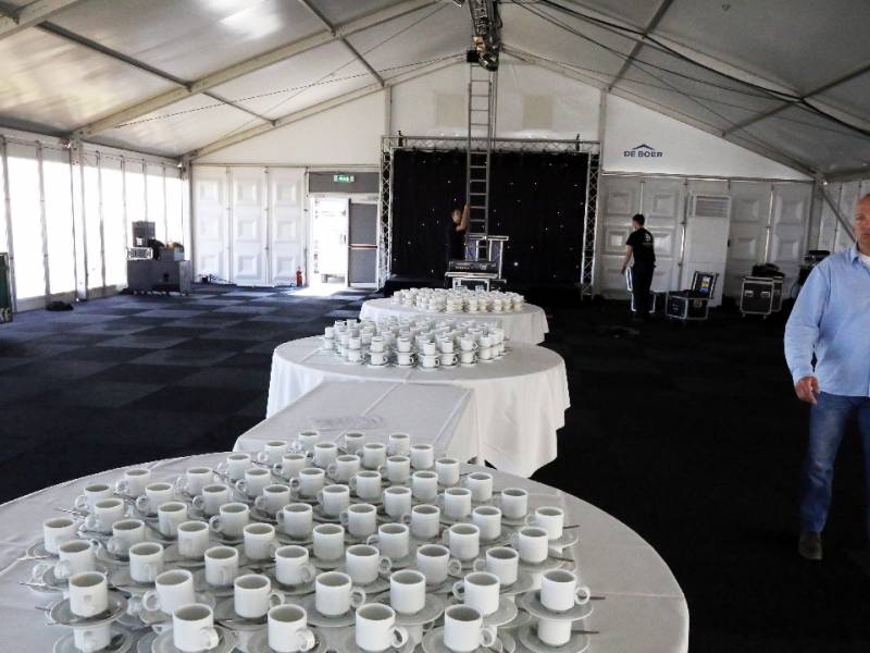 Het was dinsdag toch wel een vreemd gezicht dat er ná de kermis een grote partytent opgebouwd werd op het parkeerterrein achter Hotel Spaander.