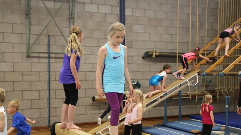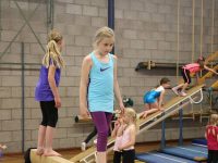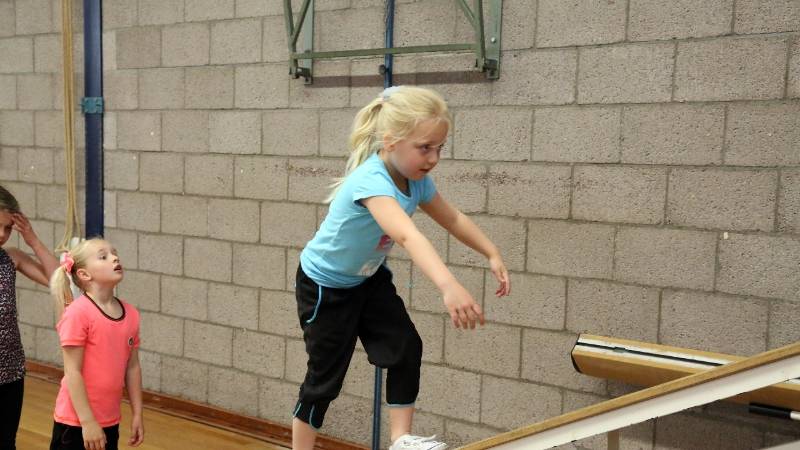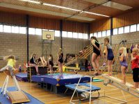 Een circuit met turn- en gymonderdelen was uitgezet in de zaal. Hier konden de ruim 100 jongste turnsters zich sportief vermaken. Deze gymstuif in de meivakantie duurde van 15.00 tot 16.30 uur, dus anderhalf uur vermaak.