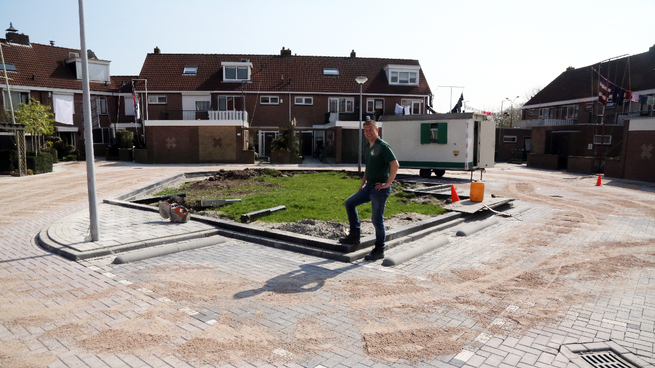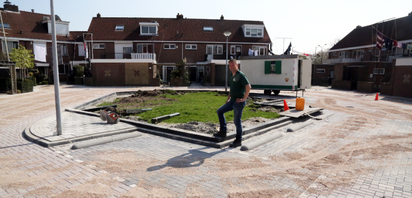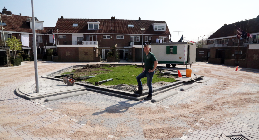 Het plein ziet er weer pico bello uit. Alleen de stoep in de Willem Runderkampstraat moest nog betegeld worden en dan is de klus klaar.