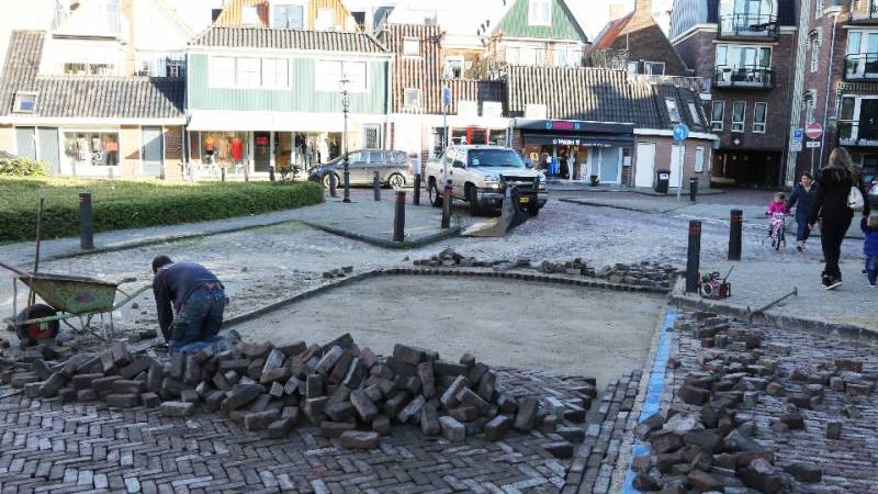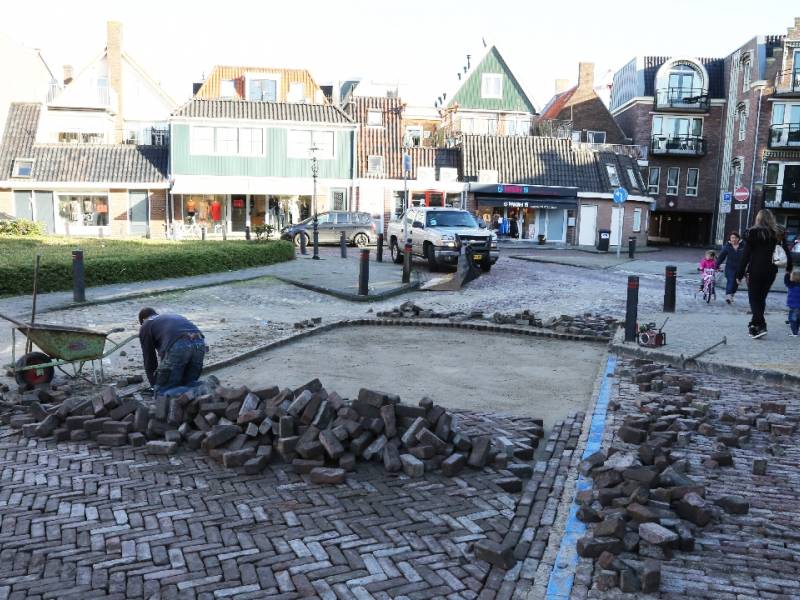 Hier wordt elk jaar op 4 mei de Dodenherdenking in Volendam gehouden. Dus ruim voor die tijd is het opknappen van het straatwerk gereed gekomen.
