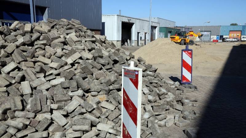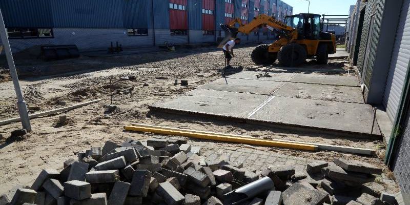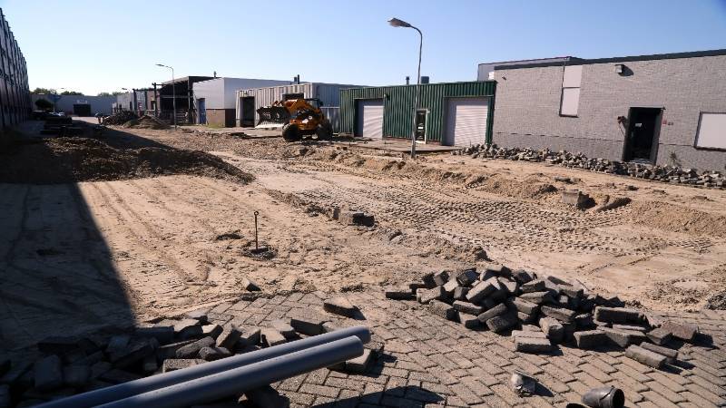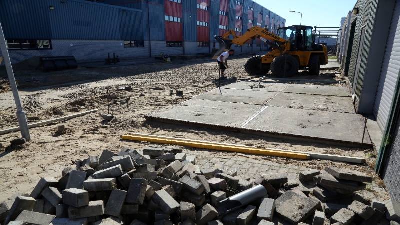 Ook worden de stelconplaten die voor de bedrijfspanden liggen gelijk meegenomen met het herbestraten van de Röntgenweg. Het is een omvangrijke klus en de verwachting is dat medio augustus het herbestraten hier gereed zal komen.