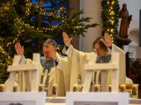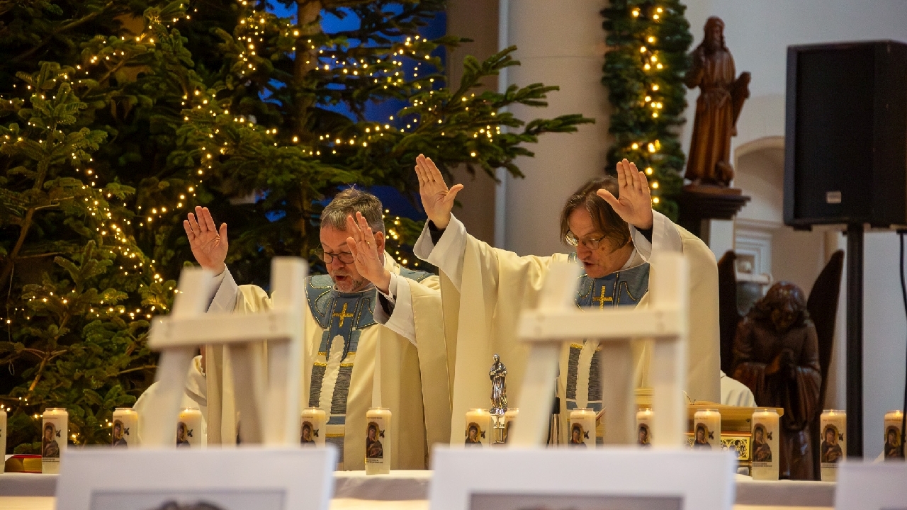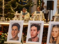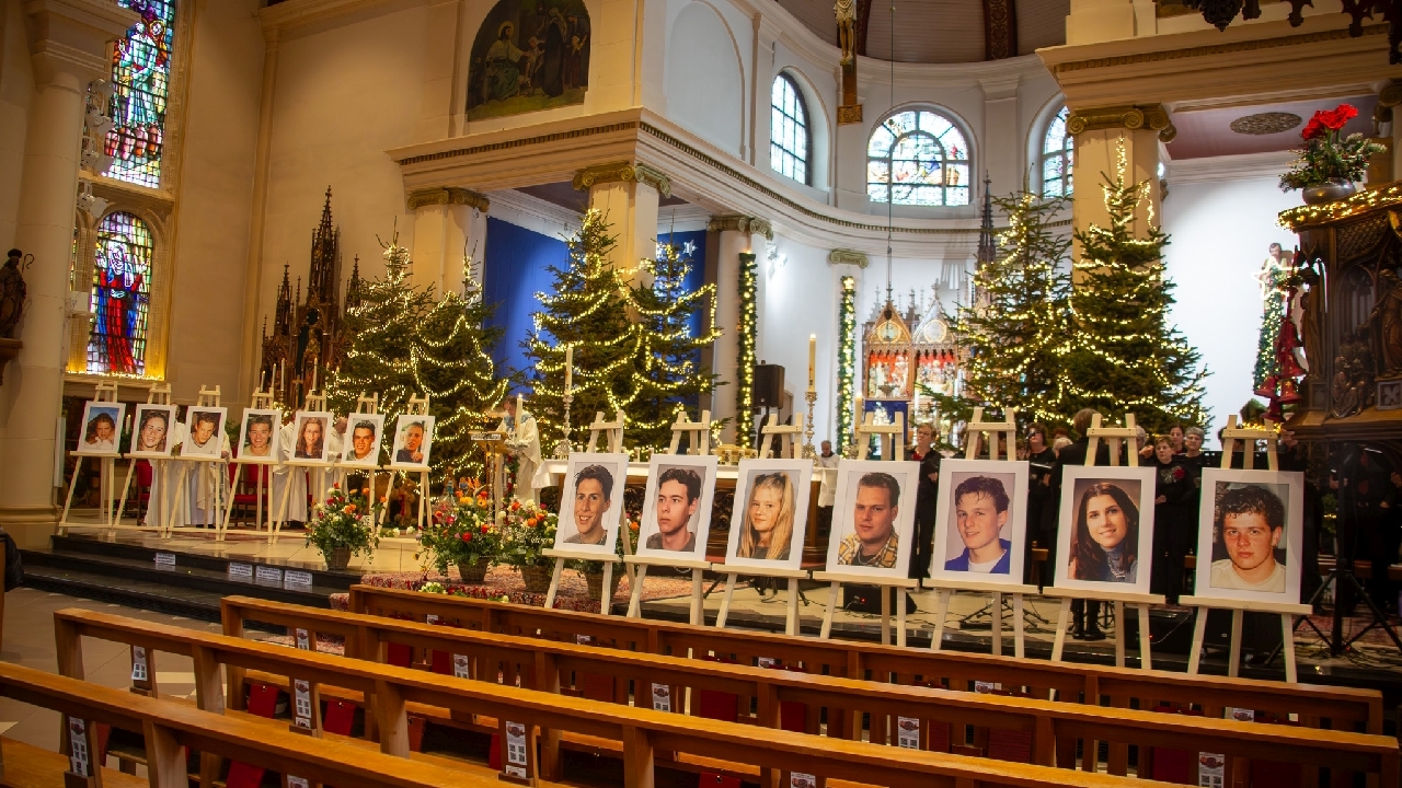 De Vincentiuskerk was tijdens de herdenkingsmis voor de Nieuwjaarsbrand van 25 jaar geleden goed gevuld met betrokkenen. Jong en oud kwamen samen om de viering bij te wonen. Het werd een indrukwekkende mis, waarin de veertien slachtoffers die de ramp destijds niet hebben overleefd, werden herdacht.