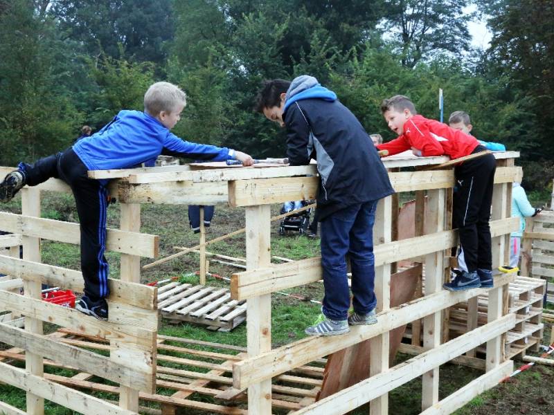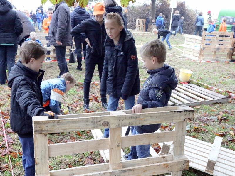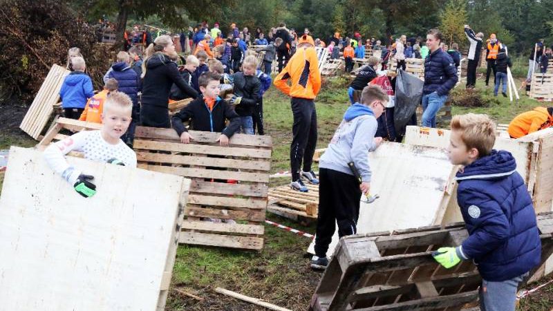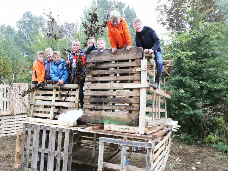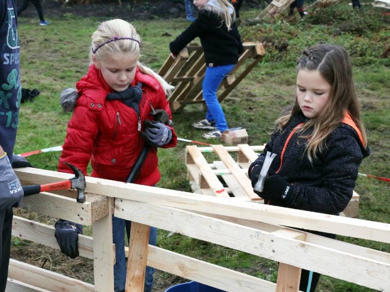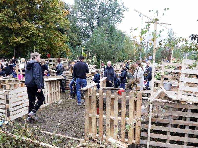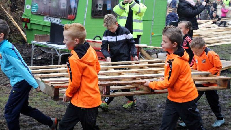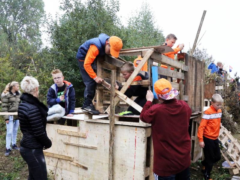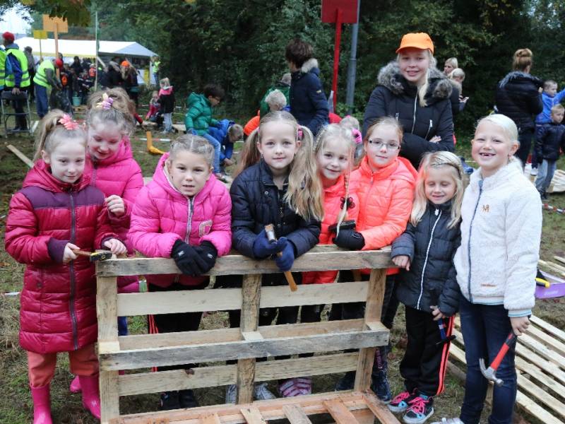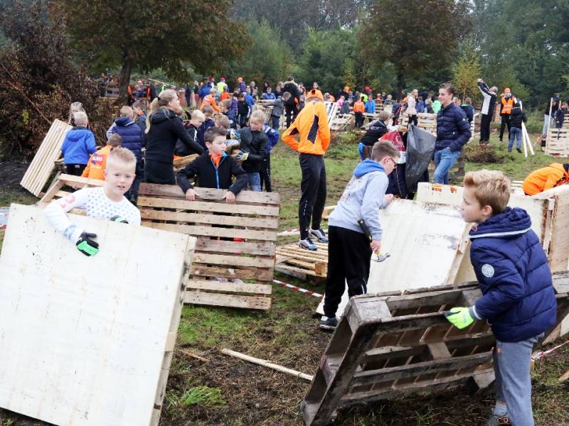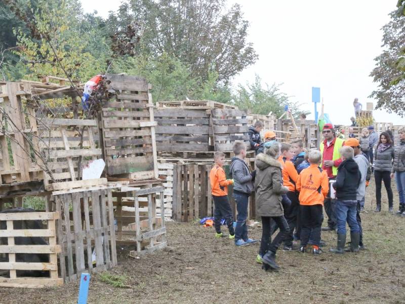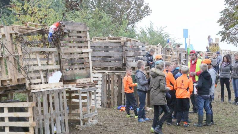 Zo’n honderd vrijwilligers waren present om te helpen. De jongens en meiden konden zich helemaal uitleven met het bouwen van de allermooiste hutten. Ze kregen ook drinken en eten aangeboden.