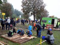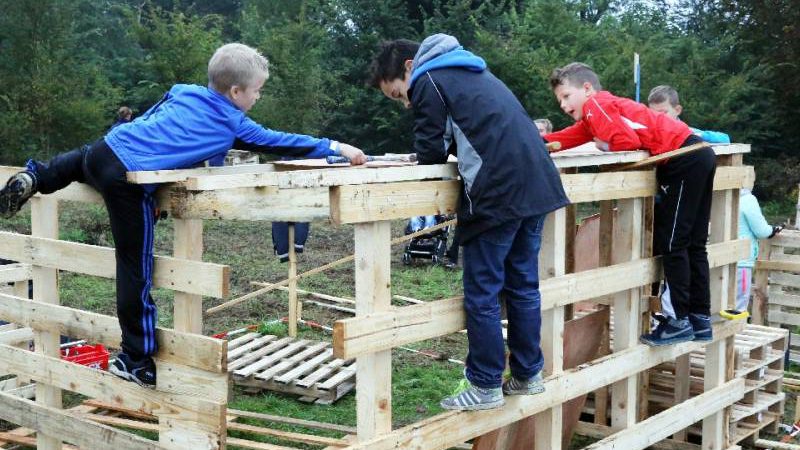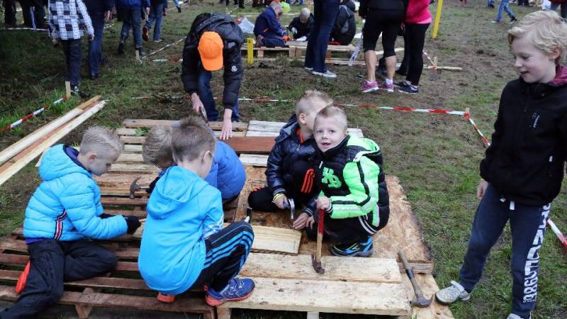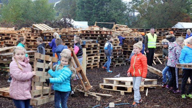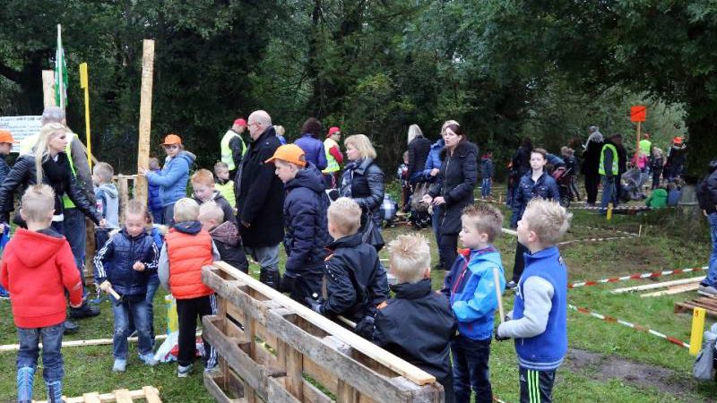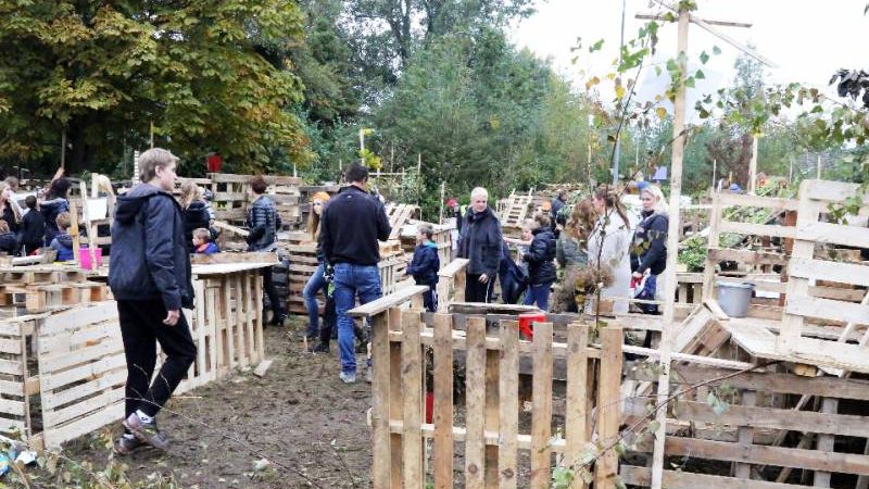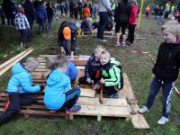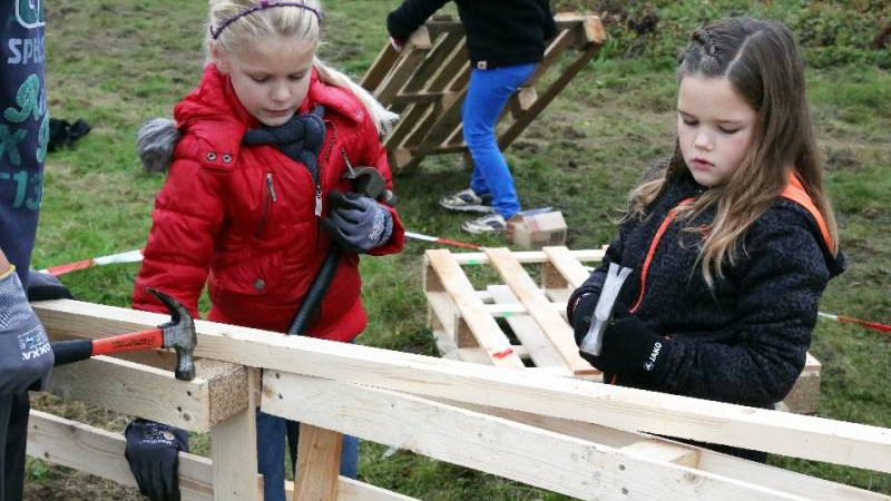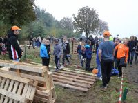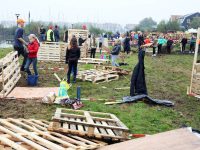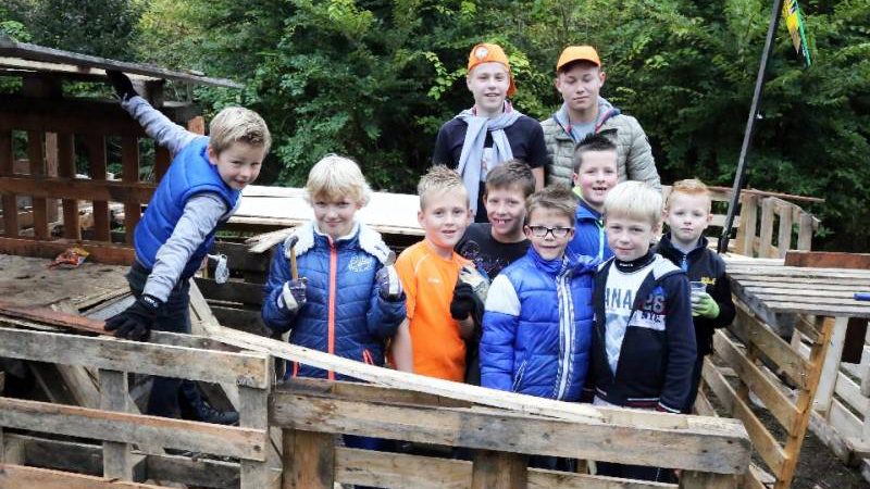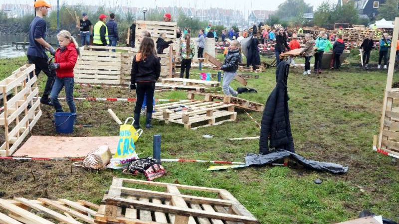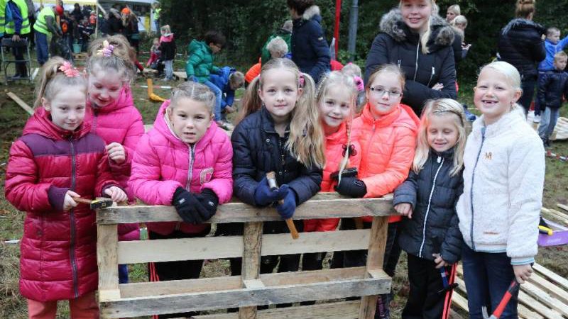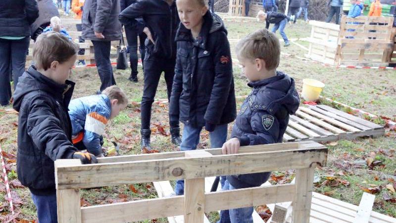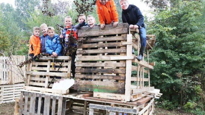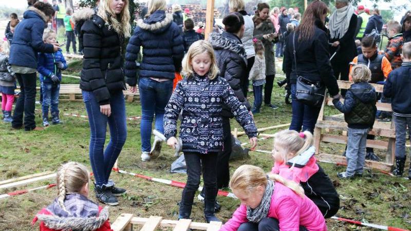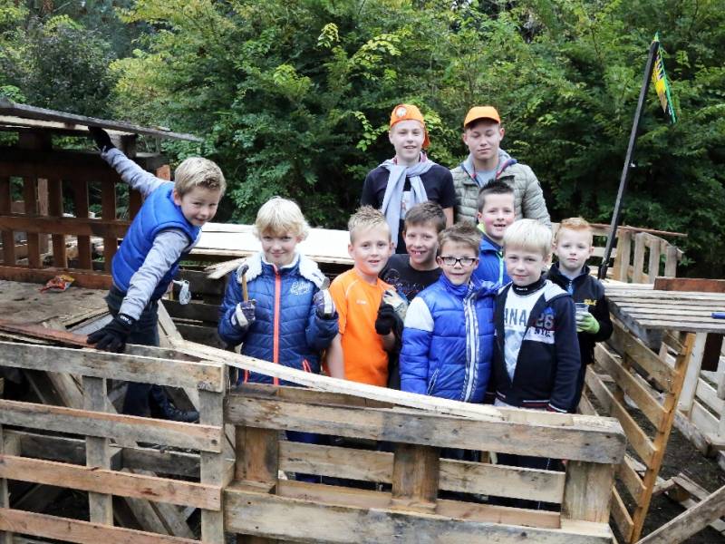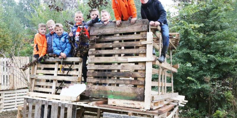 Zo’n honderd vrijwilligers waren present om te helpen. De jongens en meiden konden zich helemaal uitleven met het bouwen van de allermooiste hutten. Ze kregen ook drinken en eten aangeboden.