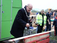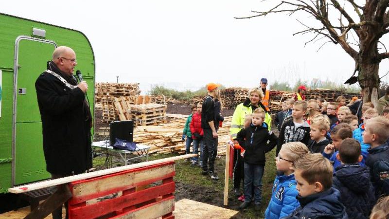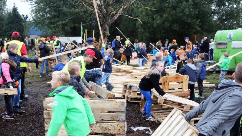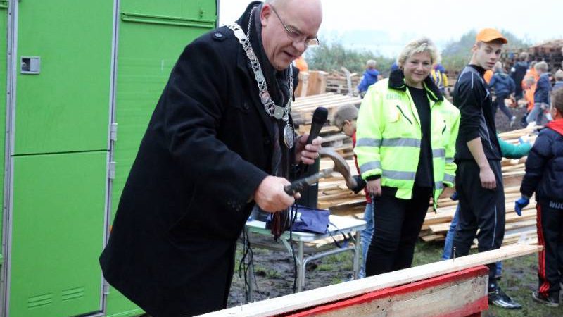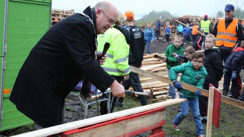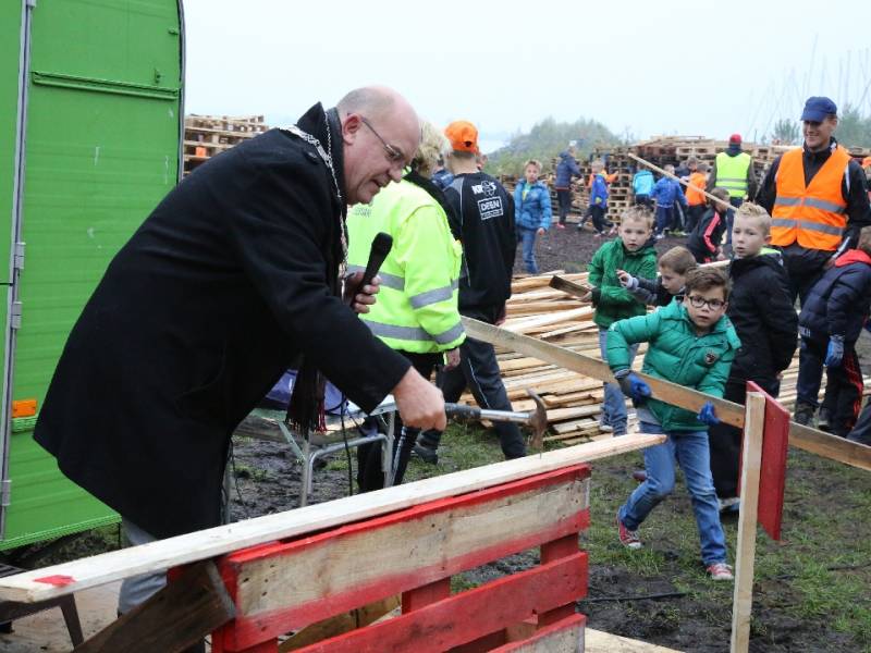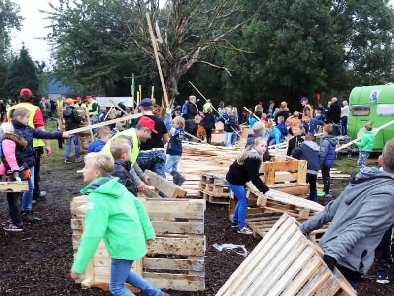 Om 9.00 uur opende burgemeester Van Beek het huttenkamp en toen kon het timmeren beginnen. Kees Kwakman van de FC hield op het laatst een verloting en er waren vijf prijzen voor de 60 groepen.