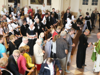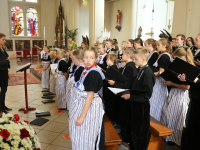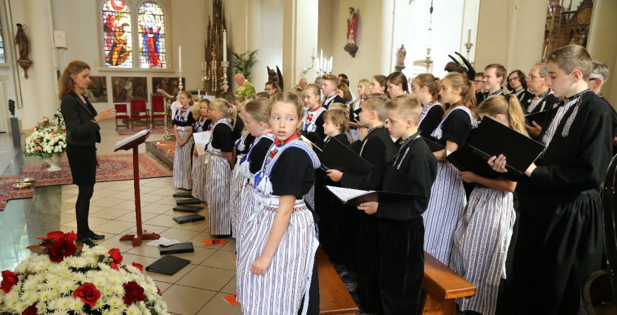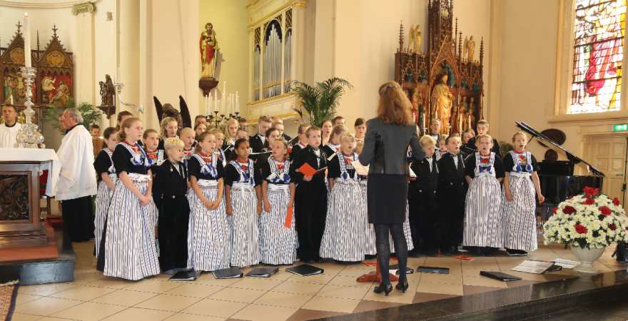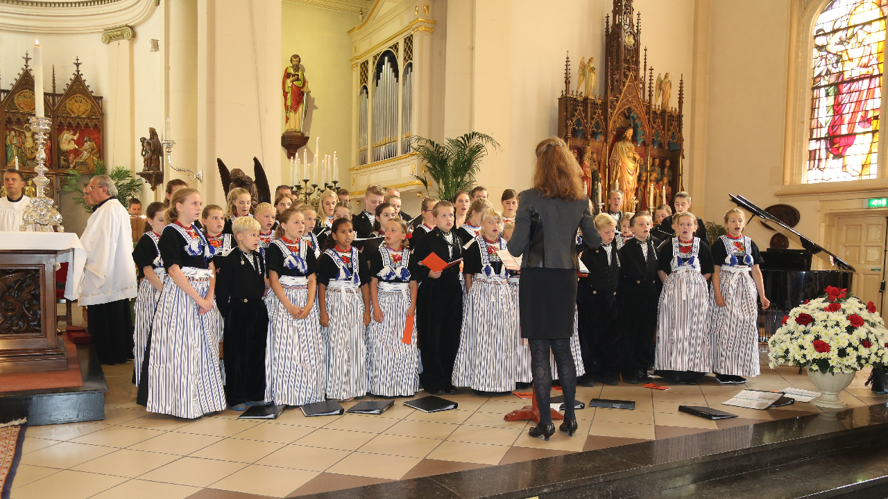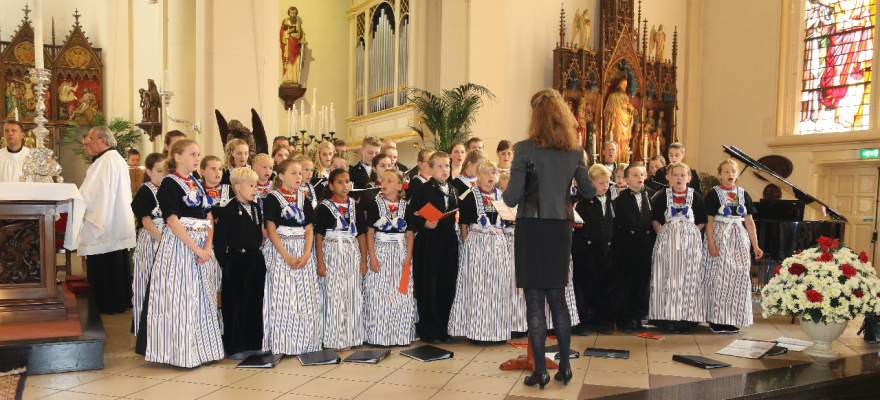 De Zangertjes stonden in het Volendams gekleed op het altaar. Heel mooi werd door hen gezongen en het was een mooi gezicht. Op het einde van de viering, die druk bezocht werd, werd staande door alle kerkgangers het Sint Vincentiuslied gezongen.