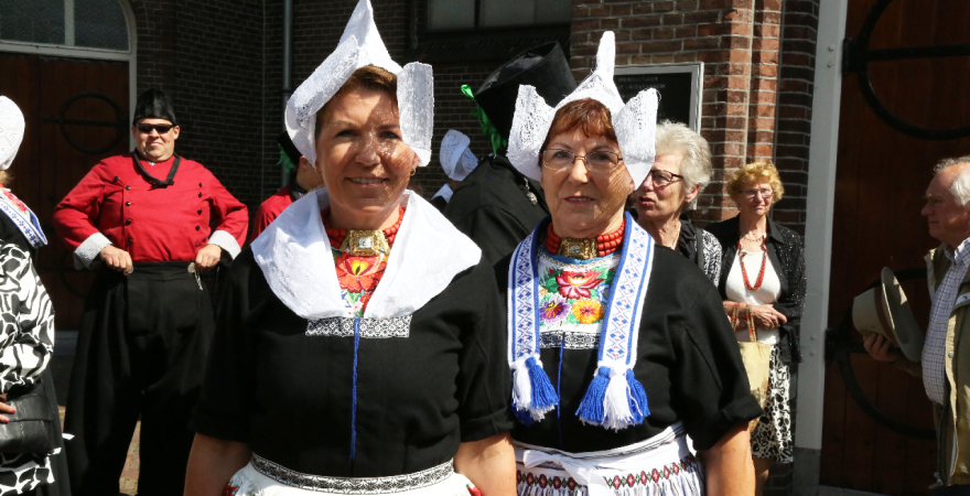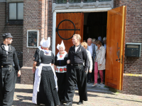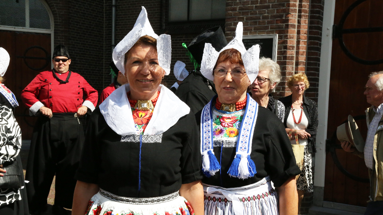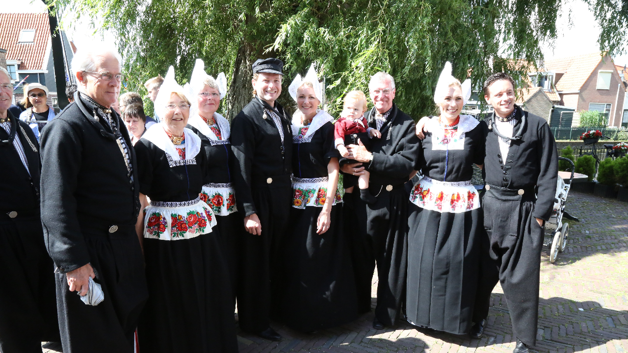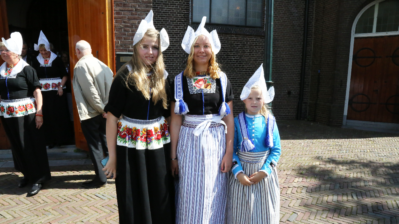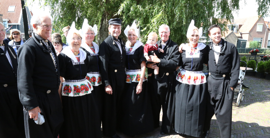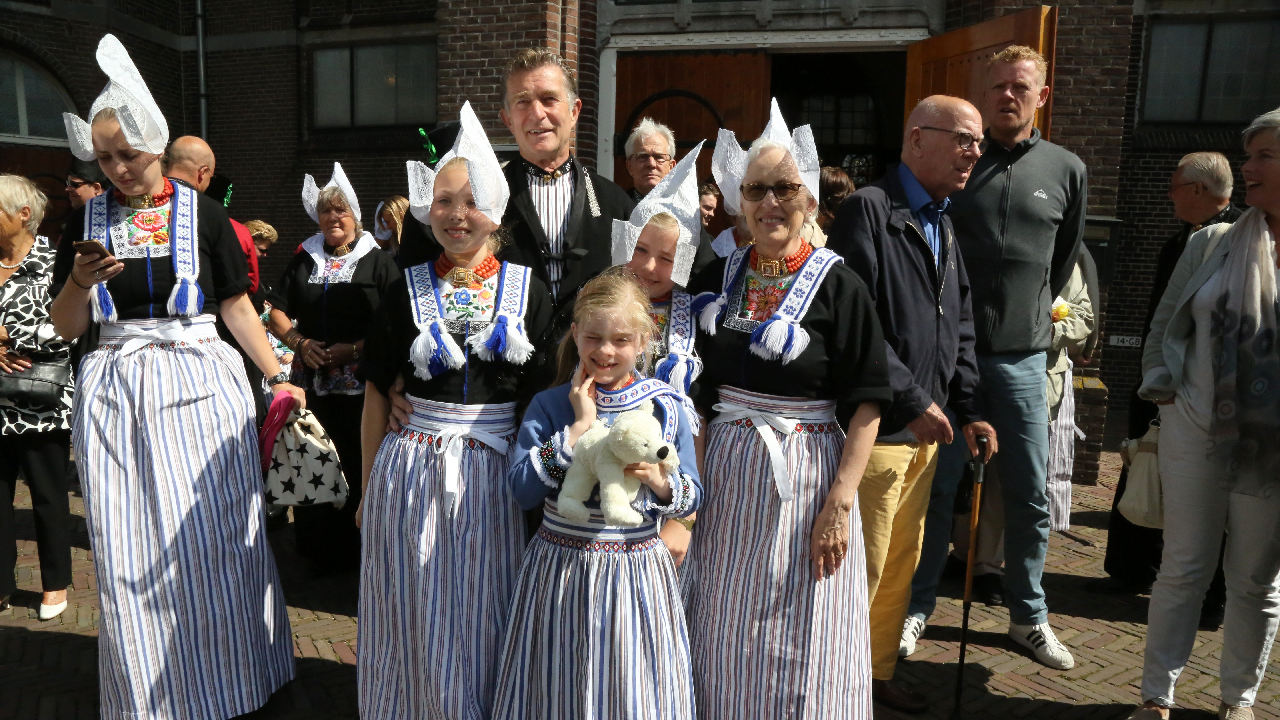 Na de kerkuitgang konden op het Kerkplein weer mooie plaatjes geschoten worden van de deelnemers aan de Volendammerdag die in kostuum ter kerke waren gegaan. Hierna werd gewandeld over de dijk.