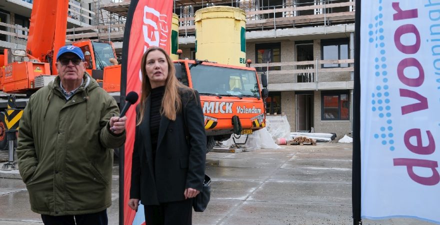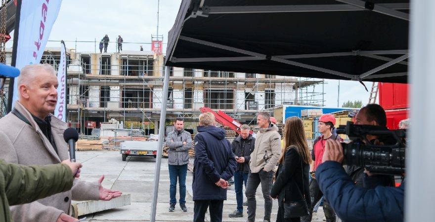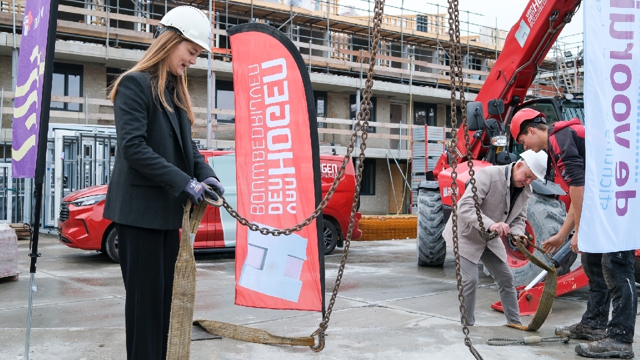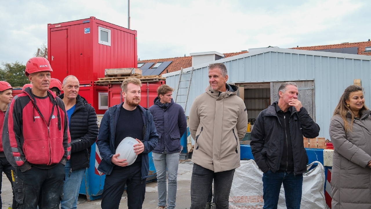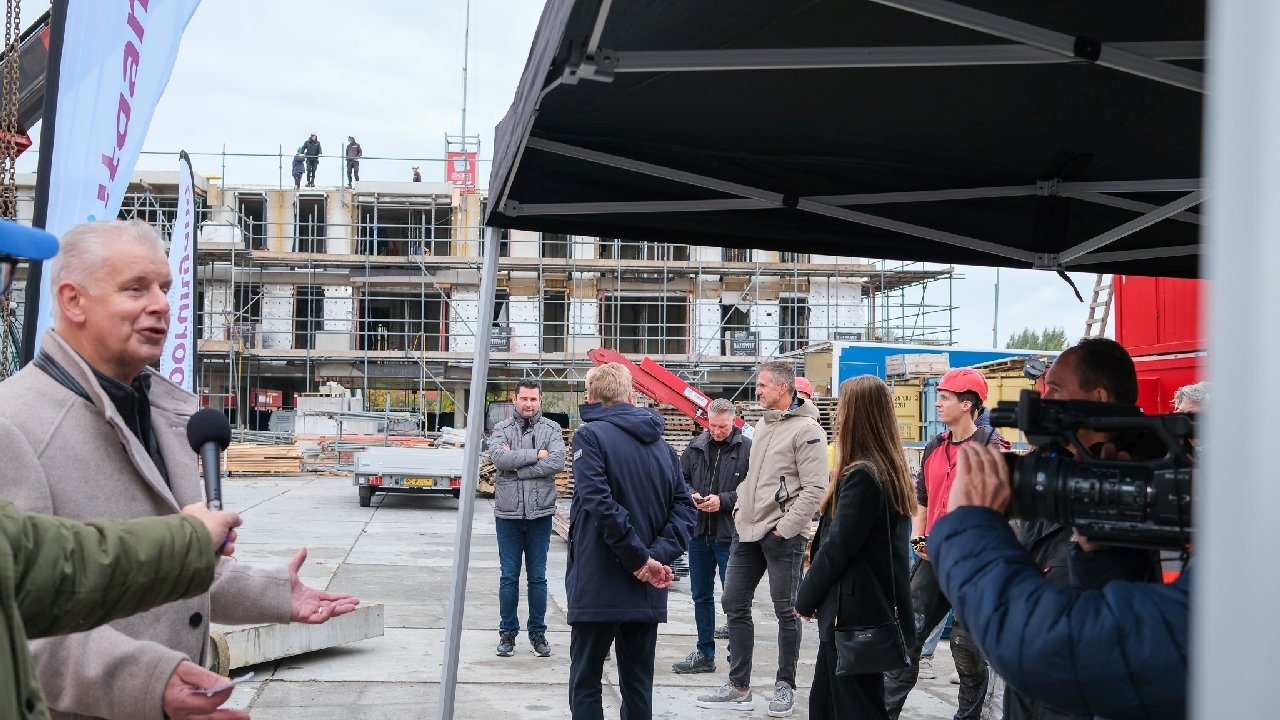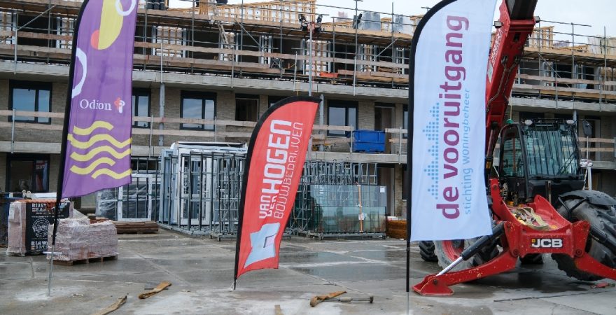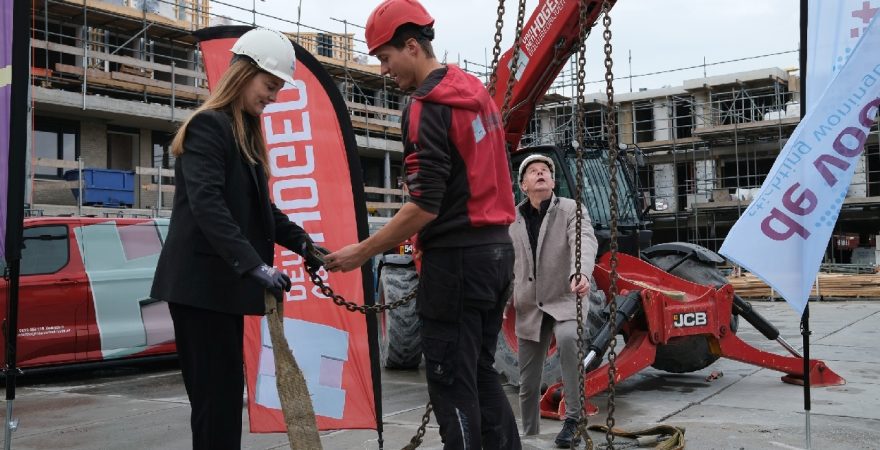 Op de bouwplaats van het nieuwe Maria Goretti-project was het een gezellige drukte. Op het middenterrein verzamelden genodigden van Stichting Woningbeheer De Vooruitgang, vertegenwoordigers van de gemeente, medewerkers van Odion en betrokken aannemers zich voor een bijzonder moment: het bereiken van het hoogste punt van de bouw.
