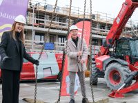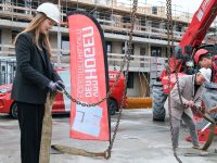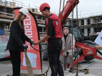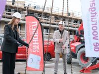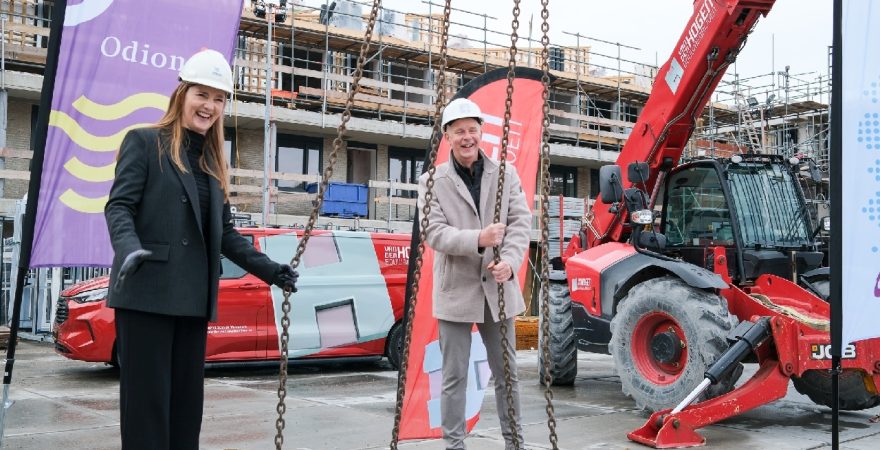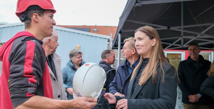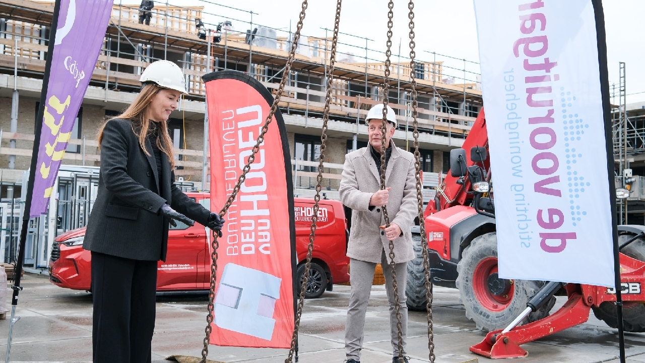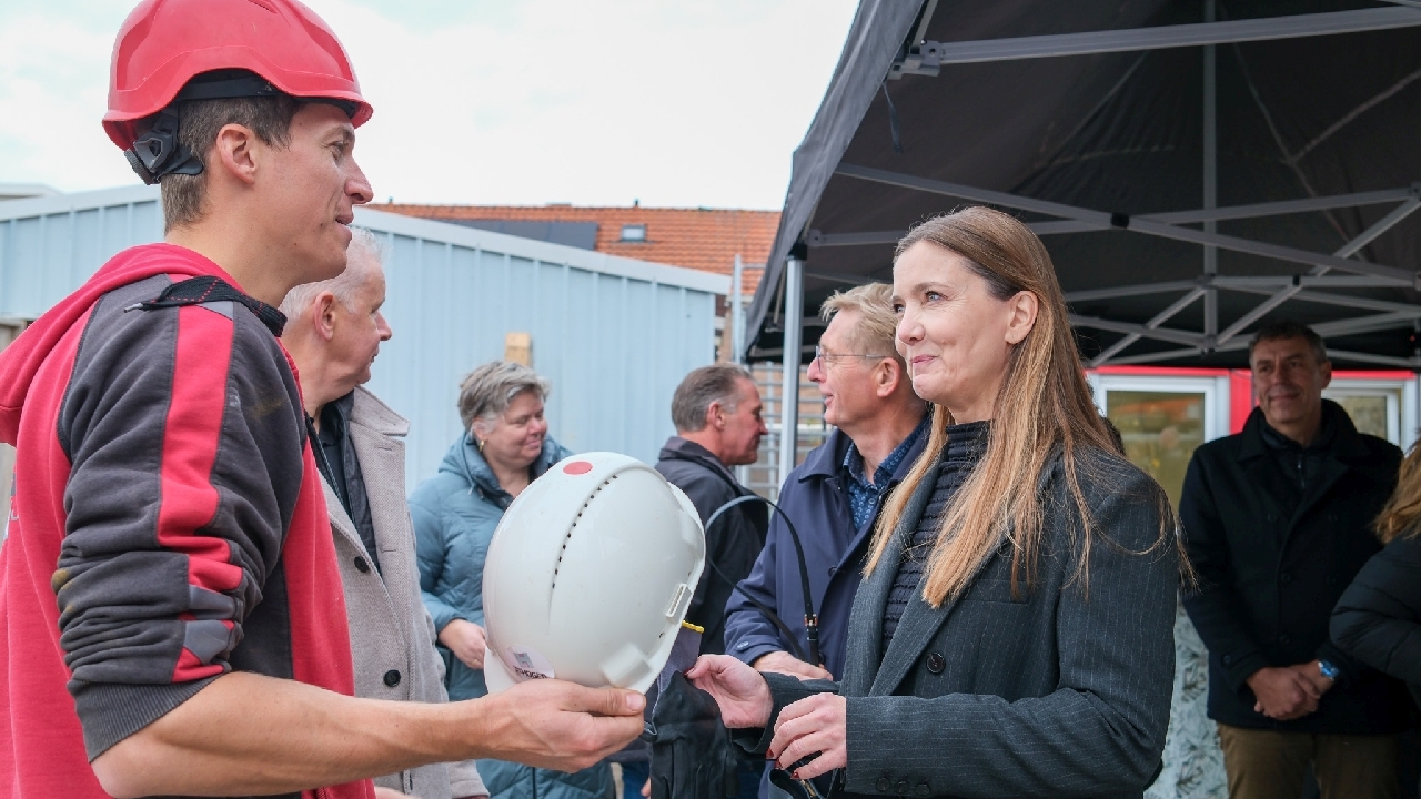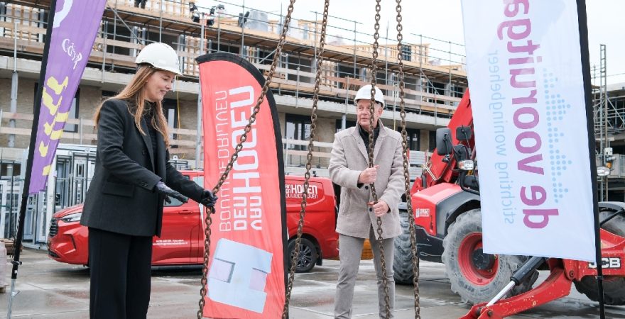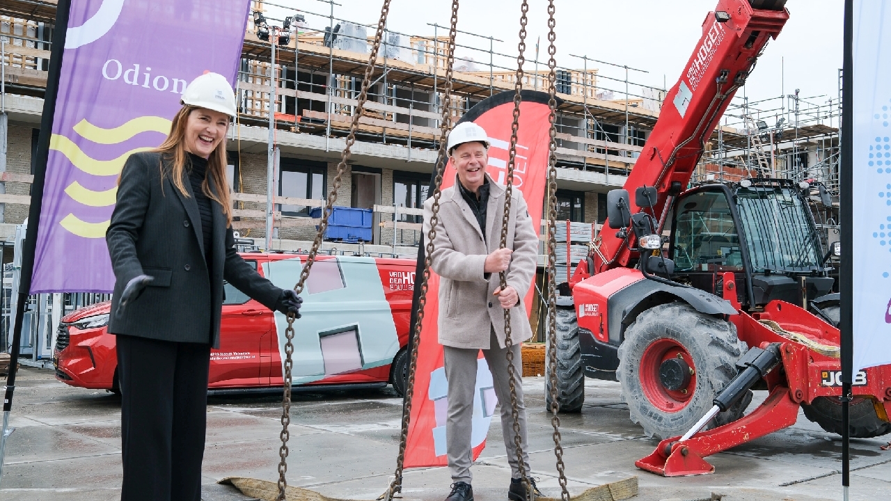 Op de bouwplaats van het nieuwe Maria Goretti-project was het een gezellige drukte. Op het middenterrein verzamelden genodigden van Stichting Woningbeheer De Vooruitgang, vertegenwoordigers van de gemeente, medewerkers van Odion en betrokken aannemers zich voor een bijzonder moment: het bereiken van het hoogste punt van de bouw.