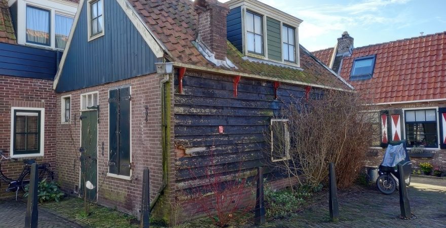 Het huisje van de familie Butter – Karregat wordt al een aantal jaren niet bewoond en er wordt blijkbaar ook geen onderhoud aan gepleegd. Stilstand is achteruitgang en dat wordt steeds meer zichtbaar. Van de houten gepotdekselde zijgevel vallen al delen af en het groen tiert welig. De vaste kerkgangers moet het ook opvallen. Het toeristenseizoen is intussen begonnen; vorige week zag ik er een gids voorbij komen met een groep van ongeveer 30 toeristen. Nu vind ik dat persoonlijk niet eens het belangrijkste. Erger is, dat de staat van het huisje steeds meer achteruit gaat. We zouden er voor moeten waken dat het binnenkort van ellende instort. Daardoor zouden we alweer een karakteristiek, beeldbepalend pandje, dit keer op het oude Doolhof, verliezen. Mogelijk hebben de eigenaar of eigenaresse wat ondersteuning nodig bij het nemen van een goede beslissing over de toekomst van hun huisje.