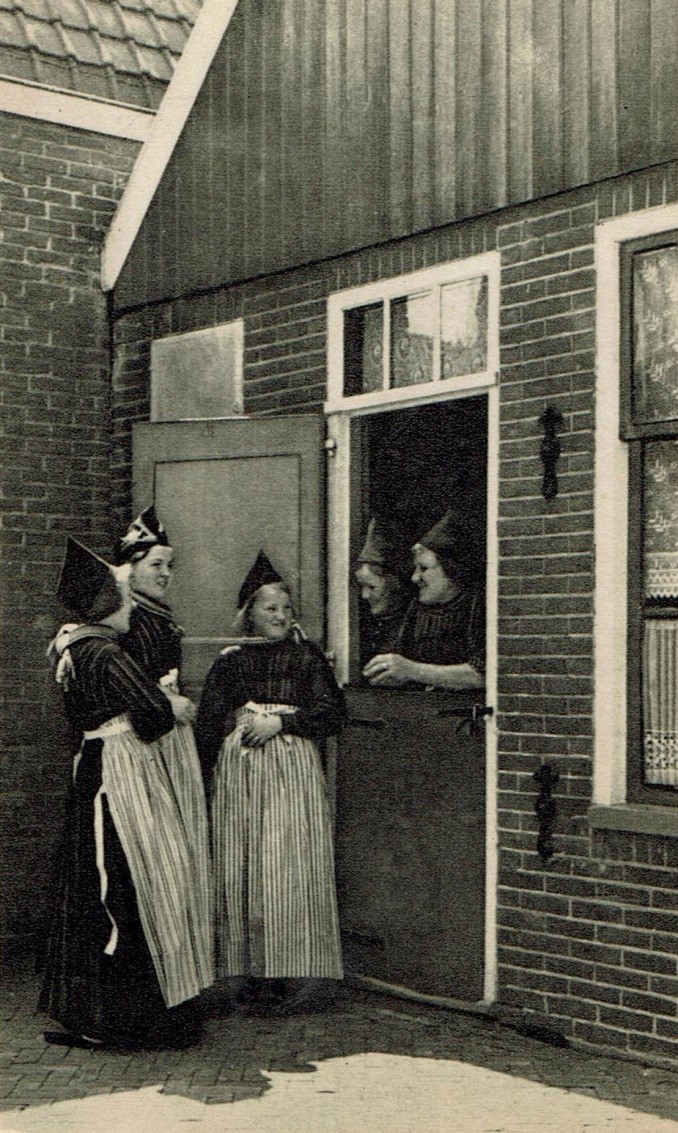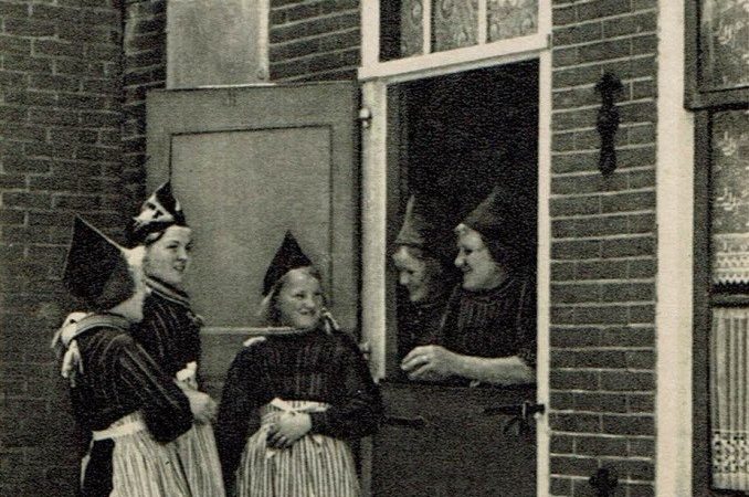 Voor geïnteresseerden die regelmatig bezig zijn met foto’s van Oud-Volendam, is de bijgaande foto geen onbekende. Er is een gezellig onderonsje gaande op het straatje vóór het huisje van de familie Jan Butter en Jannig Karregat op het Doolhof. De ouderen zullen hen zeker hebben gekend; Jan had door een ongeluk in de fabriek zijn rechterarm verloren.