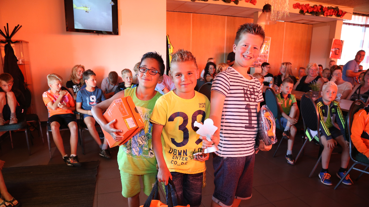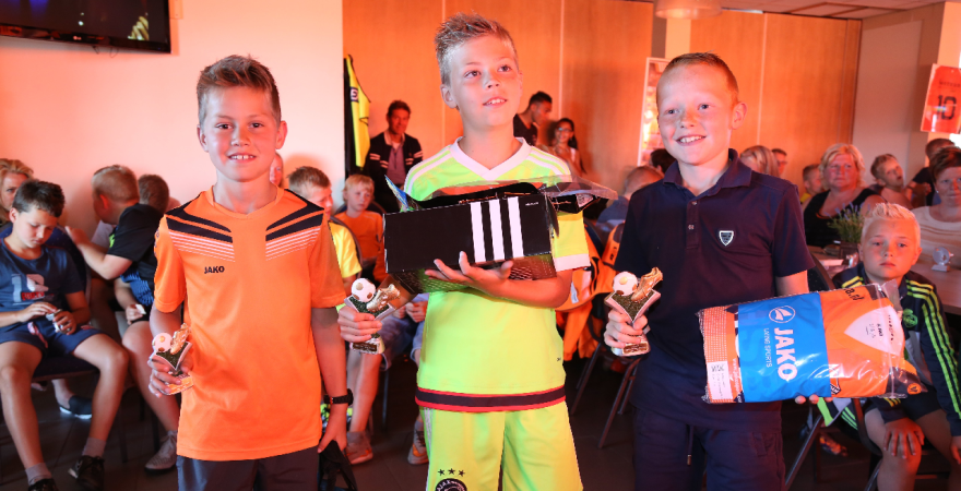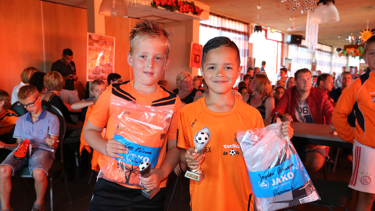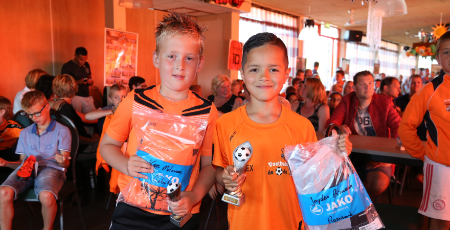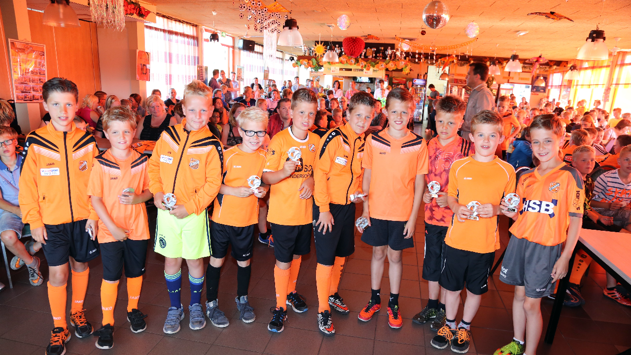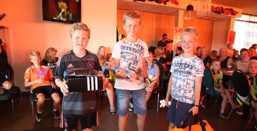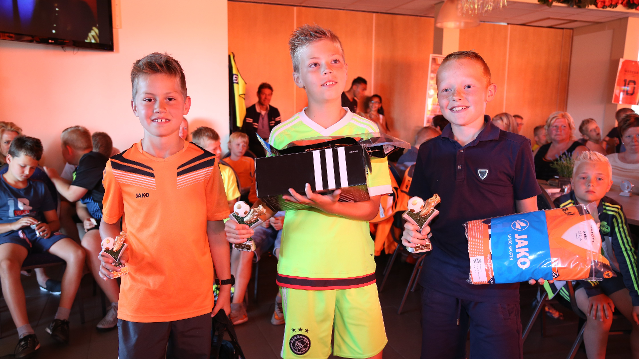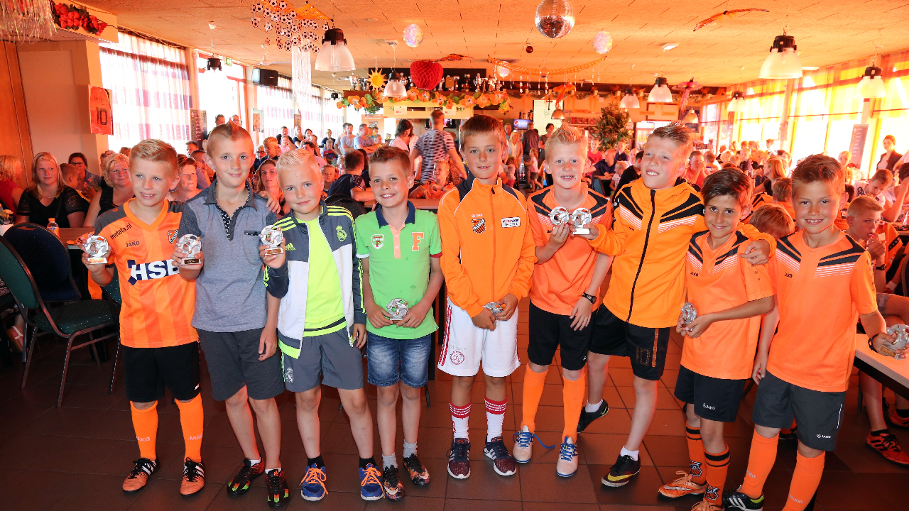 Vervolgens werden de Rakkers (beste penaltynemers) en de Toppers (meeste inzet en kwaliteit) gehuldigd. Zij kregen een mooi aandenken. Tot leiders van het jaar zijn gekozen Gosé Pelk (E-pupillen) en Harry Tuijp (F-pupillen). Daarna ging een volle kast met prijzen eruit.