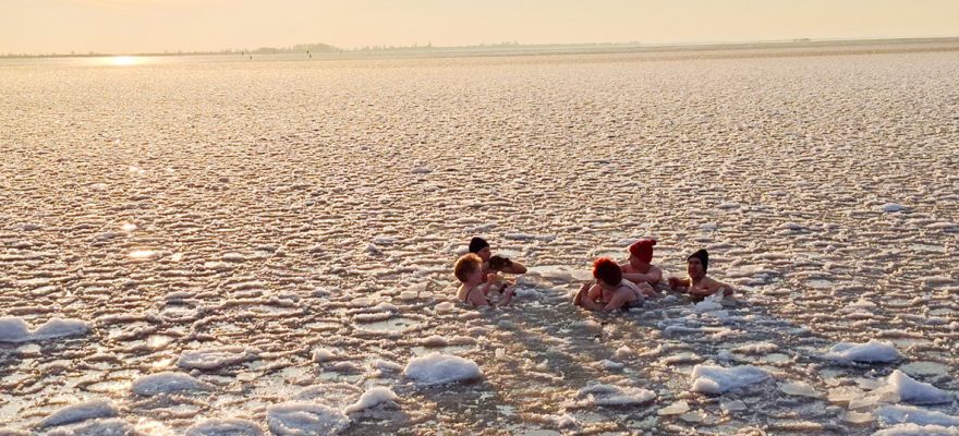 Dat kon zelfs in een prachtig decor, zoals zondagmorgen, toen het zonnetje opkwam en er bij het Zuideinde een laagje ijs op het IJsselmeer lag. Er werd eerst een wak gehakt en daarin werd voor enkele minuten de vrieskou getrotseerd. ,,We hebben het gewoon weer gedaan”, klonk het, nadat de mentale en fysieke barrière weer was genomen.