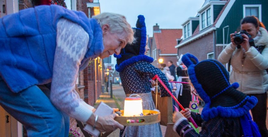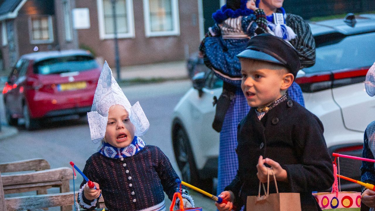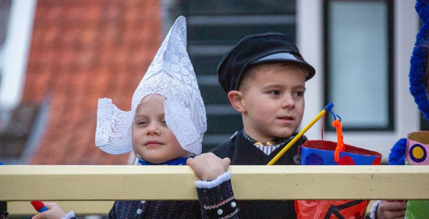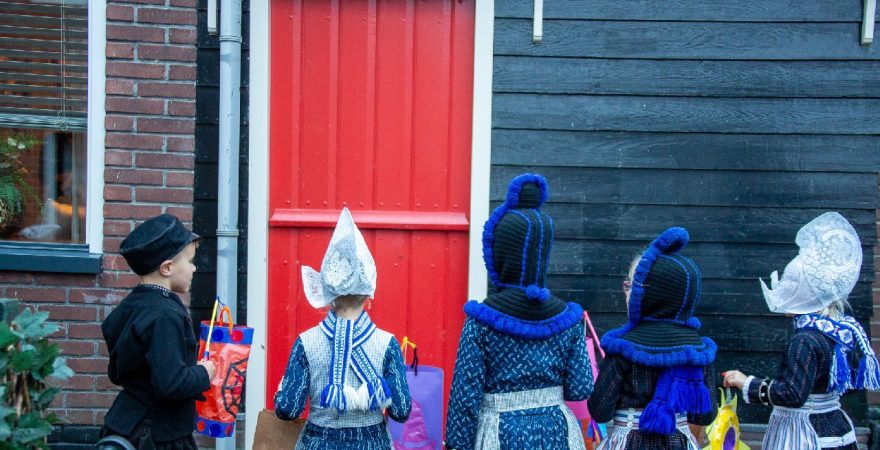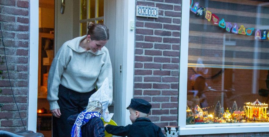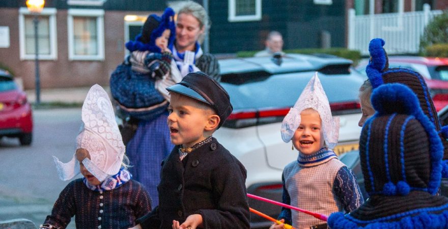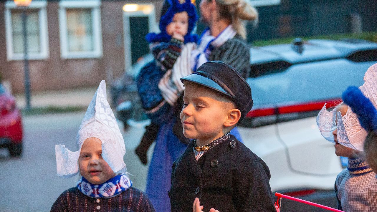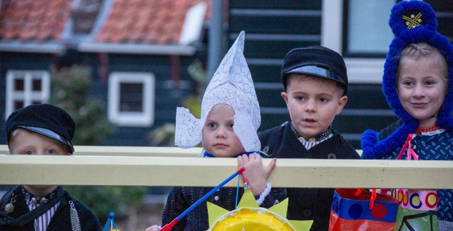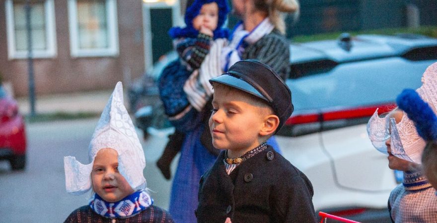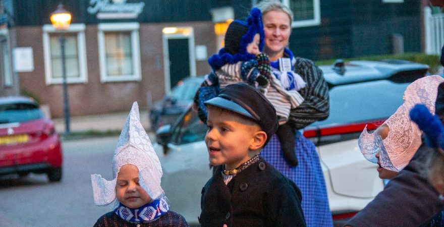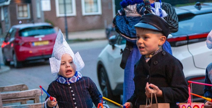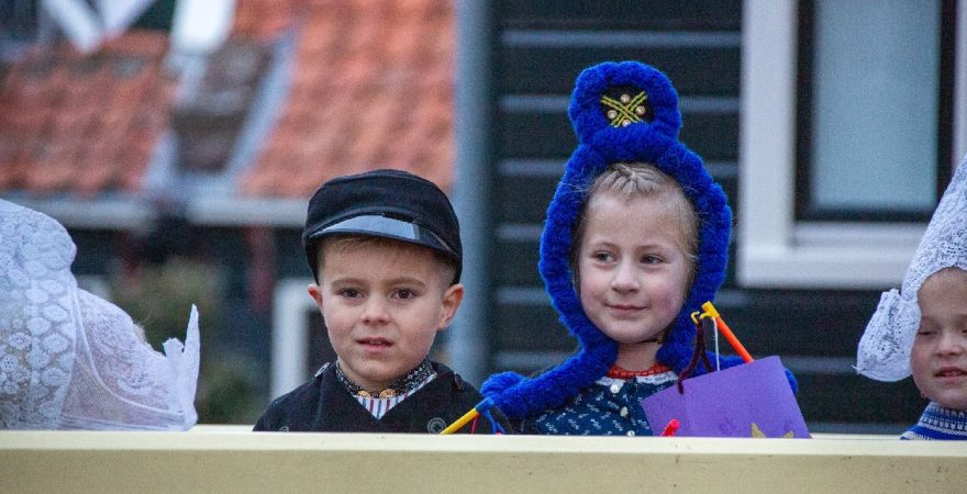 Een uniek moment vond afgelopen dinsdagmiddag plaats in de Oude Kom van Volendam. Op initiatief van Yoni Runderkamp en Simone Kwakman-Brinkkemper werden een aantal jonge kinderen in ‘ut Volledams’ gehesen om vervolgens langs de deuren te gaan voor Sint-Maarten.
