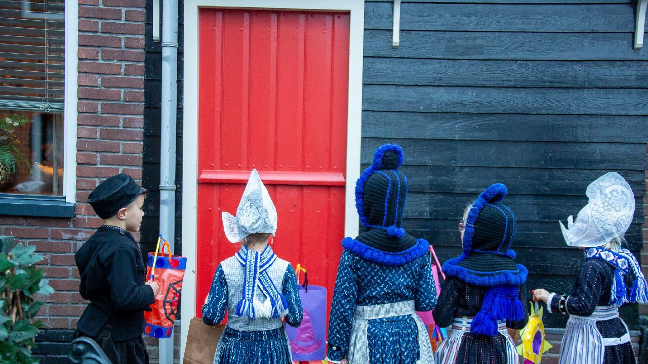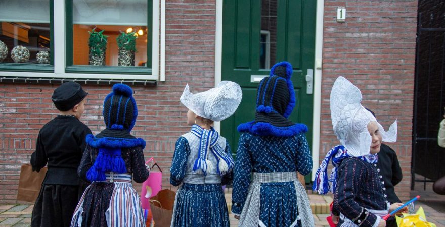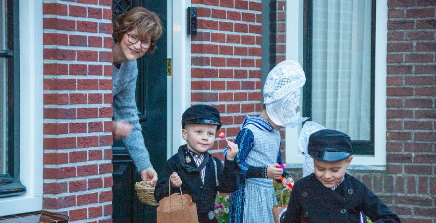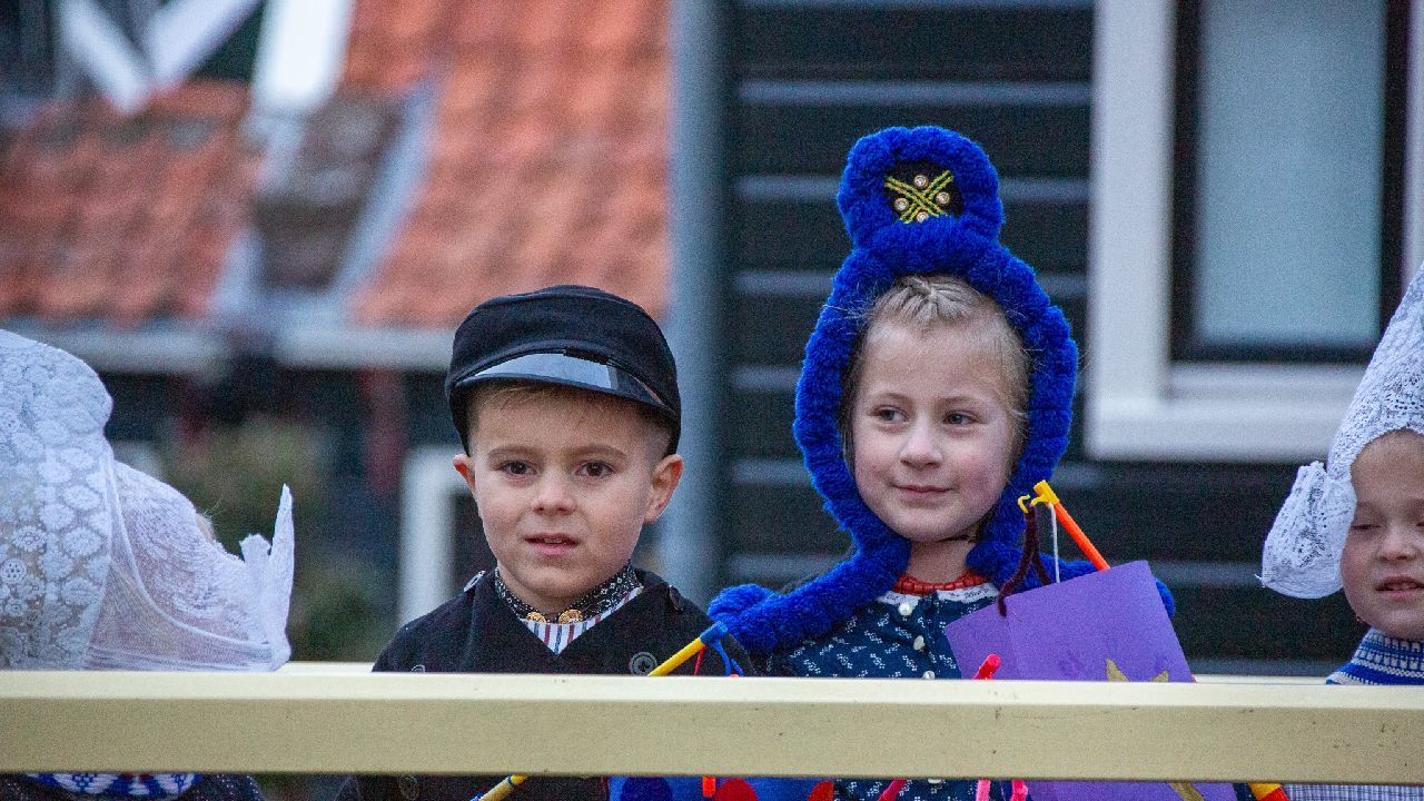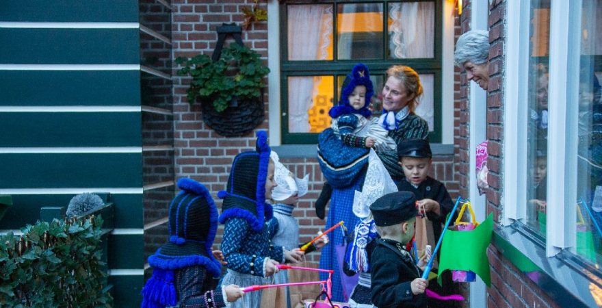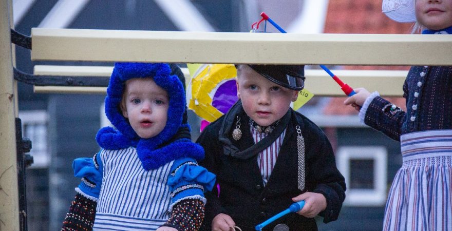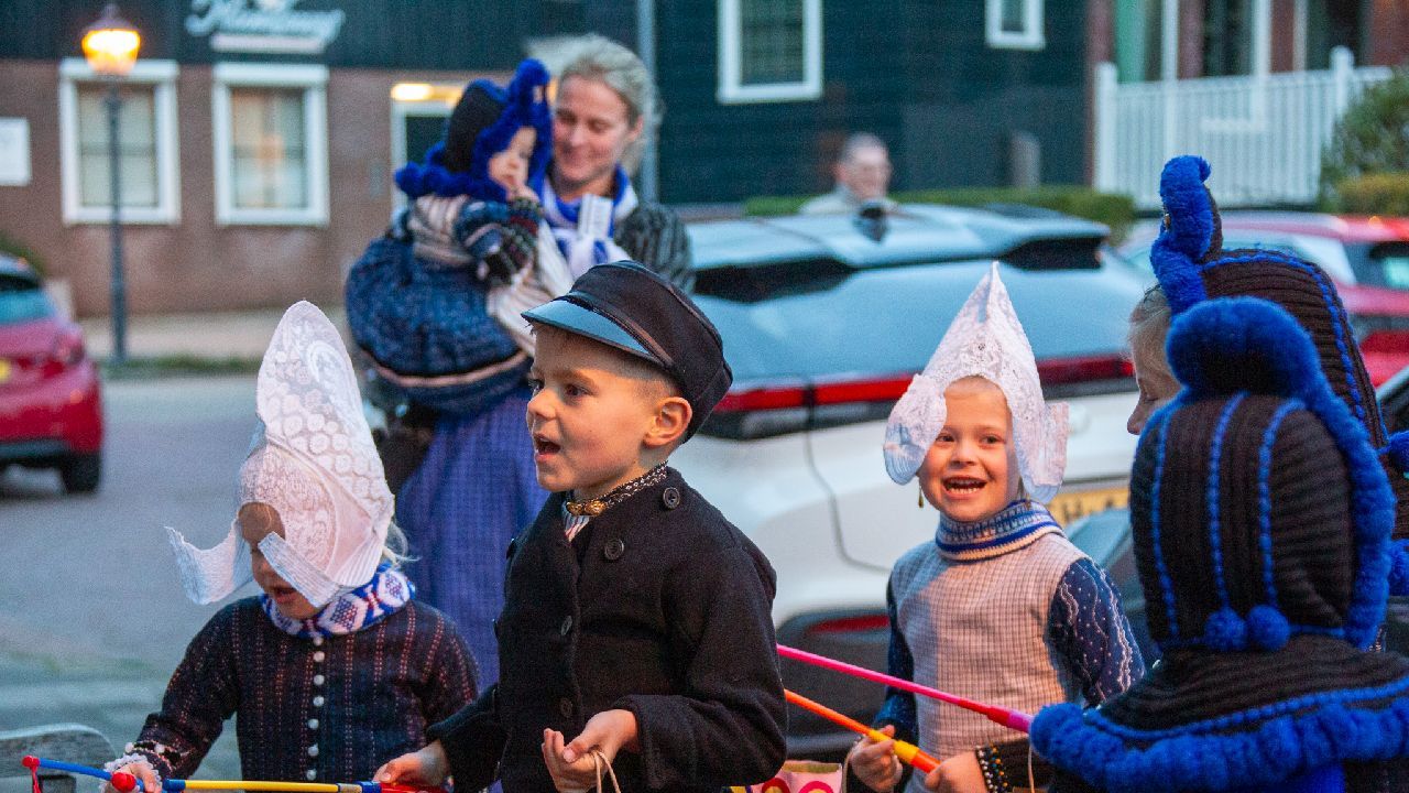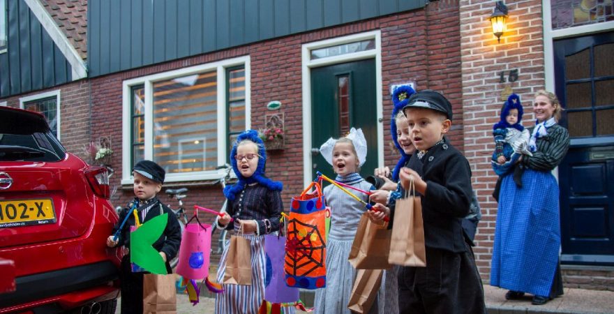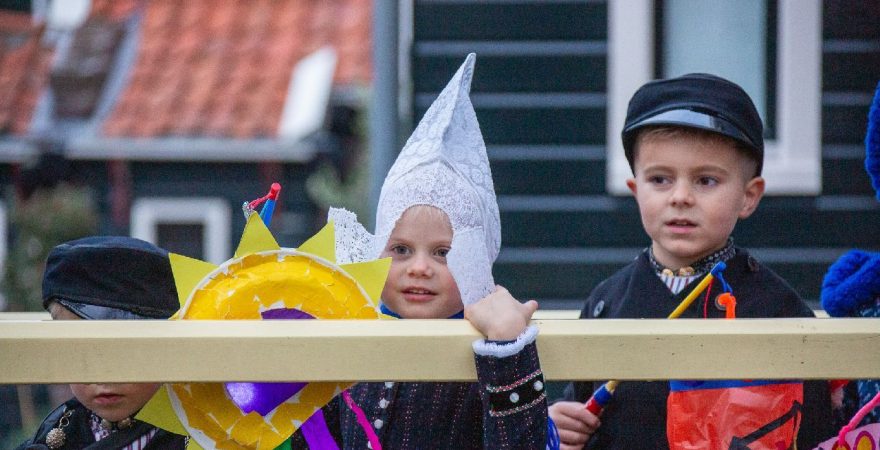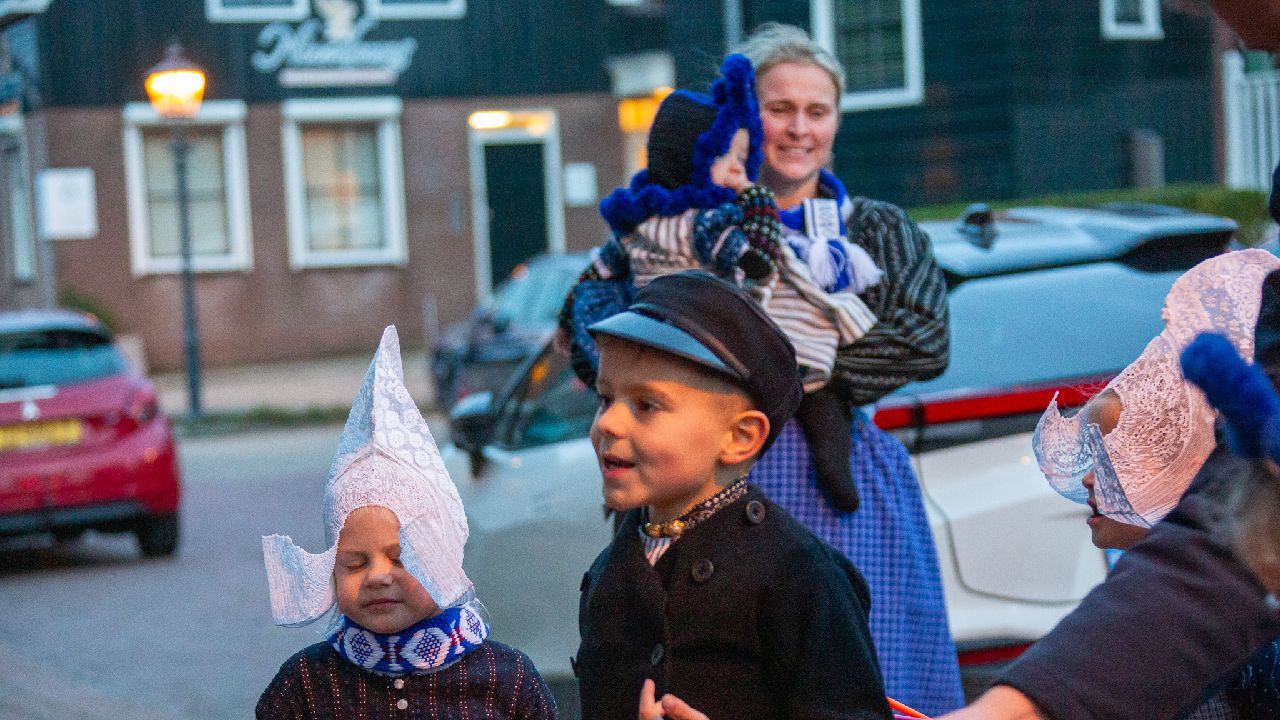 Een uniek moment vond afgelopen dinsdagmiddag plaats in de Oude Kom van Volendam. Op initiatief van Yoni Runderkamp en Simone Kwakman-Brinkkemper werden een aantal jonge kinderen in ‘ut Volledams’ gehesen om vervolgens langs de deuren te gaan voor Sint-Maarten.