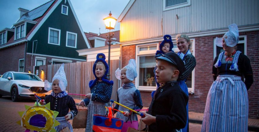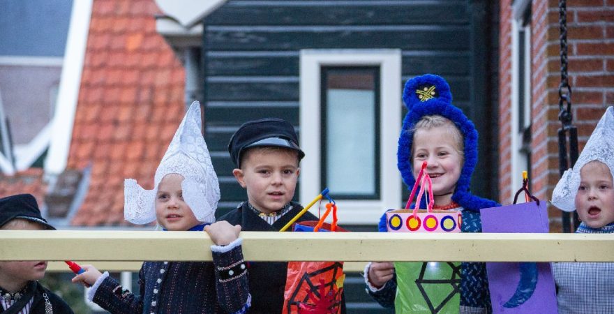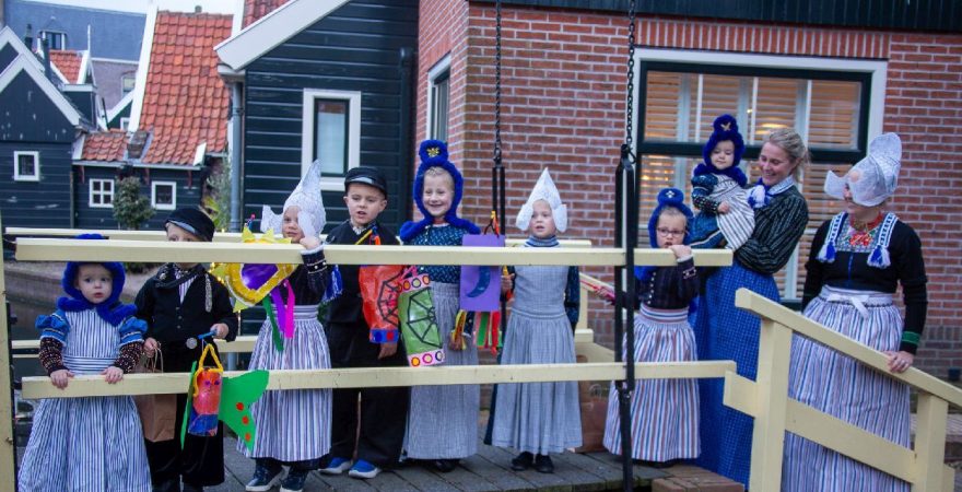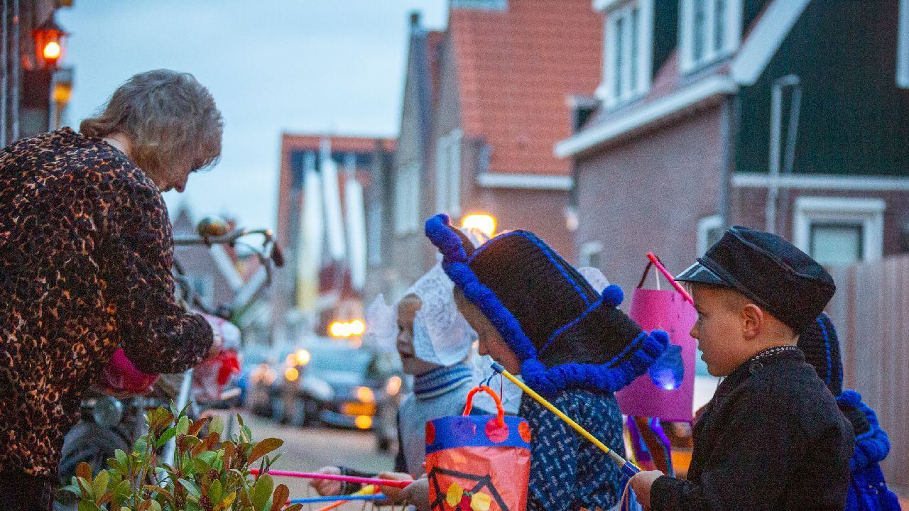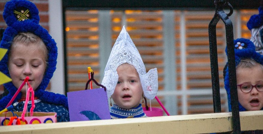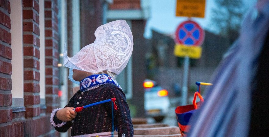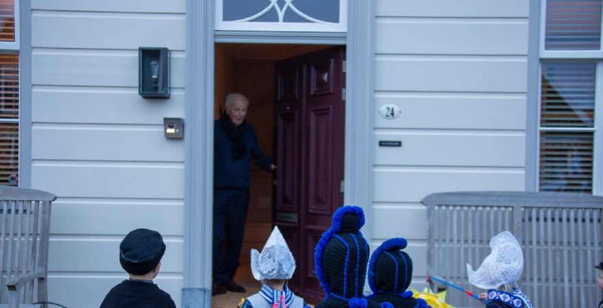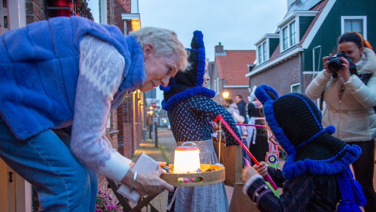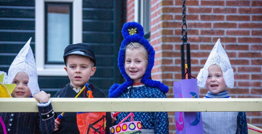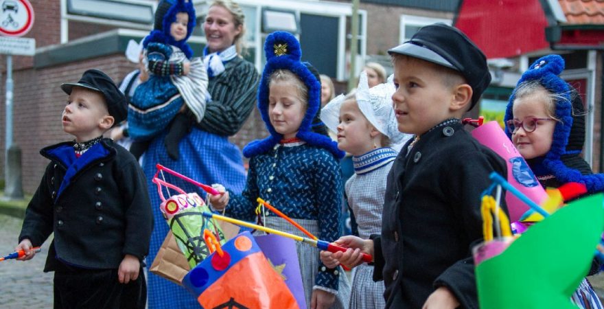 Een uniek moment vond afgelopen dinsdagmiddag plaats in de Oude Kom van Volendam. Op initiatief van Yoni Runderkamp en Simone Kwakman-Brinkkemper werden een aantal jonge kinderen in ‘ut Volledams’ gehesen om vervolgens langs de deuren te gaan voor Sint-Maarten.