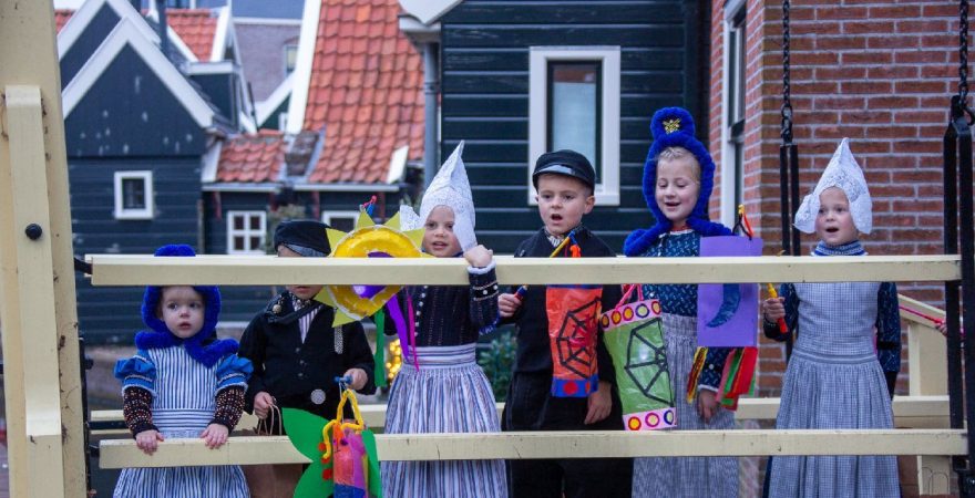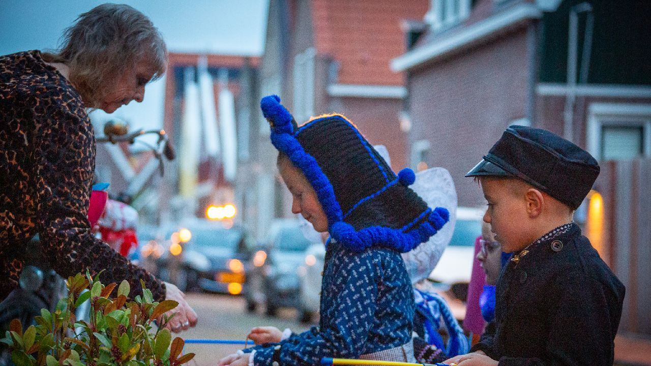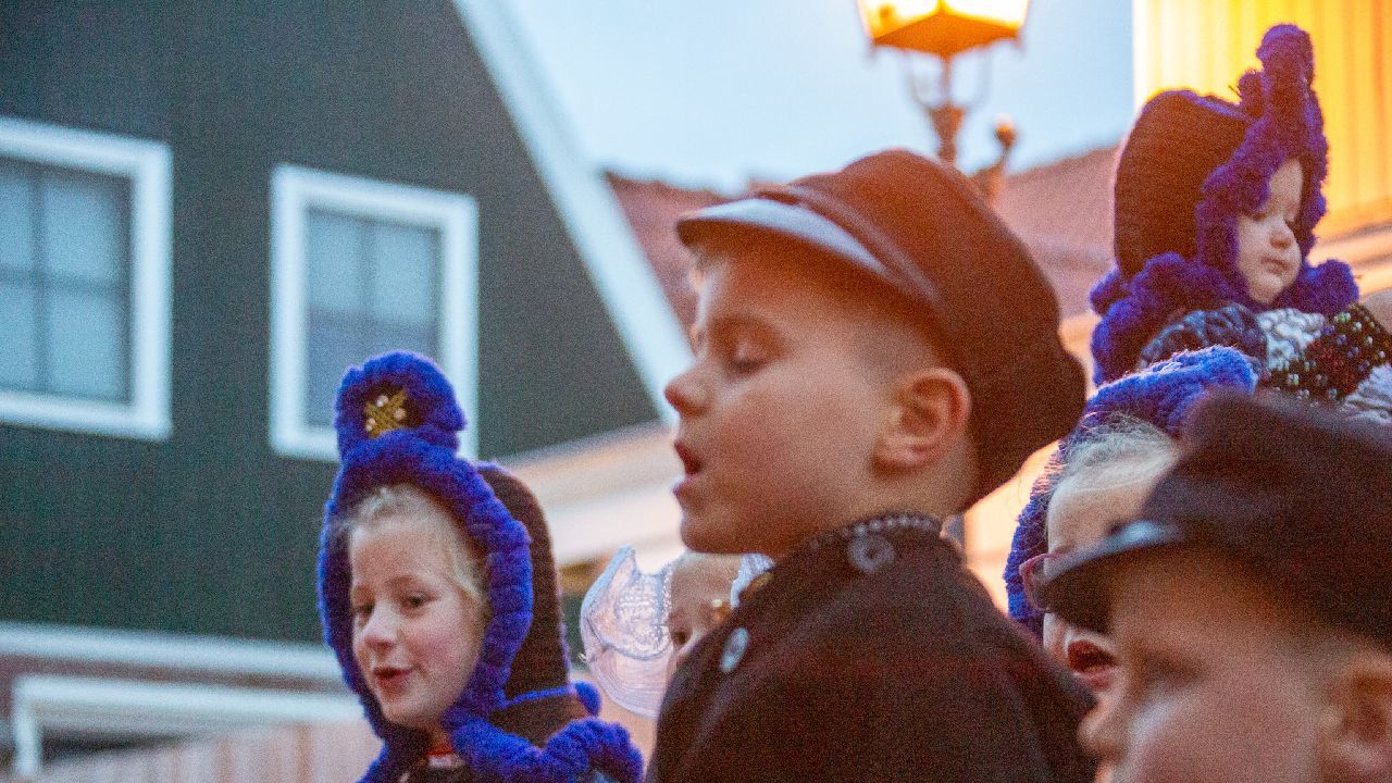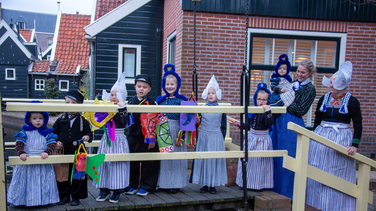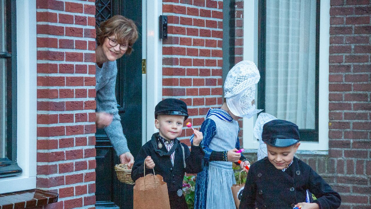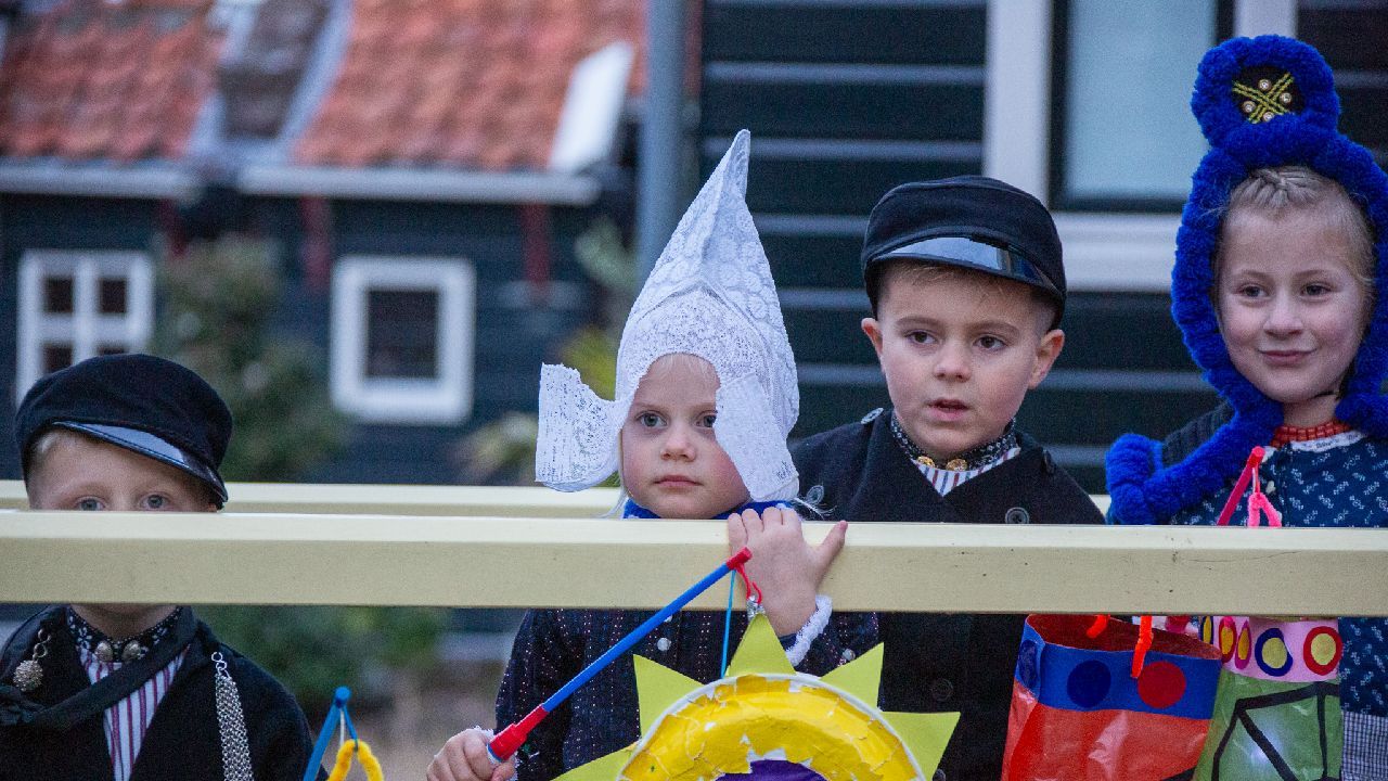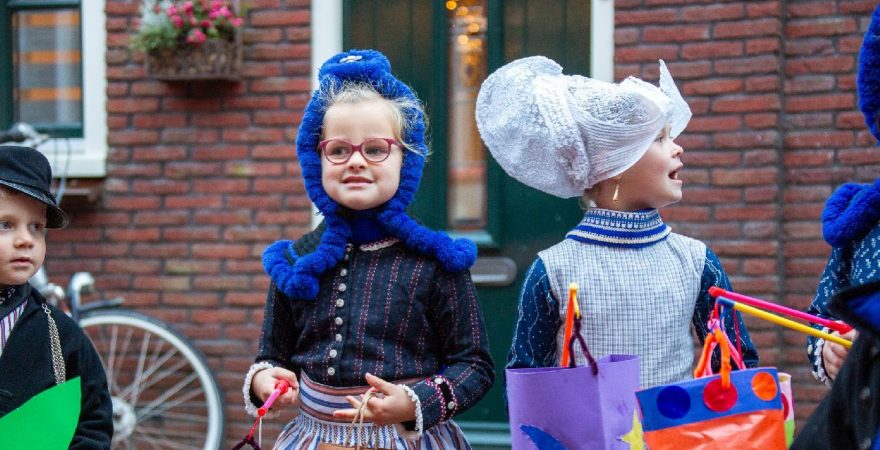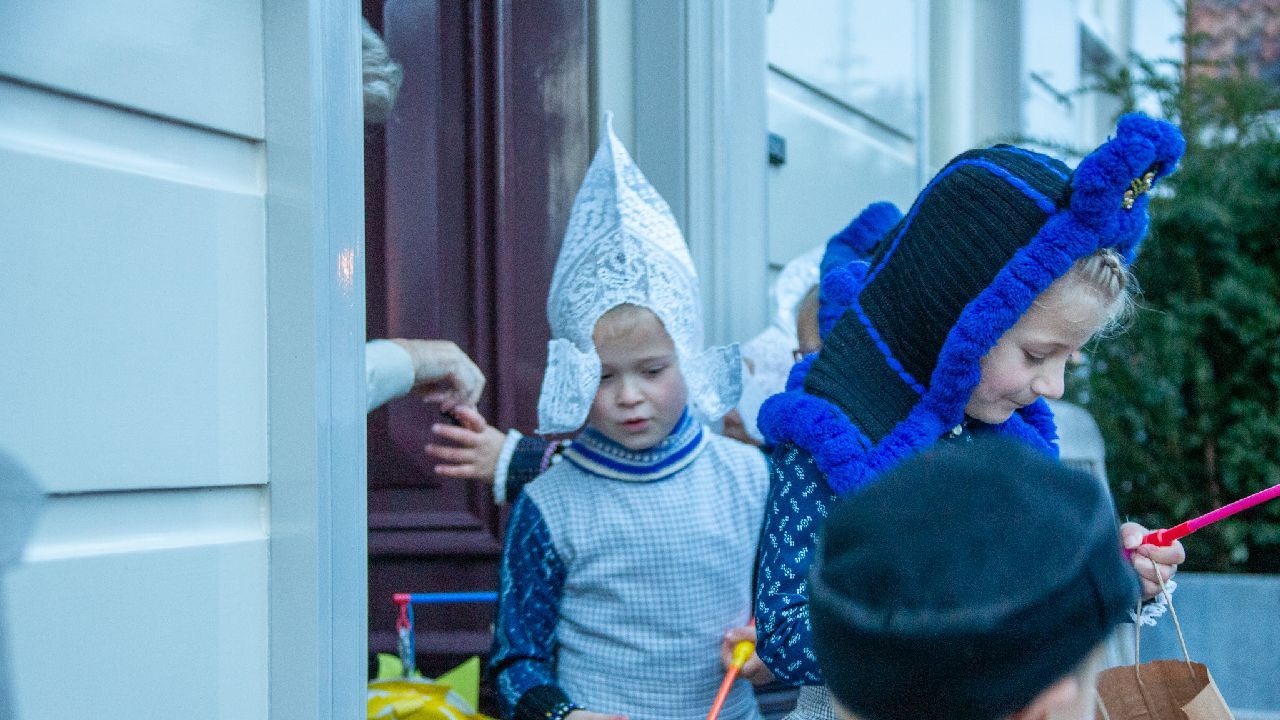 Een uniek moment vond afgelopen dinsdagmiddag plaats in de Oude Kom van Volendam. Op initiatief van Yoni Runderkamp en Simone Kwakman-Brinkkemper werden een aantal jonge kinderen in ‘ut Volledams’ gehesen om vervolgens langs de deuren te gaan voor Sint-Maarten.