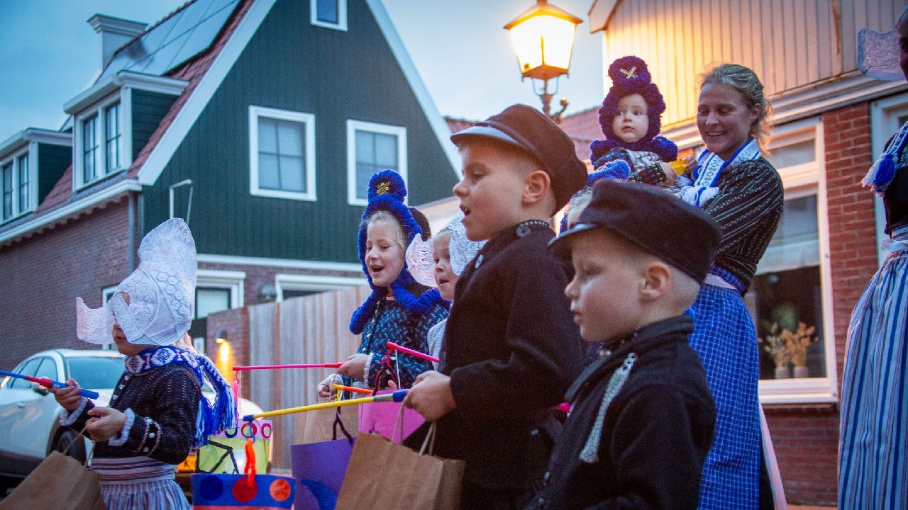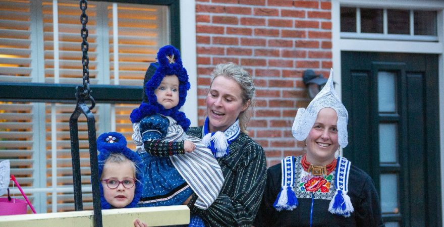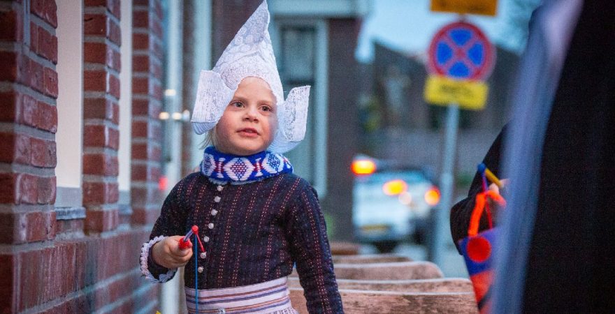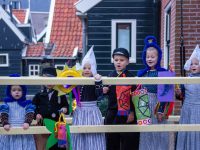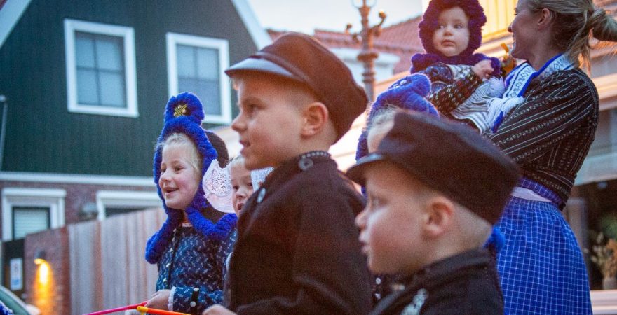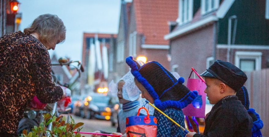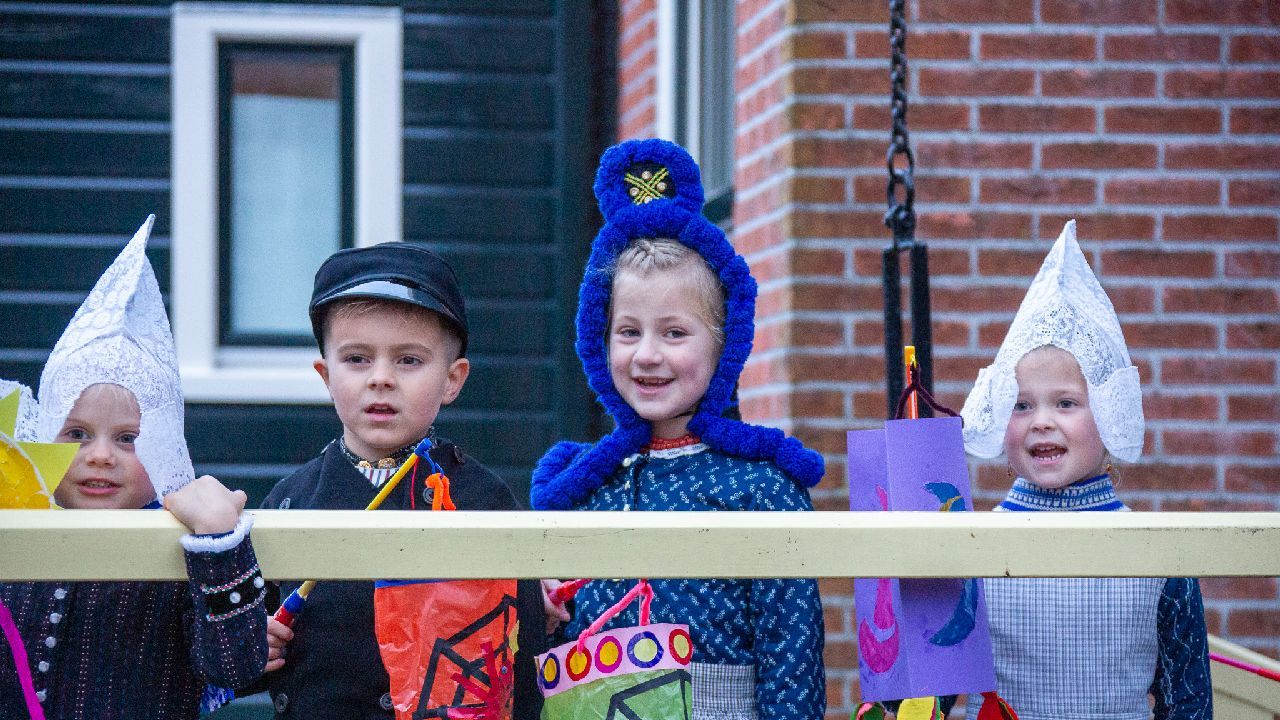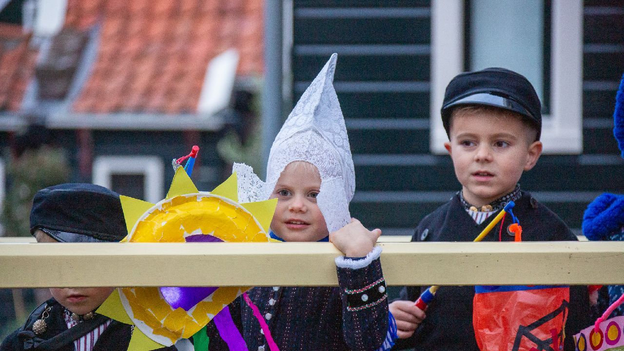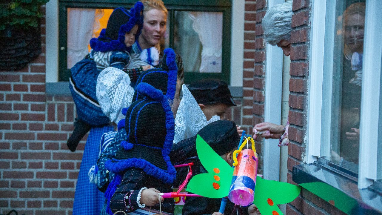 Een uniek moment vond afgelopen dinsdagmiddag plaats in de Oude Kom van Volendam. Op initiatief van Yoni Runderkamp en Simone Kwakman-Brinkkemper werden een aantal jonge kinderen in ‘ut Volledams’ gehesen om vervolgens langs de deuren te gaan voor Sint-Maarten.
