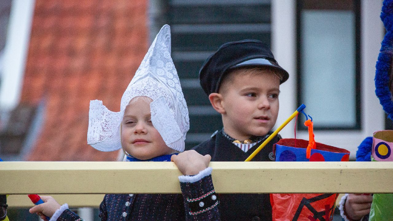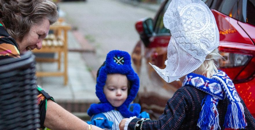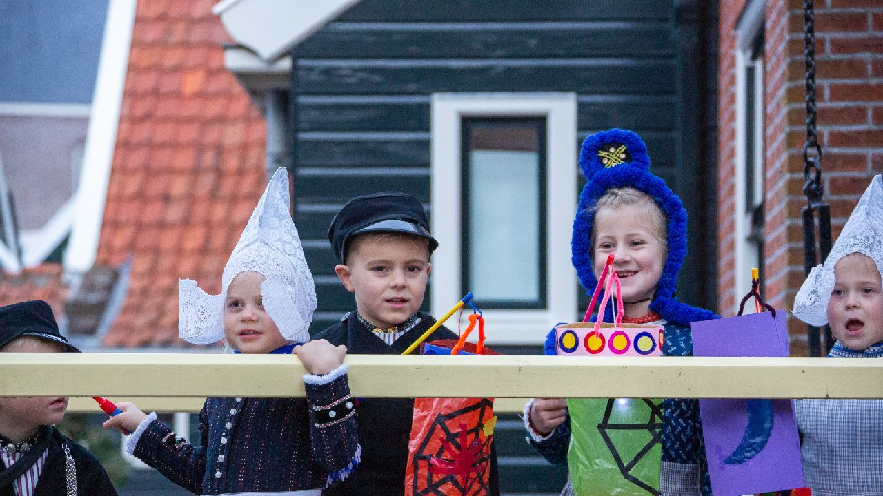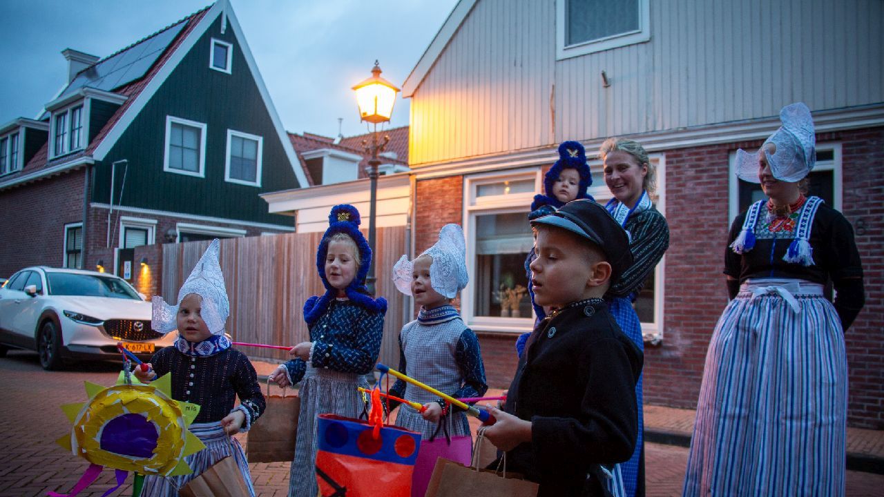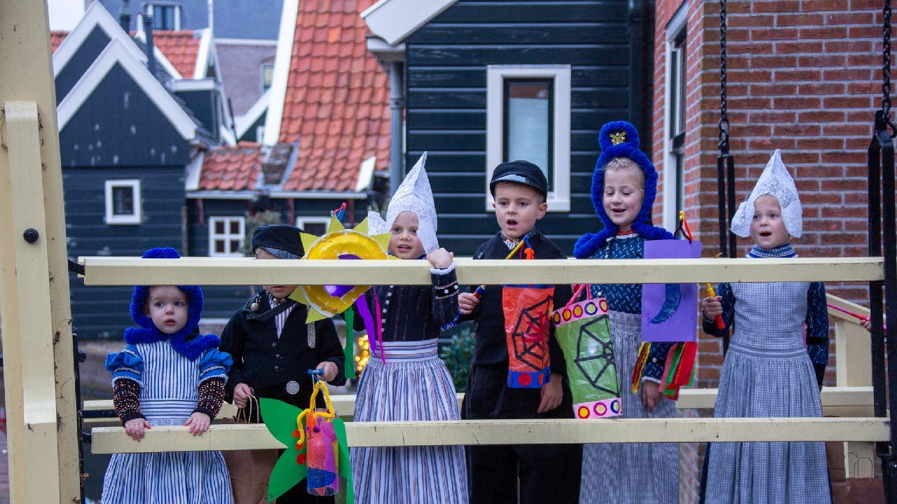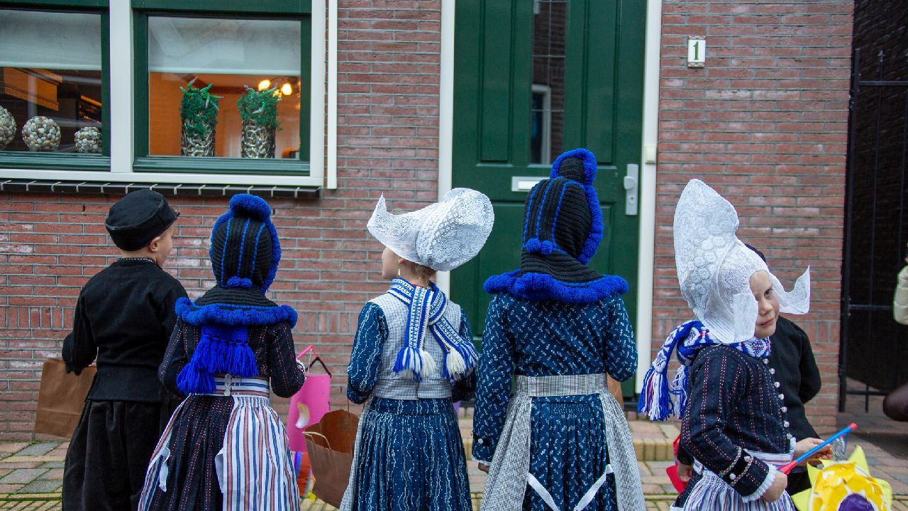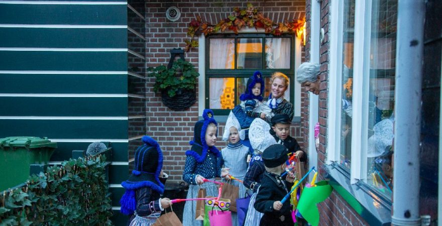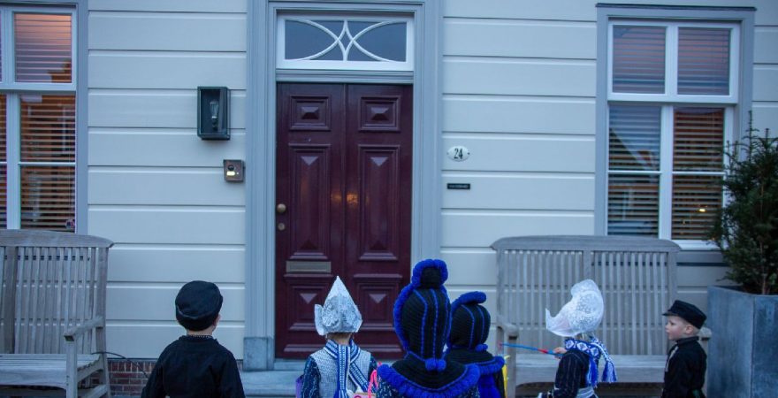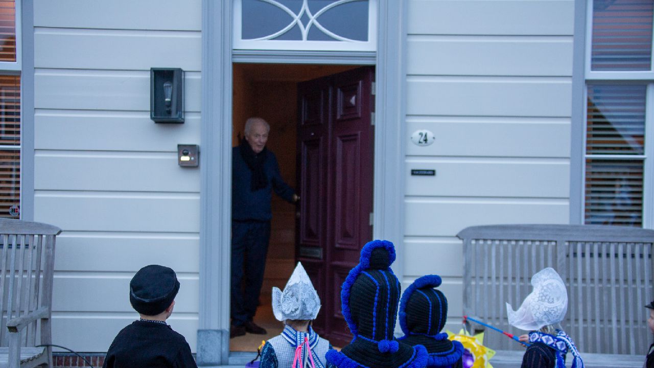 Een uniek moment vond afgelopen dinsdagmiddag plaats in de Oude Kom van Volendam. Op initiatief van Yoni Runderkamp en Simone Kwakman-Brinkkemper werden een aantal jonge kinderen in ‘ut Volledams’ gehesen om vervolgens langs de deuren te gaan voor Sint-Maarten.