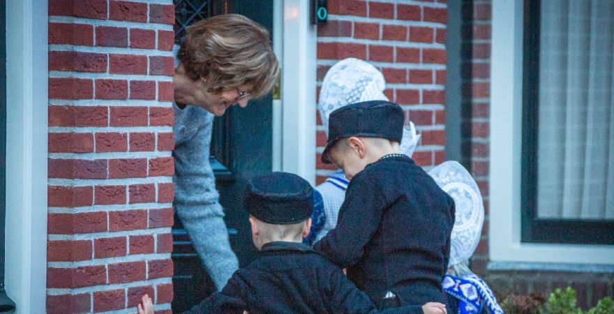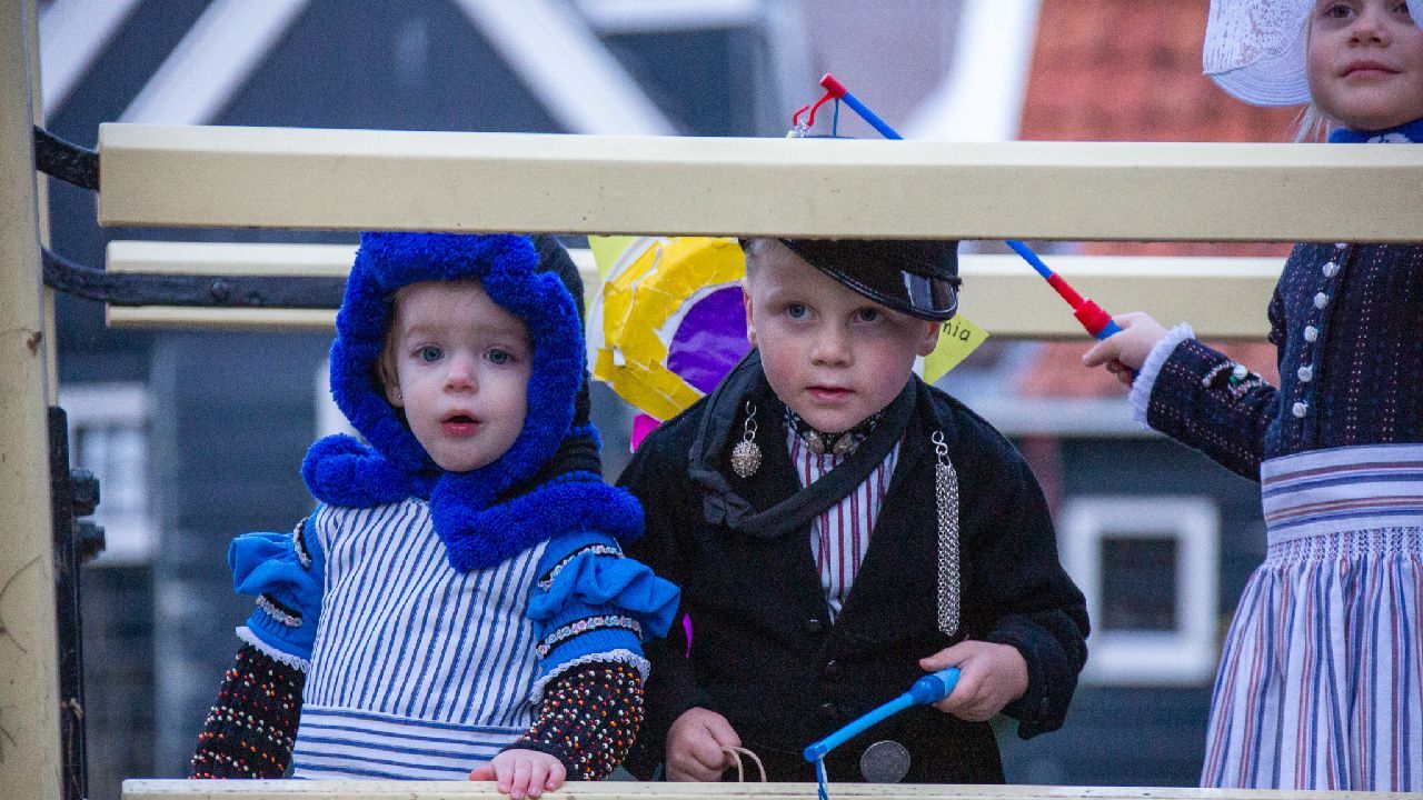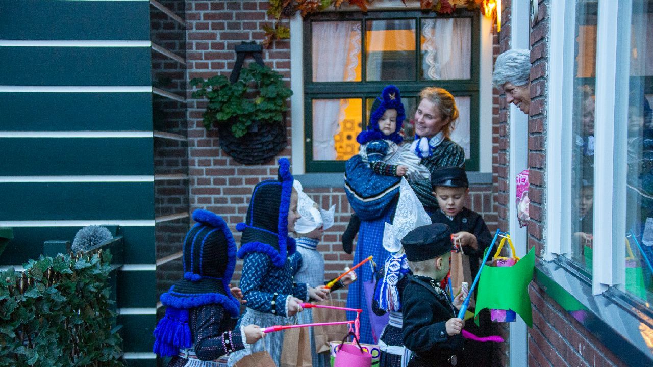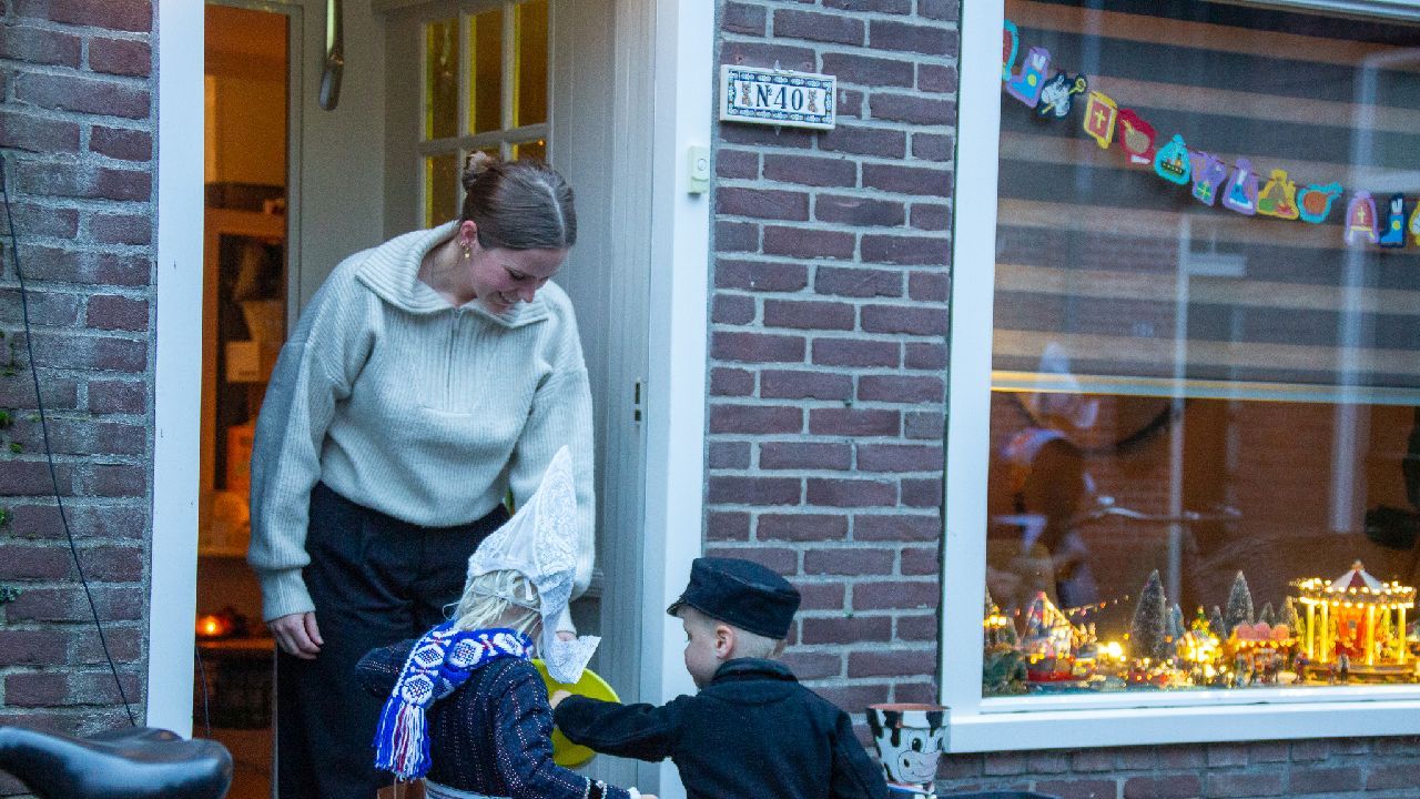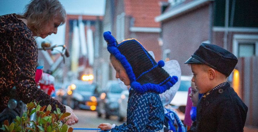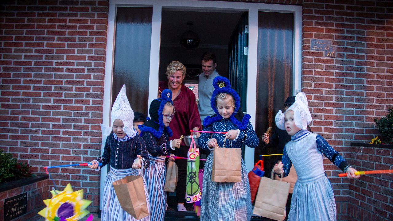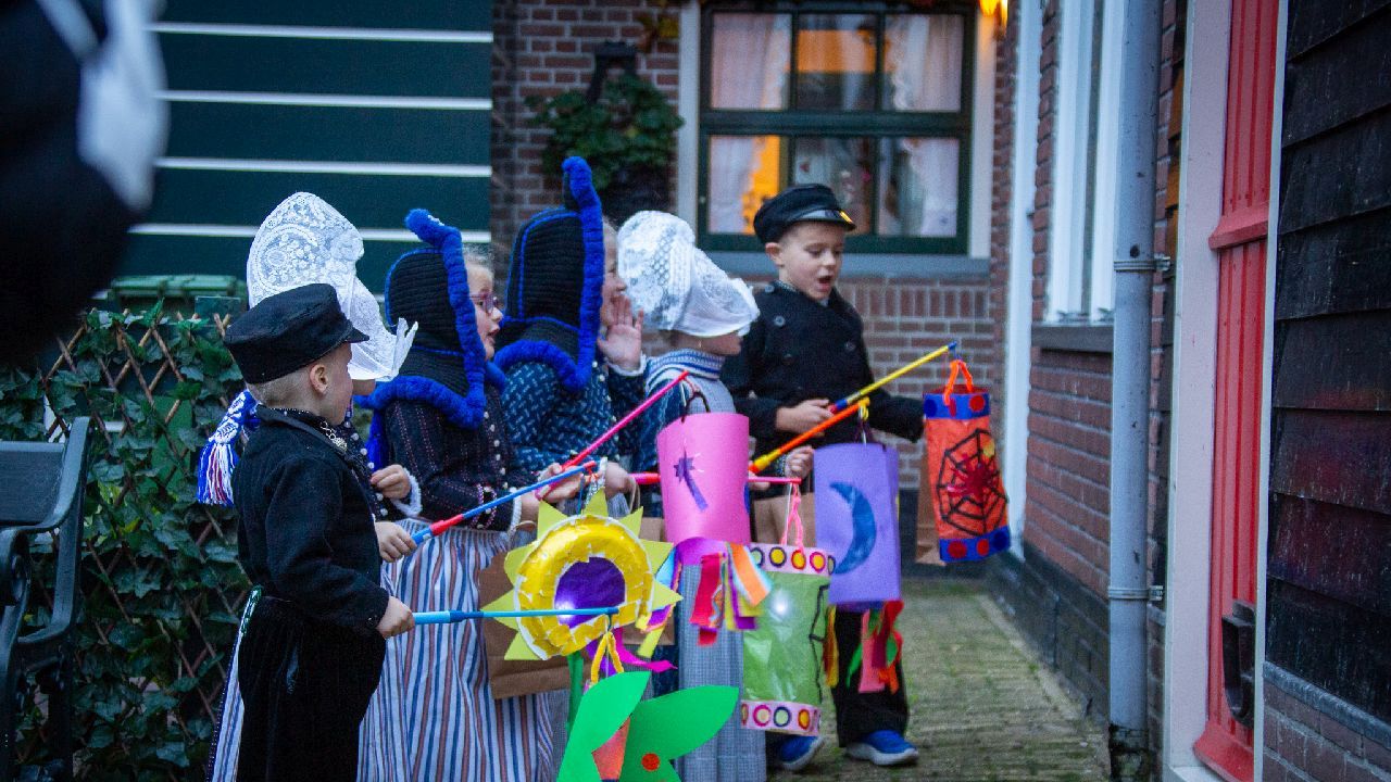 Een uniek moment vond afgelopen dinsdagmiddag plaats in de Oude Kom van Volendam. Op initiatief van Yoni Runderkamp en Simone Kwakman-Brinkkemper werden een aantal jonge kinderen in ‘ut Volledams’ gehesen om vervolgens langs de deuren te gaan voor Sint-Maarten.