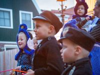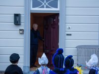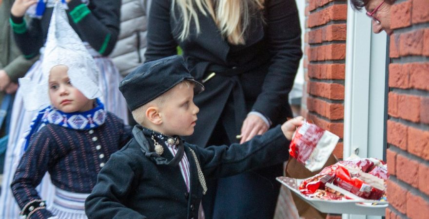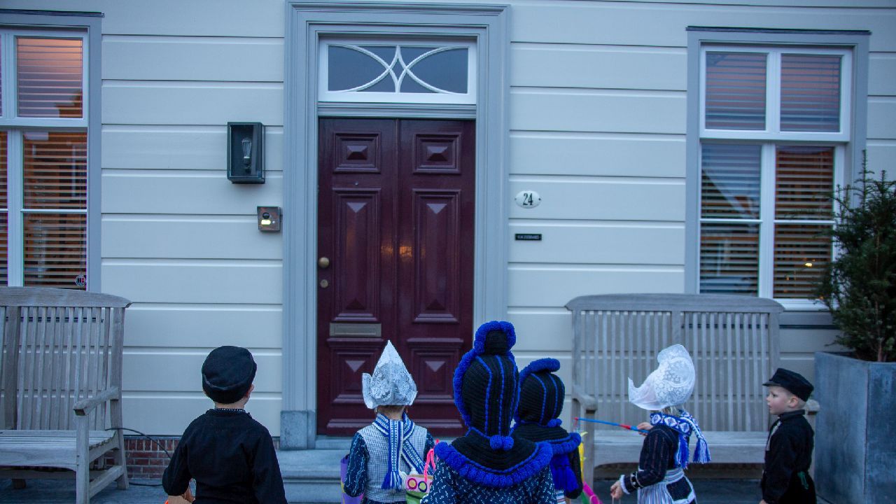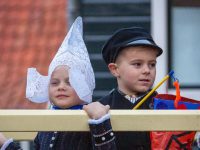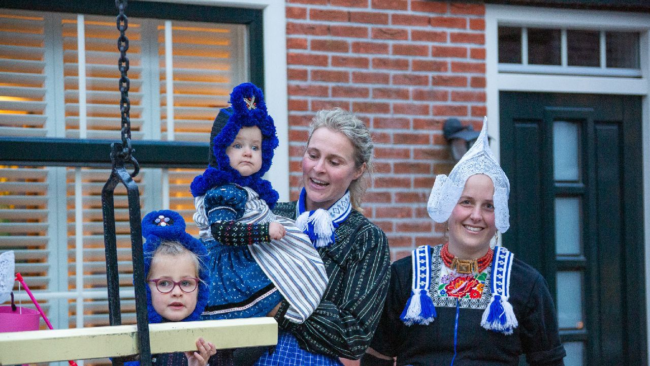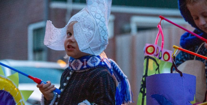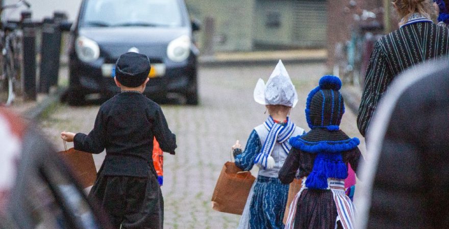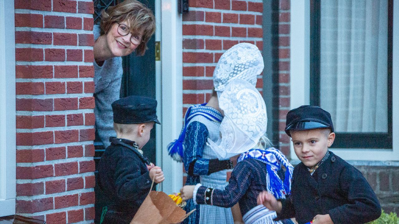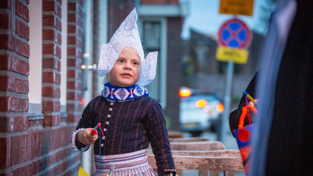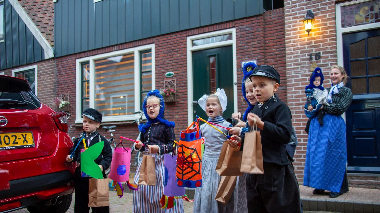 Een uniek moment vond afgelopen dinsdagmiddag plaats in de Oude Kom van Volendam. Op initiatief van Yoni Runderkamp en Simone Kwakman-Brinkkemper werden een aantal jonge kinderen in ‘ut Volledams’ gehesen om vervolgens langs de deuren te gaan voor Sint-Maarten.