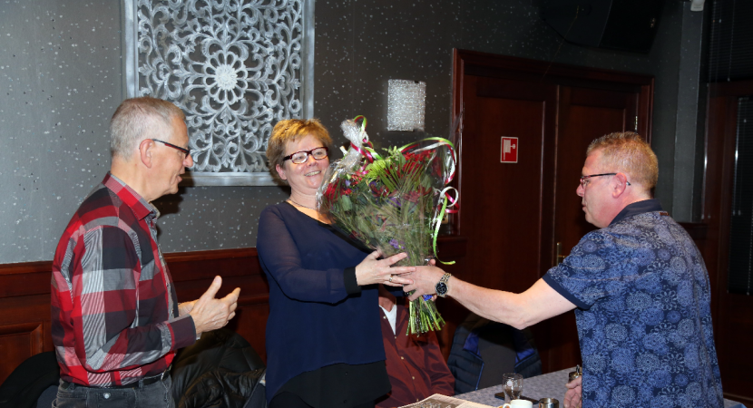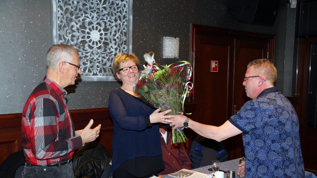 Zij kregen hun felbegeerde EHBO-diploma uitgereikt. Tevens werd Ineke Zwarthoed-Schokker in de bloemetjes gezet. Na 35 jaar geeft zij het secretariaatstokje over aan Jeannette Kes-Veerman.