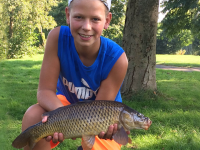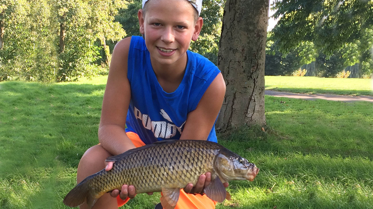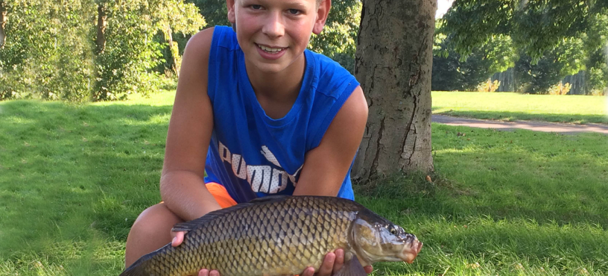 Op de foto toont Leon Breve trots zijn gevangen Karper. Hoeveel vissen de jongens uiteindelijk hebben gevangen is niet bekend.