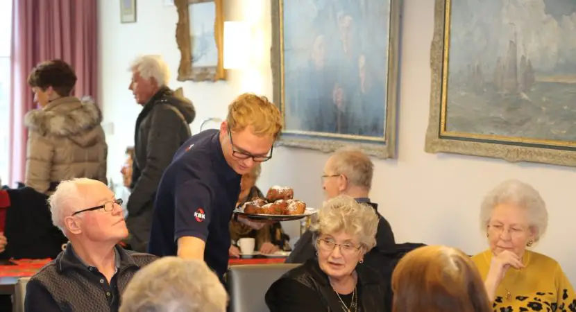 ’s Morgens bij de Prinsenstichting in Purmerend en ’s middags om 14.30 uur in het restaurant van het Sint Nicolaashof. Hier zaten alle bewoners van het verzorgingshuis en het Kloosterhof gezellig bijeen. Naast de oliebollen werden bekers met warme chocomelk uitgedeeld. Zorgmanager Dick Twisk sprak een dankwoordje uit en namens de directie van KBK Bouwgroep sprak Ron Klouwer de senioren toe.