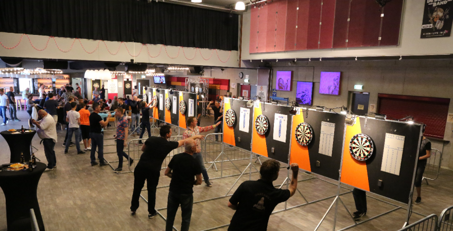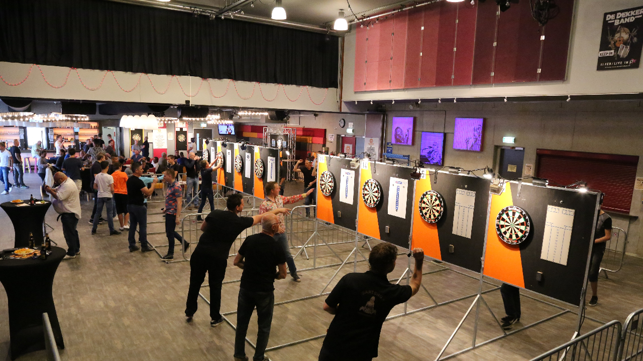 Om 12.15 uur ging het toernooi van start en er deden 72 darters aan mee. Door Jan Koning werd eerst uitleg gegeven over het toernooi en toen gingen de vele dartspartijen van start. Door de hele zaal stonden de dartsborden opgesteld.