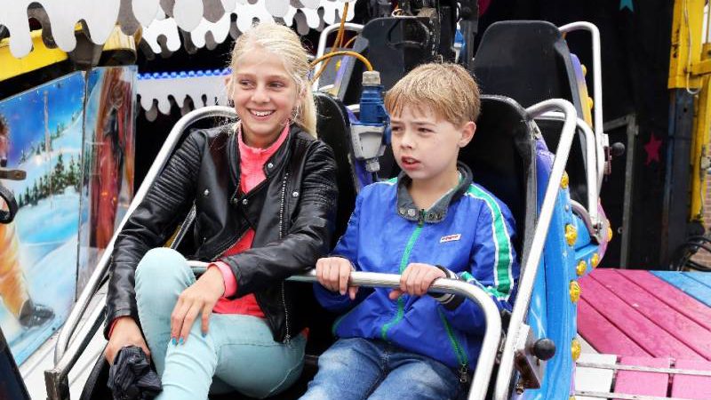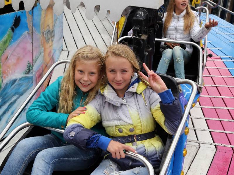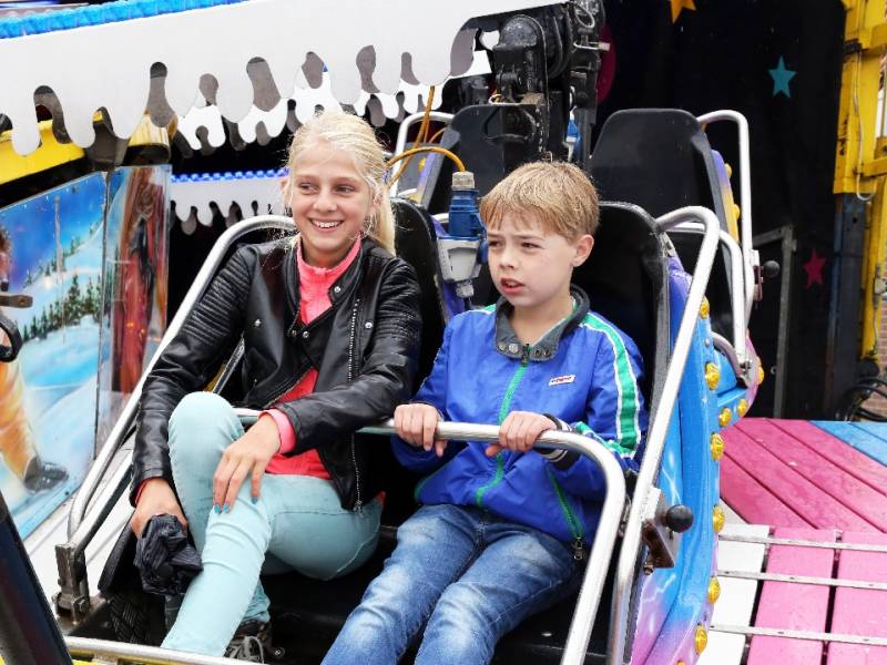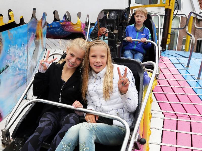 Leerlingen van de Sint Vincentiusschool maakten een rondje over de kermis en zij mochten gratis ritjes in enkele attracties. Lang kon er niet van de prachtige kermis met de spectaculaire attracties genoten worden, want het begon te gieten.
