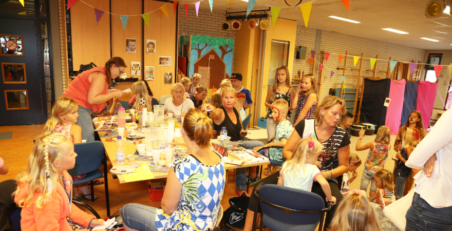 Al vele jaren wordt op vrijdagmorgen van de V’dammer kermis de Kennedyschool en het plein omgebouwd tot een kermisterrein. Een tiental moeders zat in de aula waar een grote schminkstand was ingericht. Hier konden leerlingen hun gezichten laten beschilderen.