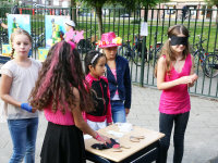 Tussendoor werden de kinderen, waarvan er zeer velen verkleed naar dit kermisfeest waren gekomen, getrakteerd op snoep en drinken. Om de sfeer nog meer te verhogen waren de kermishits te horen.