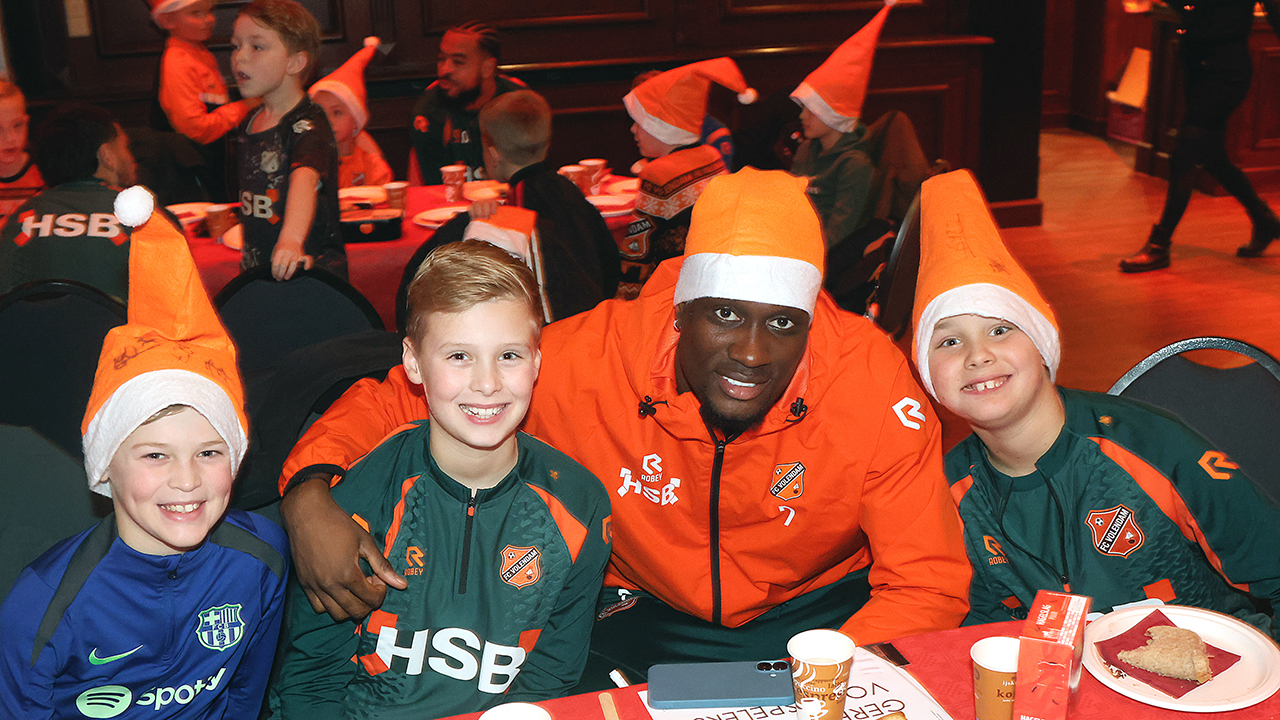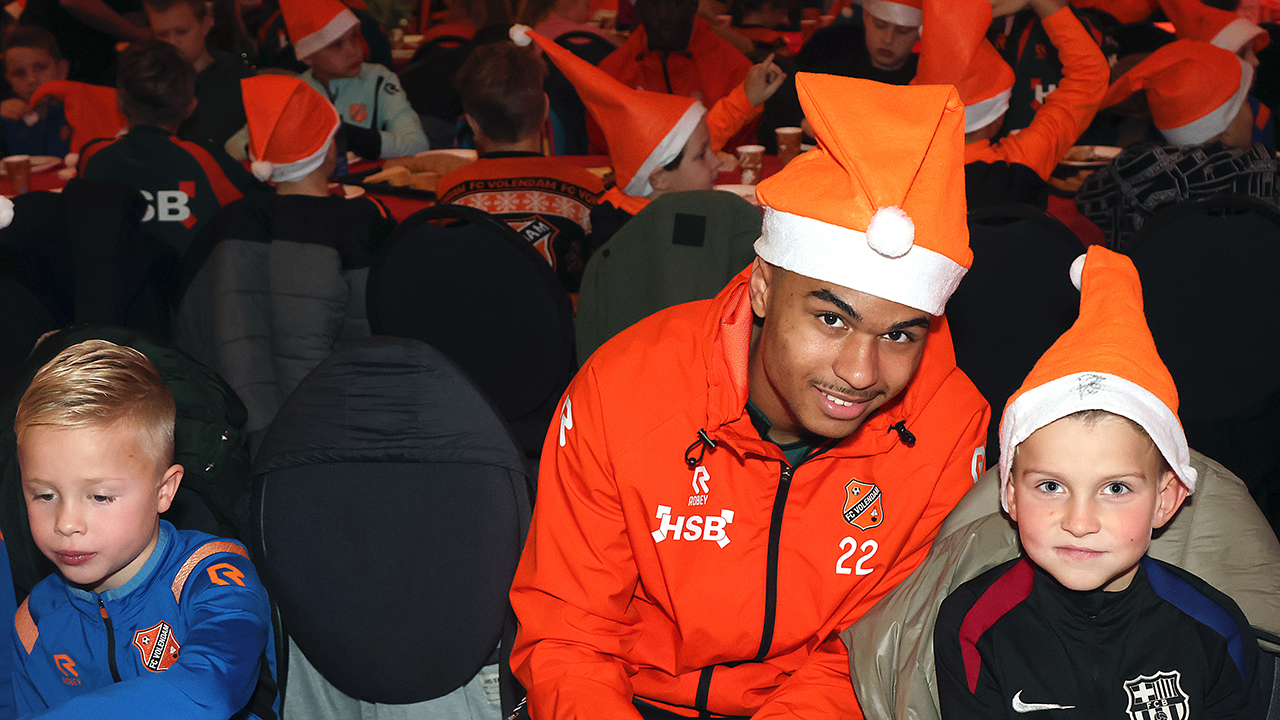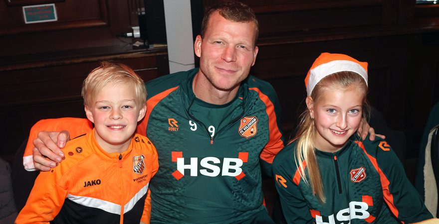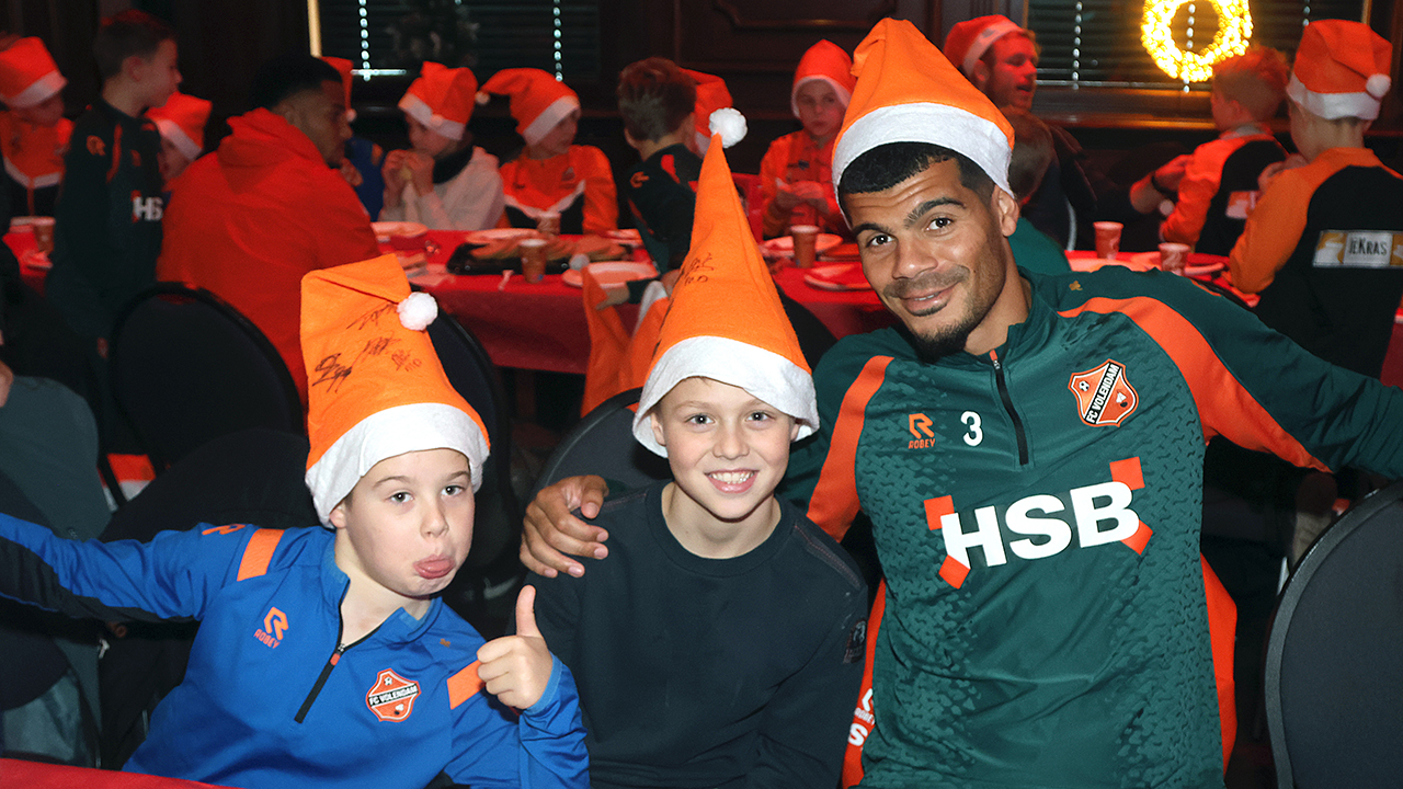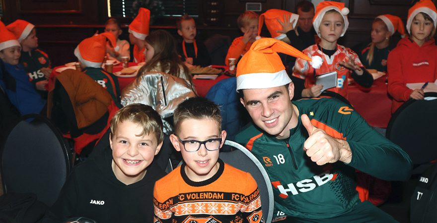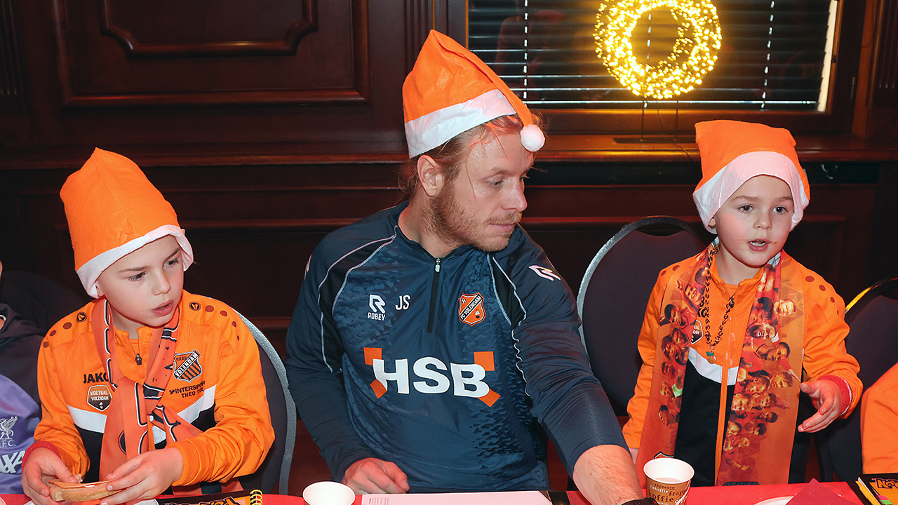 Zo’n tweehonderd Kidsclubleden van FC Volendam vierden woensdagmiddag in De Jozef het naderende kerstfeest, samen met een groot deel van de selectiespelers. Alle kaarten waren snel uitverkocht, en de spelers genoten samen met de kinderen én mascotte Frook The Fox van een uitgebreide kerstbroodtafel.