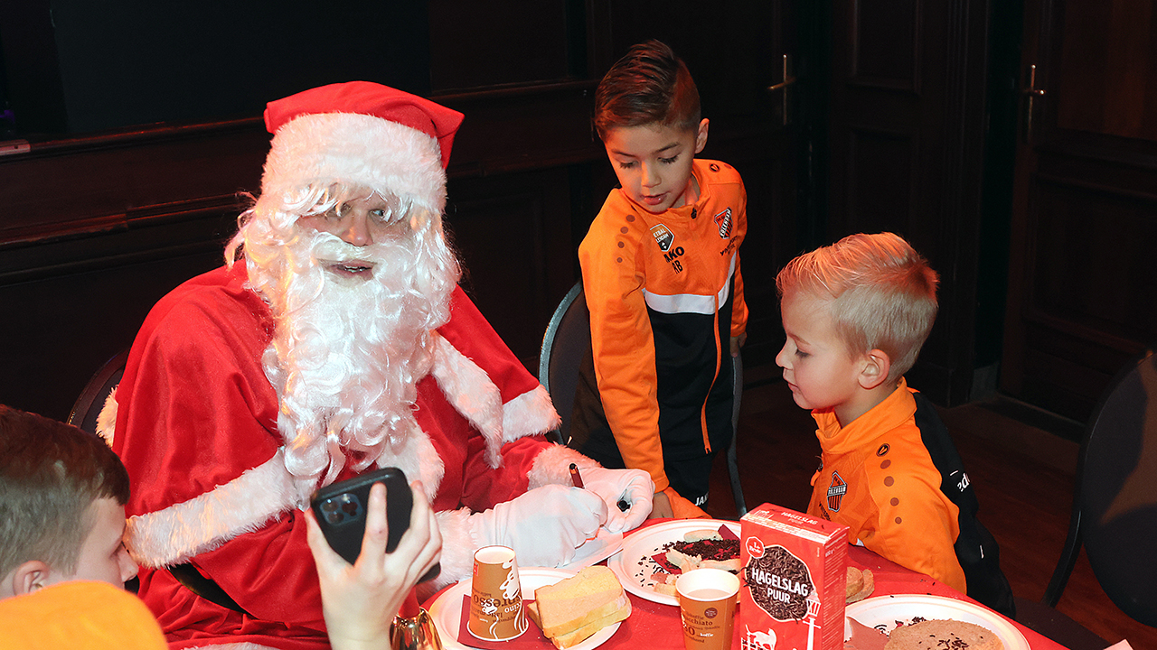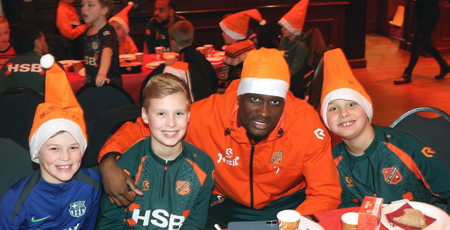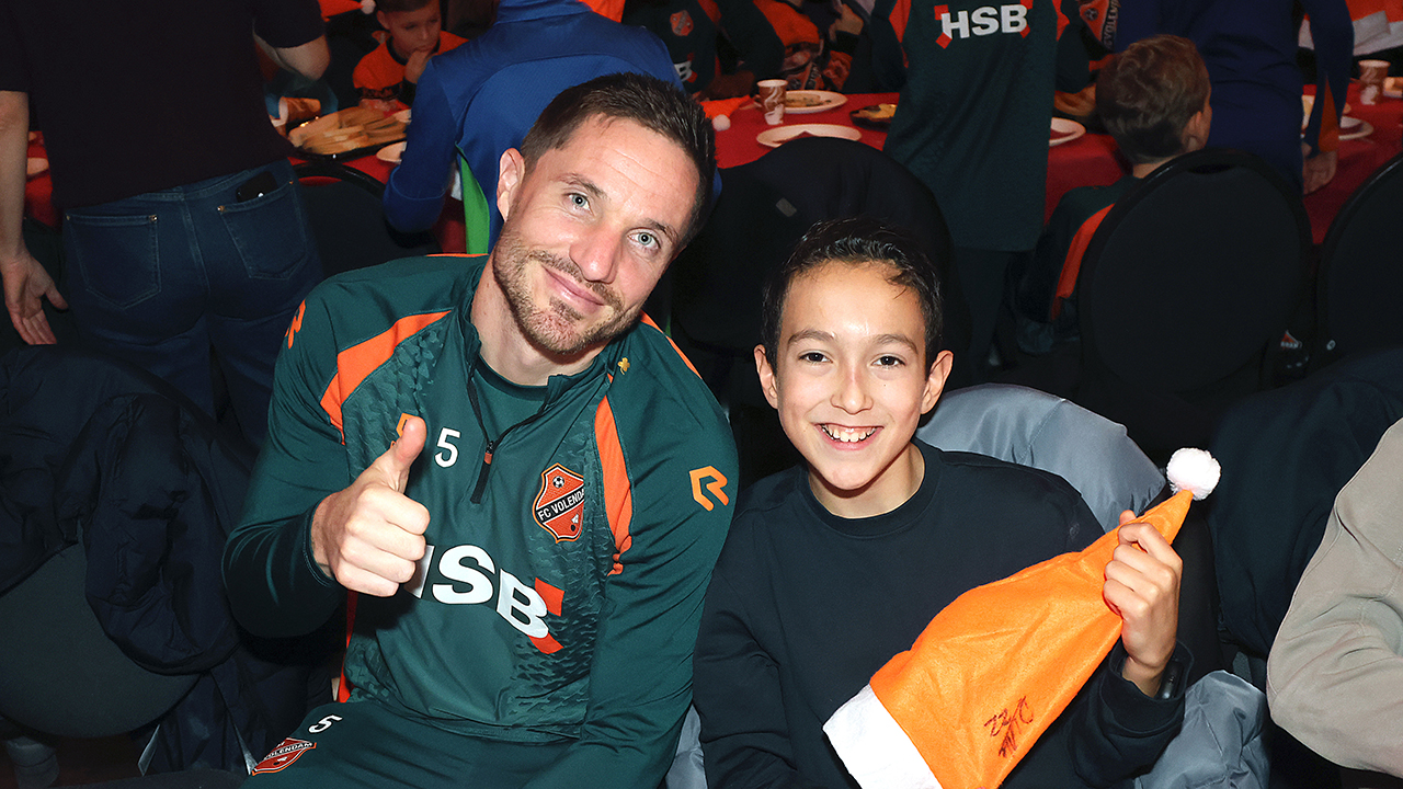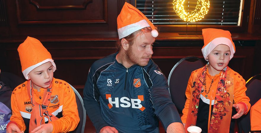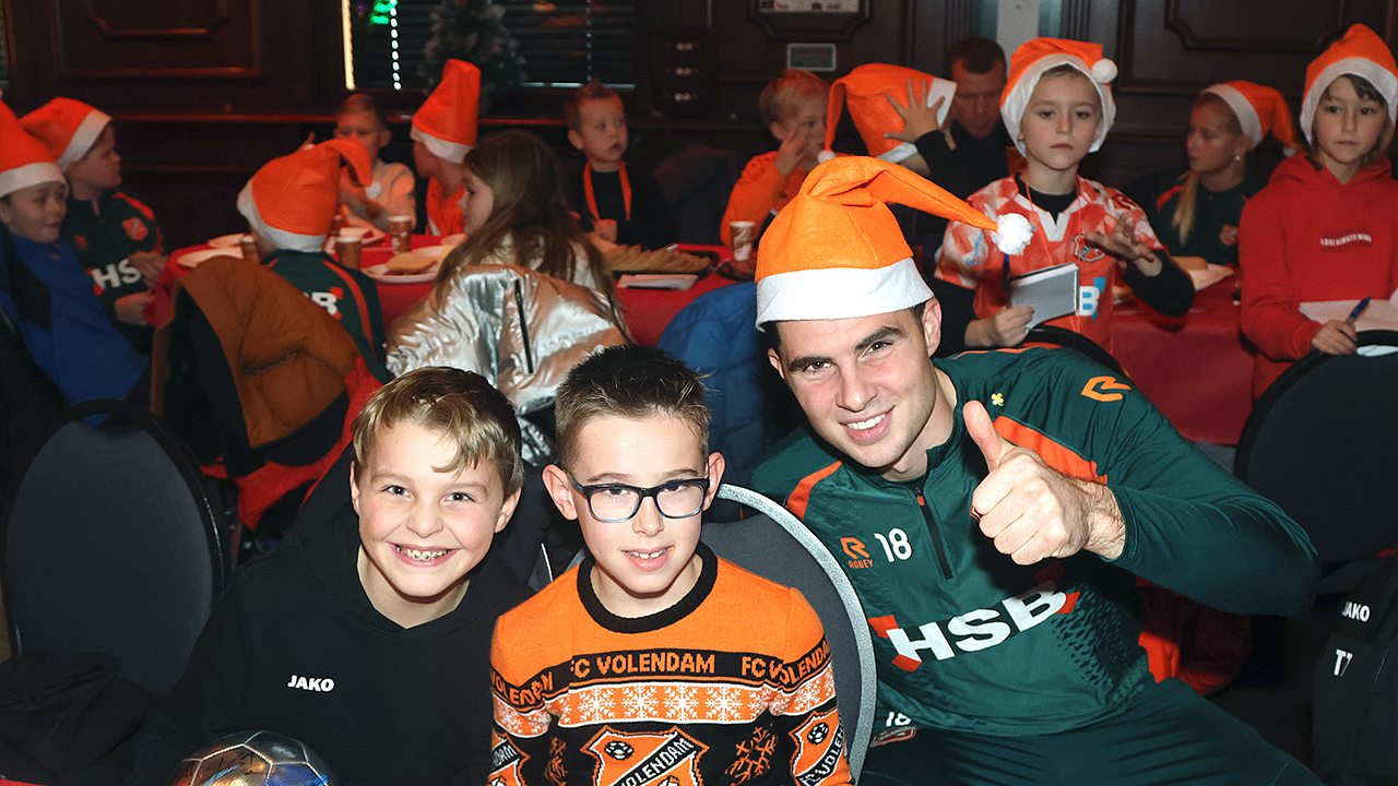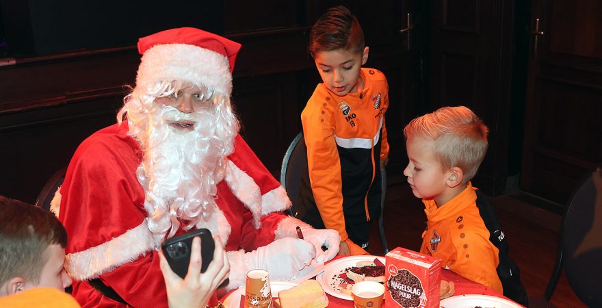Zo’n tweehonderd Kidsclubleden van FC Volendam vierden woensdagmiddag in De Jozef het naderende kerstfeest, samen met een groot deel van de selectiespelers. Alle kaarten waren snel uitverkocht, en de spelers genoten samen met de kinderen én mascotte Frook The Fox van een uitgebreide kerstbroodtafel.