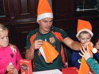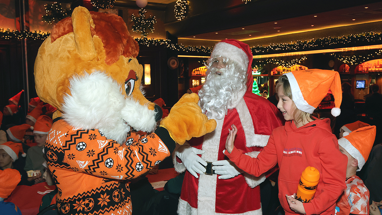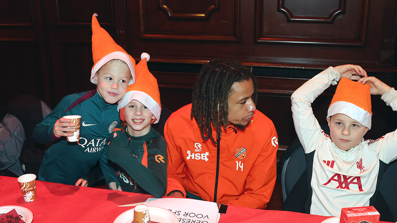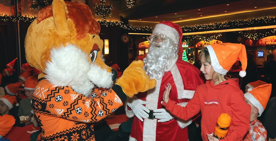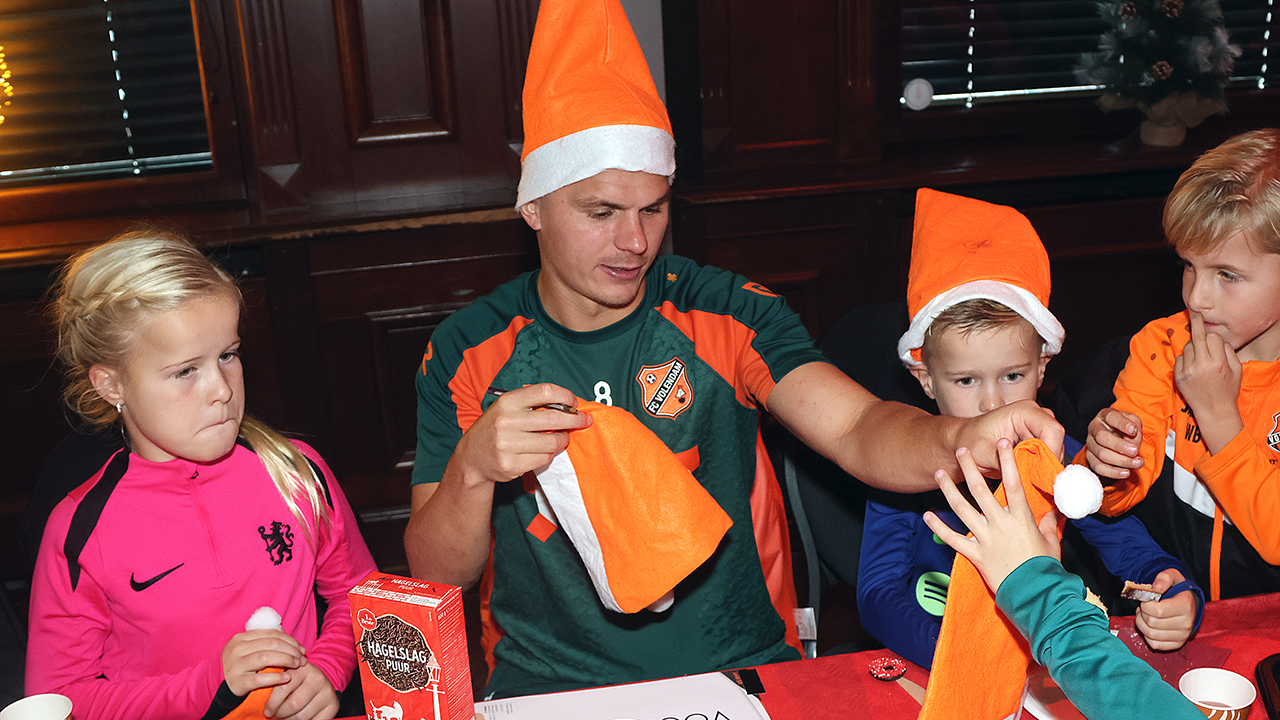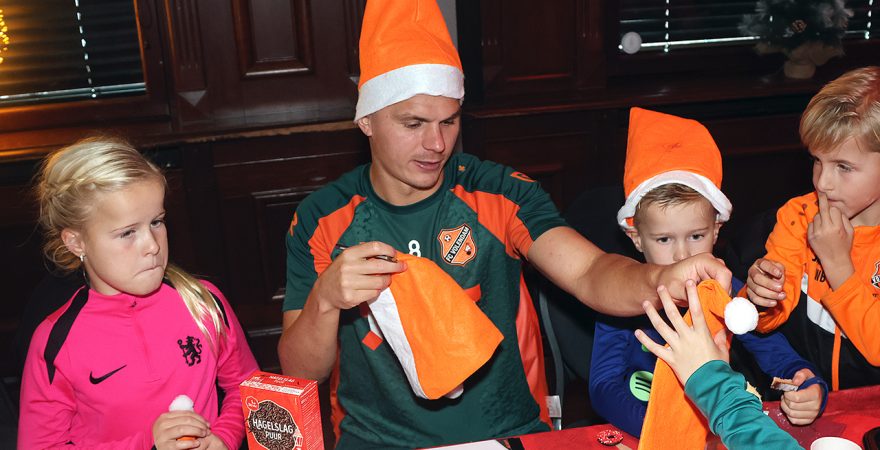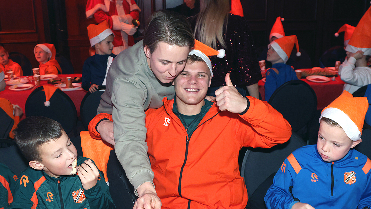 Zo’n tweehonderd Kidsclubleden van FC Volendam vierden woensdagmiddag in De Jozef het naderende kerstfeest, samen met een groot deel van de selectiespelers. Alle kaarten waren snel uitverkocht, en de spelers genoten samen met de kinderen én mascotte Frook The Fox van een uitgebreide kerstbroodtafel.