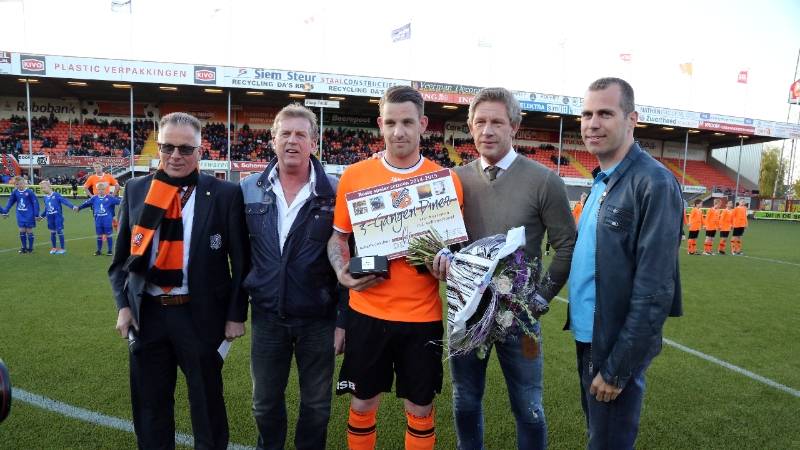 Dat is spits Kevin Brands geworden. De bokaal werd aan hem overhandigd door z’n vader, Marcel Brands, de technisch-directeur van PSV. Verder kreeg Brands een TW Steel-horloge en een dinerbon voor 6 personen aangeboden van Café De Dijk.
