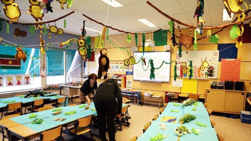 In de klassen kon men versieringen zien van cowboys, indianen, Suriname, Nederlandse Antillen, Brazilië, New York, Mexico, het Wilde Westen, Hollywood, Argentinië en sporten uit de V.S.