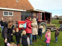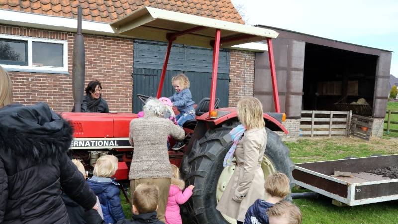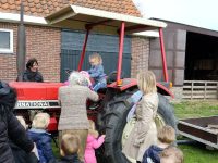 Ook mochten de kinderen op de tractor zitten. Als slot van het lammetjesbezoek was er ranja met koek voor de kleuters.