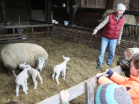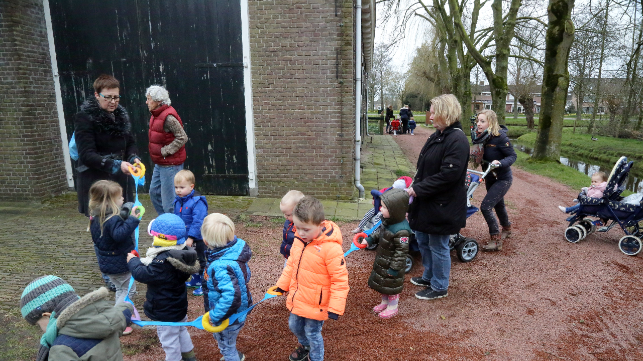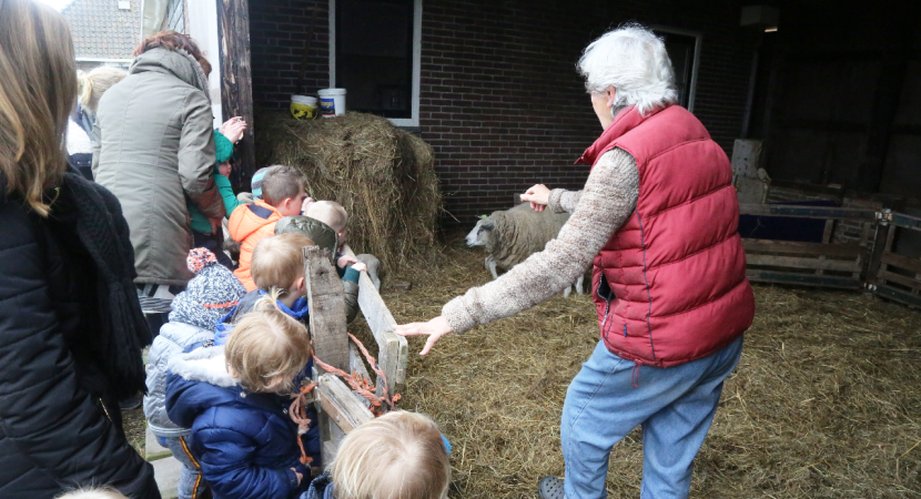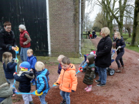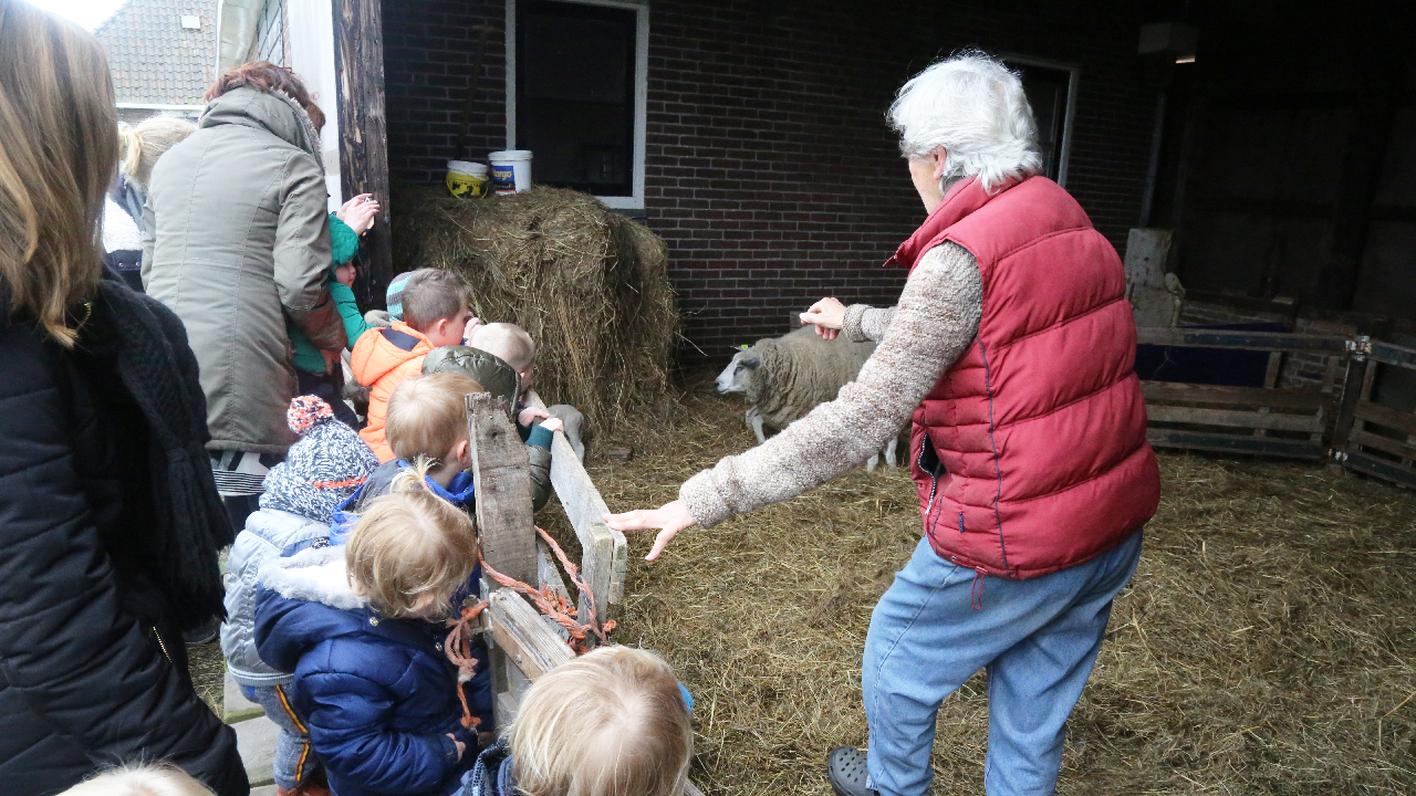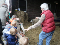 Ook ging de groep kleuters bij de kippen langs. Bij de familie Beets zijn 14 schapen drachtig. Maandag waren er al 7 bevallen en op het weiland en in de stal liepen reeds 11 lammetjes al dartelend en huppelend rond. Het zorgt voor een mooi lenteplaatje.