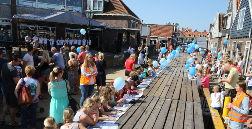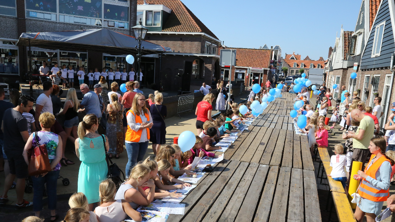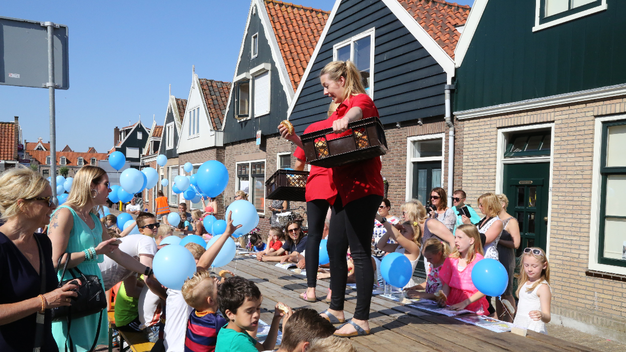 Zondagmiddag was er “Een Dijk van een Tafel” in de Conijnstraat, maar ‘s morgens was er eerst een “warming up” met een Kindertafel. Zo’n 80 jongens en meisjes zaten aan de tafel voor de Jozefschool, waar ballonnen werden uitgedeeld.